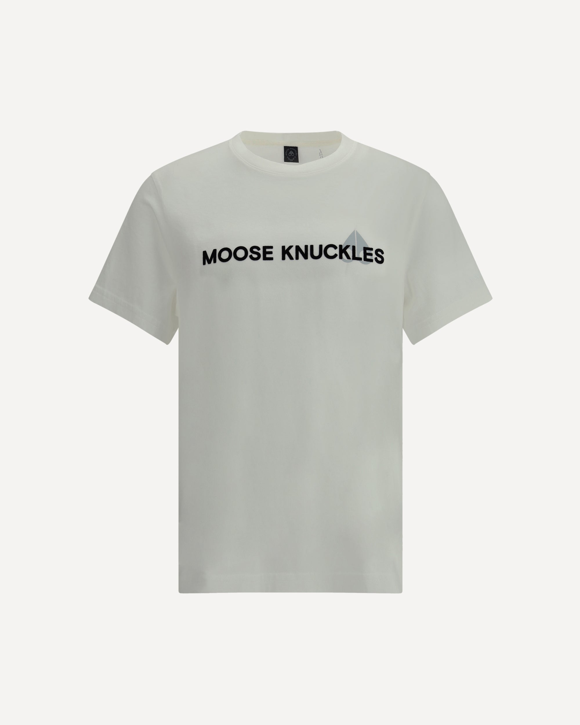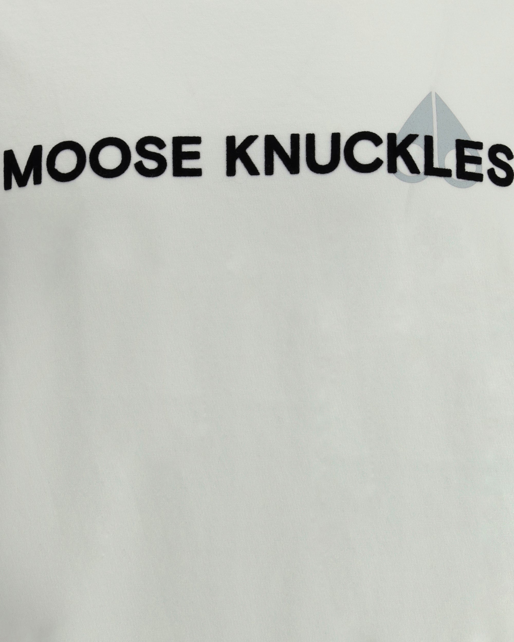 The Cotton Conway T-Shirt by Moose Knuckles is a simple yet stylish garment made from soft cotton for optimal comfort. It features a ribbed crew neck, which enhances its casual design. On the front, there is the iconic contrasting appliqué monogram, adding a distinctive touch, while another monogram appears on the left sleeve for an added detail of recognition. The monochrome pattern makes the T-shirt versatile and easy to match, perfect for creating casual yet sophisticated looks.