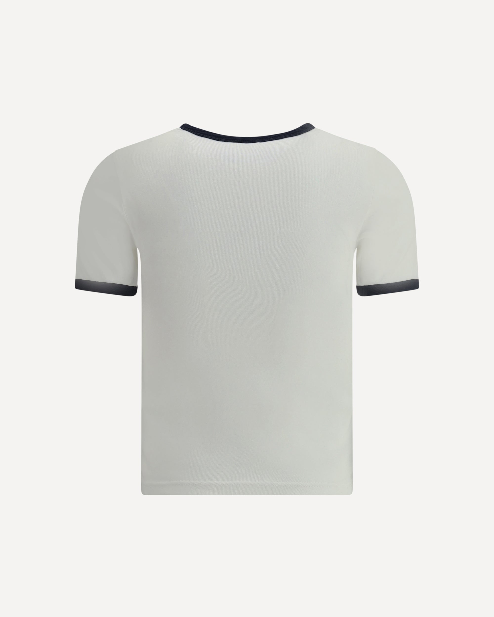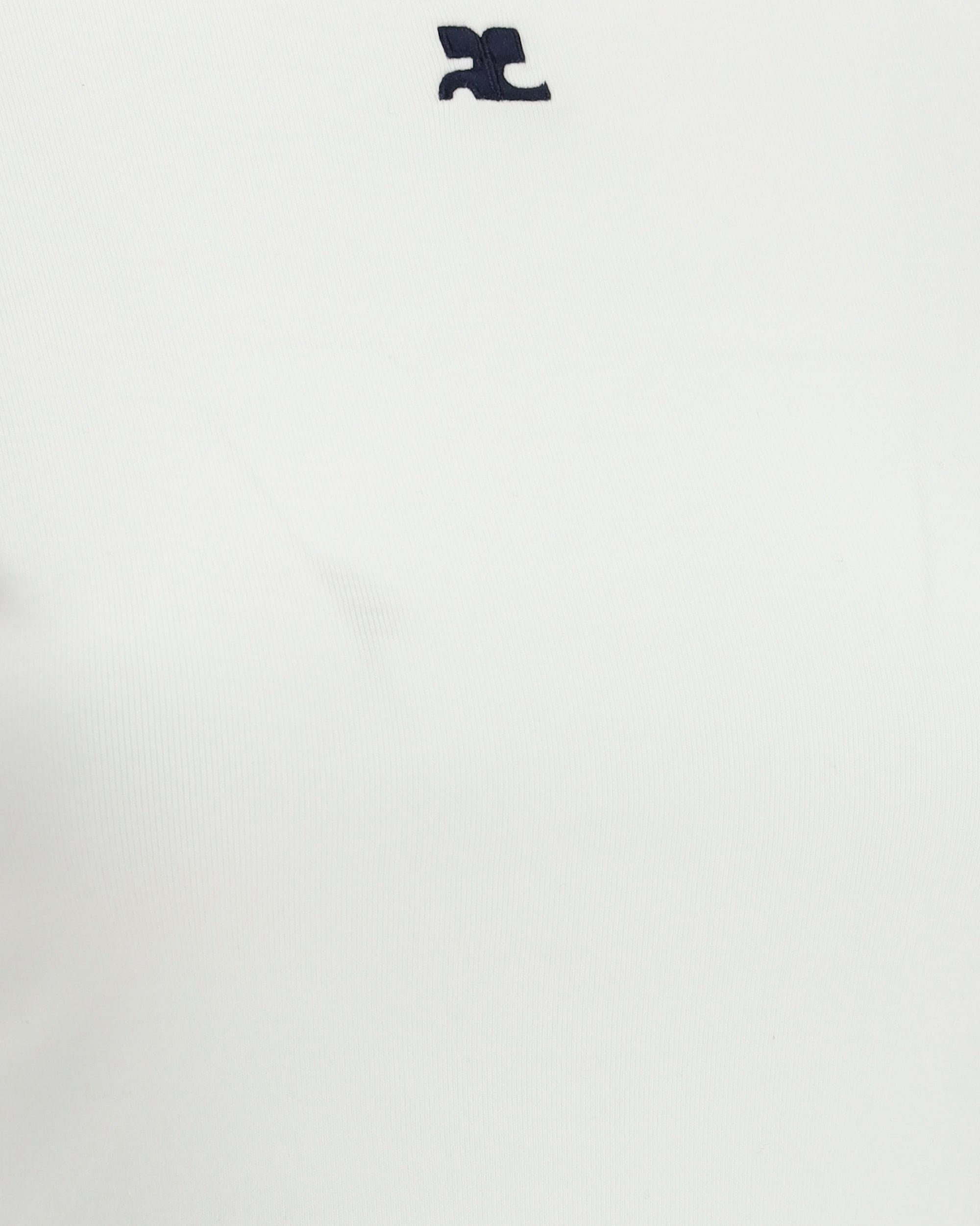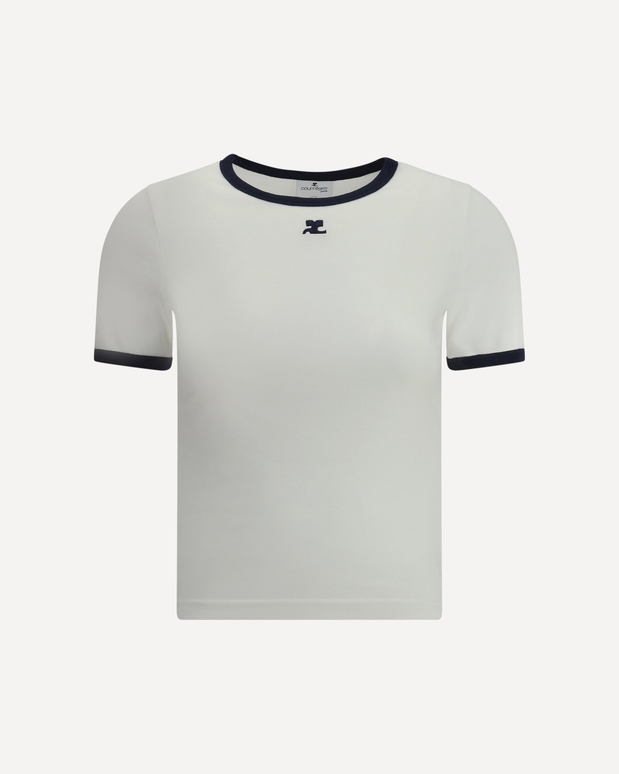 Cotton T-shirt by Courrèges is a casual piece with a refined design. It features a ribbed crew neck for a touch of comfort and elegance. The brand's iconic logo embroidered on the front and the monogram patch applied on the hem add distinctive and recognizable details. Contrasting hems complete the look with a modern and dynamic touch.