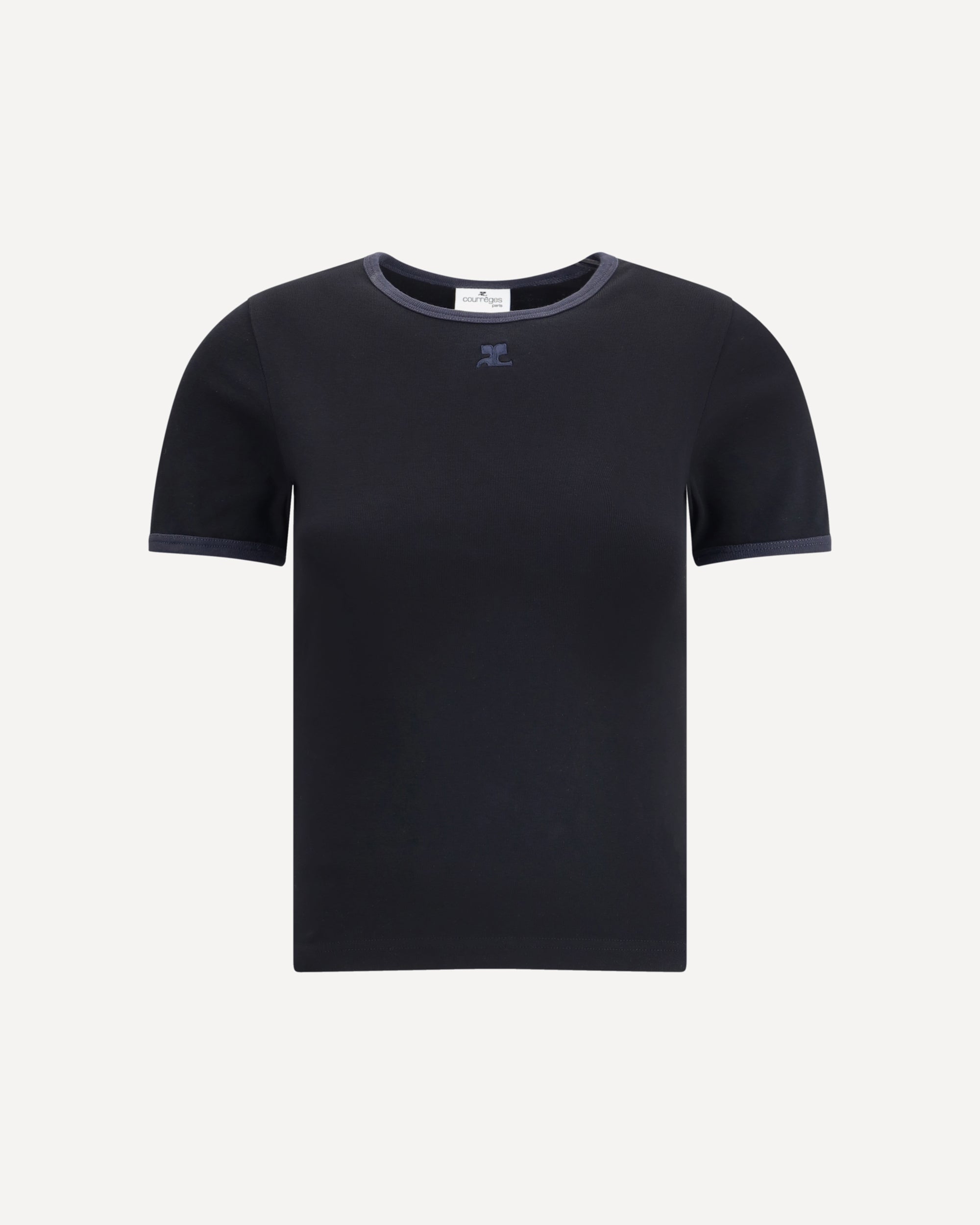 Cotton T-shirt by Courrèges is a casual piece with a refined design. It features a ribbed crew neck for a touch of comfort and elegance. The brand's iconic logo embroidered on the front and the monogram patch applied on the hem add distinctive and recognizable details. Contrasting hems complete the look with a modern and dynamic touch.
