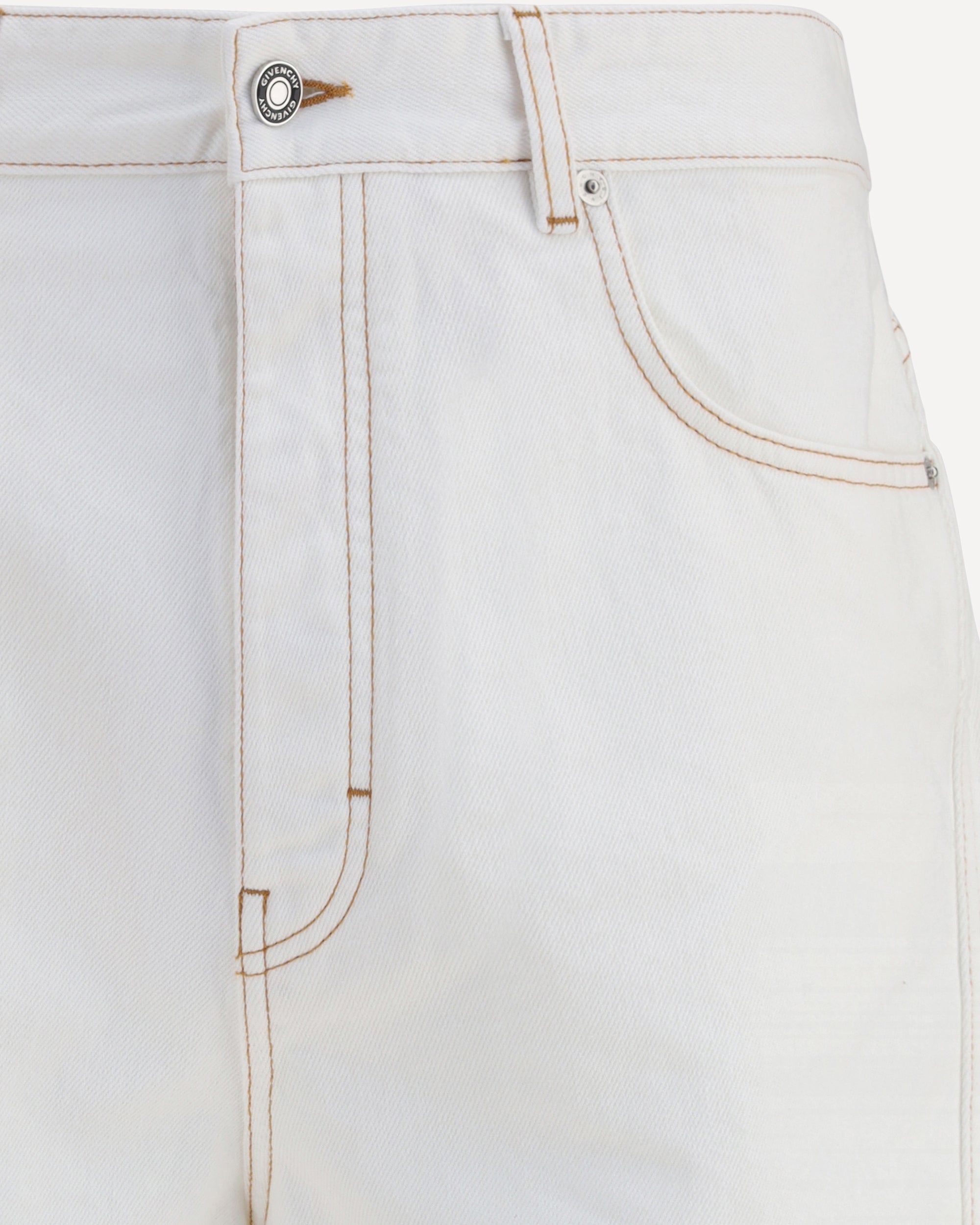 Givenchy's cotton Couture Seam Jeans, a wide-leg five-pocket style with front button closure, belt loops at the waist and logo patch applied to the back. Modern design and couture details for contemporary elegance.