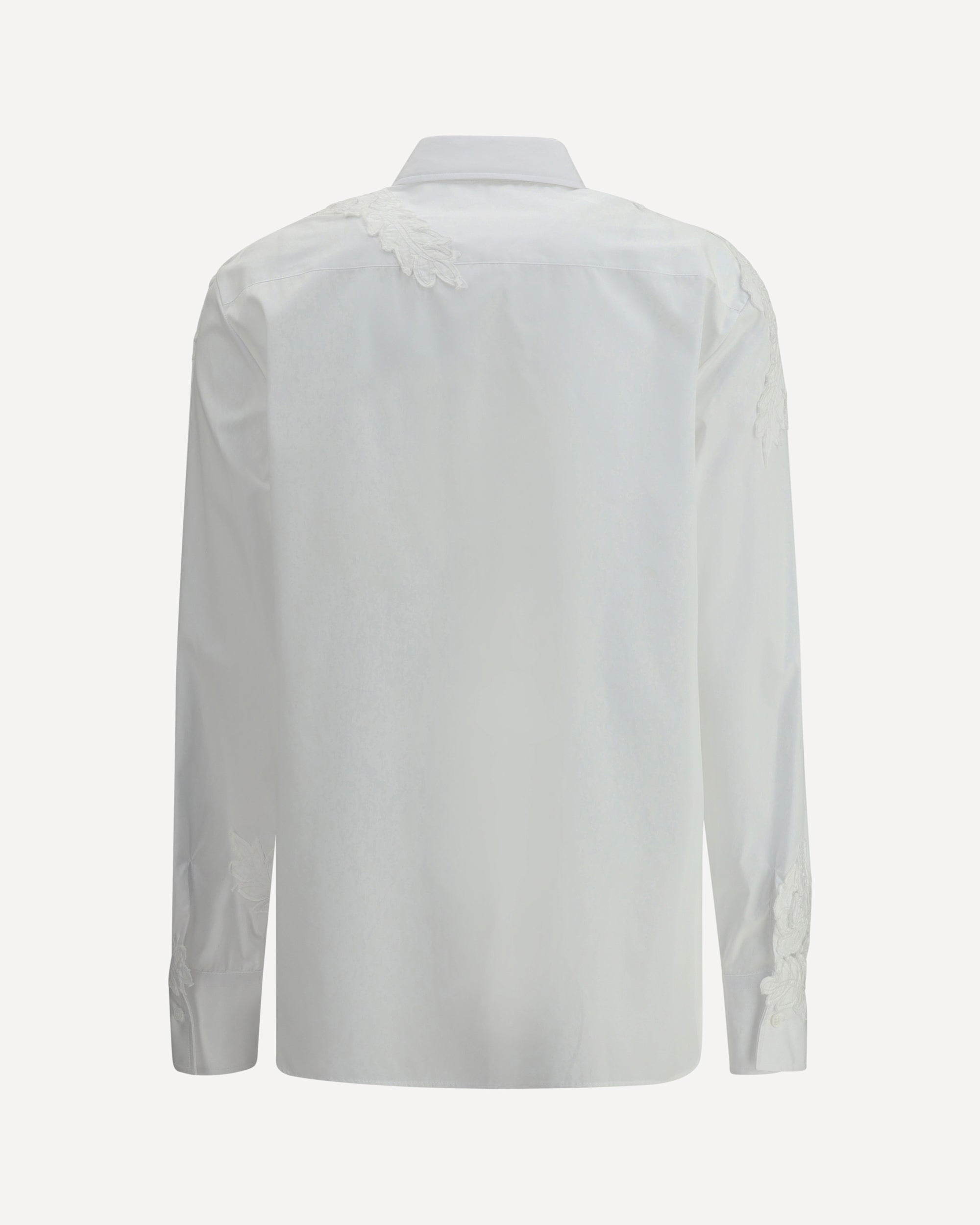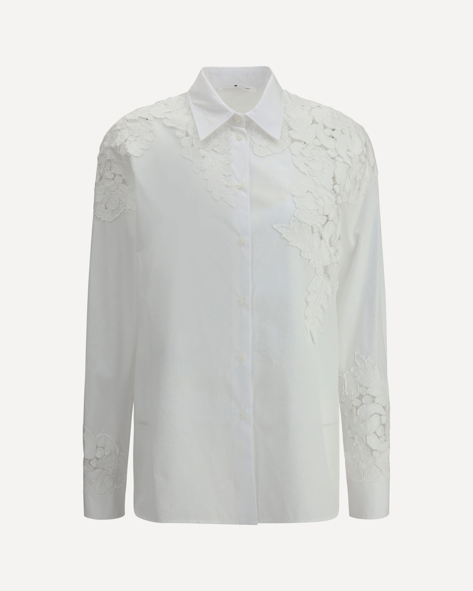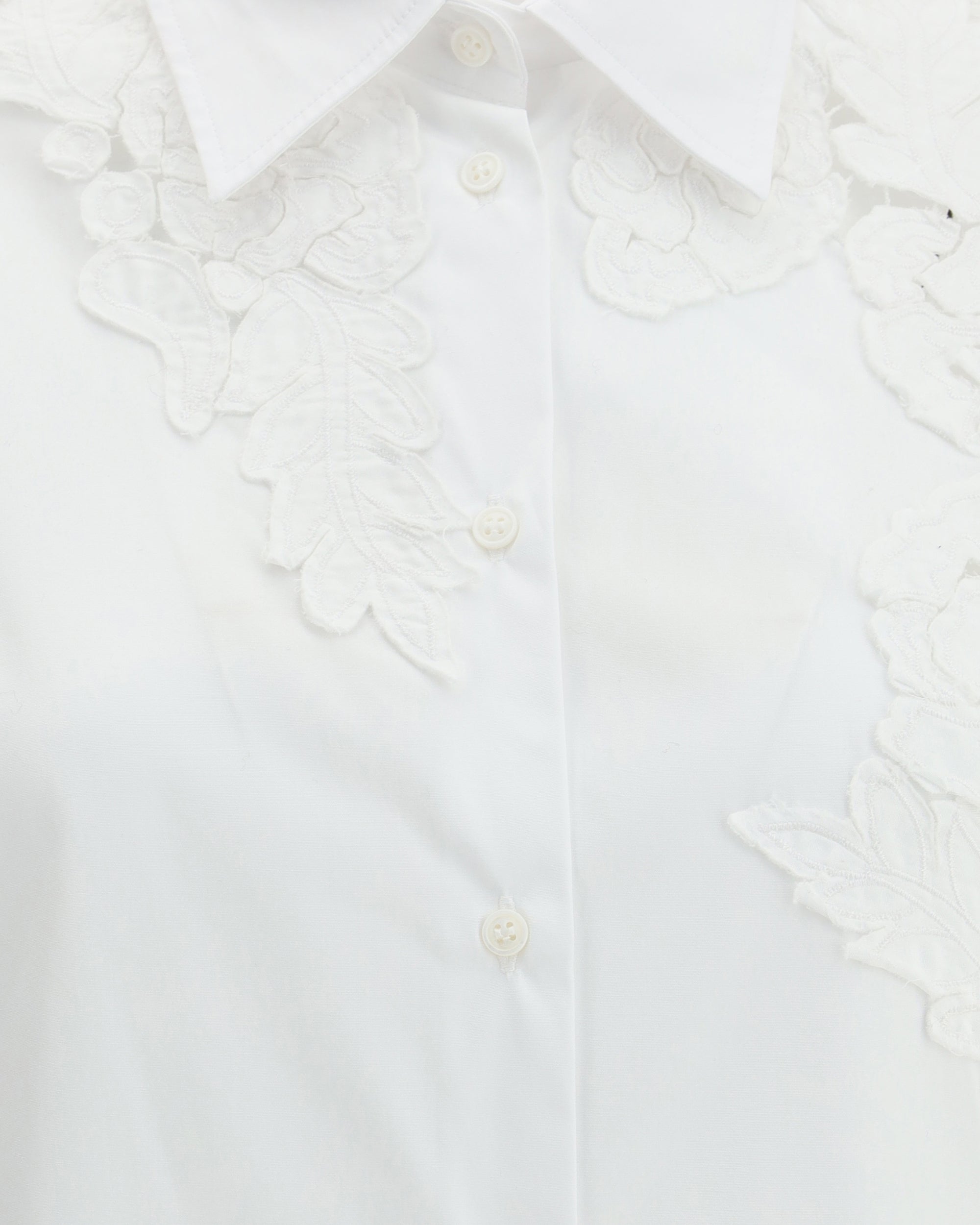 Ermanno Scervino's Embroidered Shirt is an elegant and refined piece featuring a classic collar that lends an understated touch. The front button closure offers a practical fit, while embroidered floral details on the shoulders and front add a romantic and sophisticated accent. These finely executed embroideries enhance the shirt with a touch of artistry and femininity.