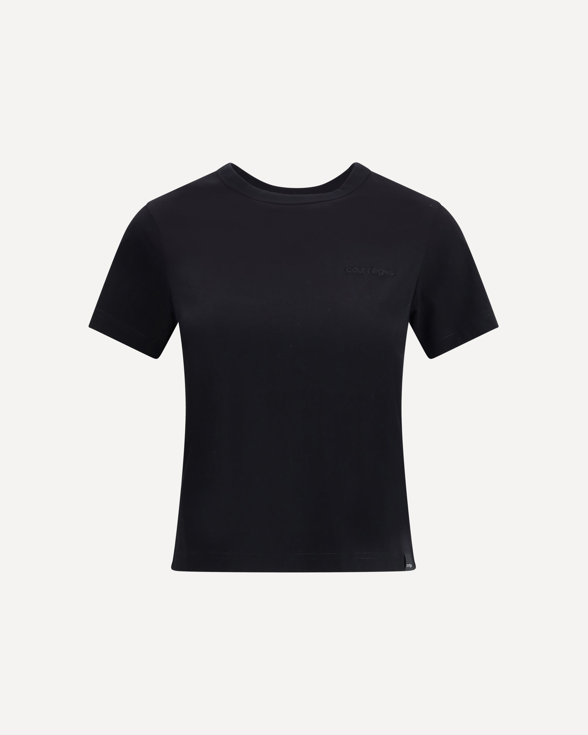 The Courrèges Embroidered logo T-Shirt is an essential garment with a clean, contemporary design. Featuring a ribbed crew neck and made of soft cotton, it features an embroidered logo on the front, a distinctive detail that adds an iconic touch to a simple and versatile model.