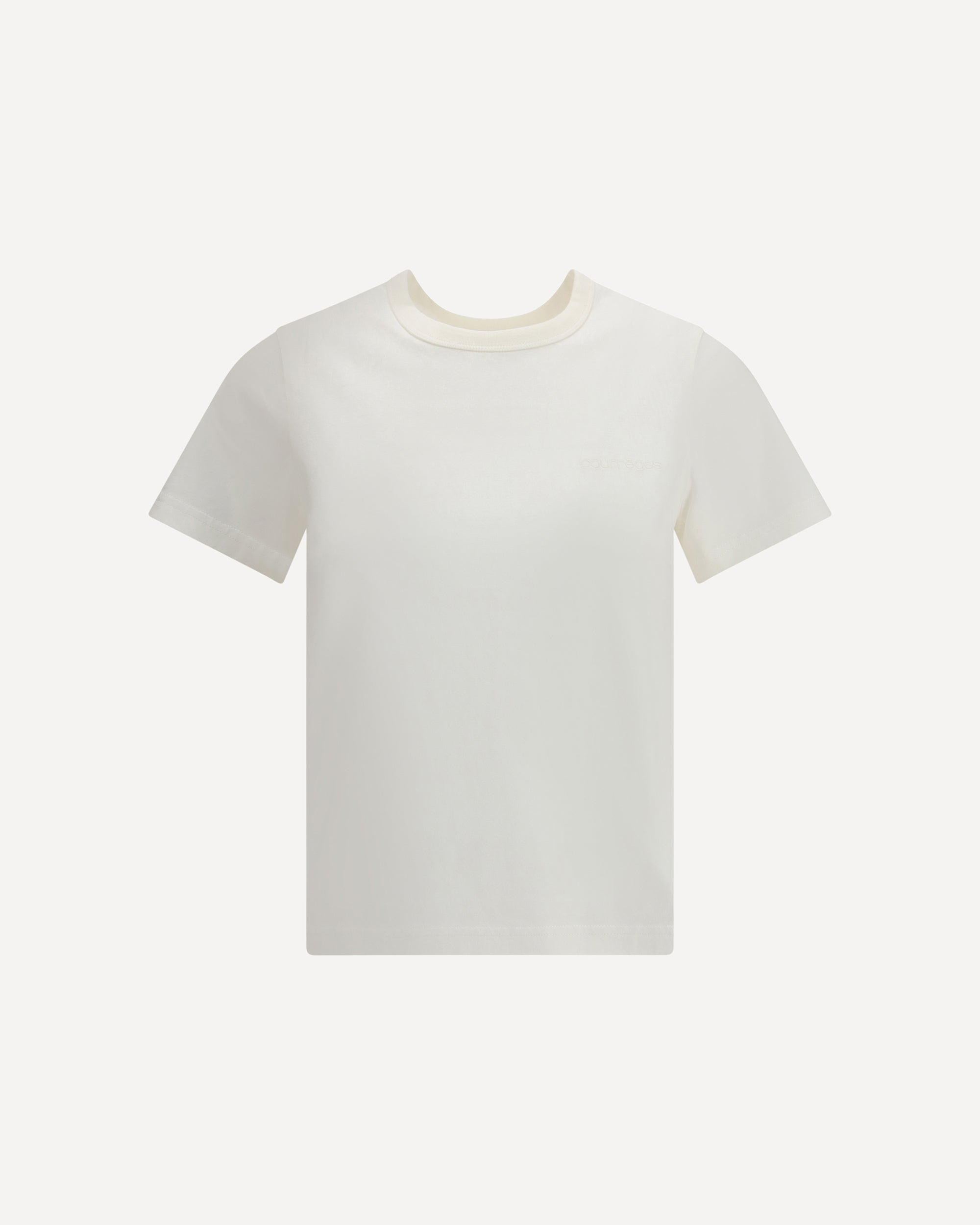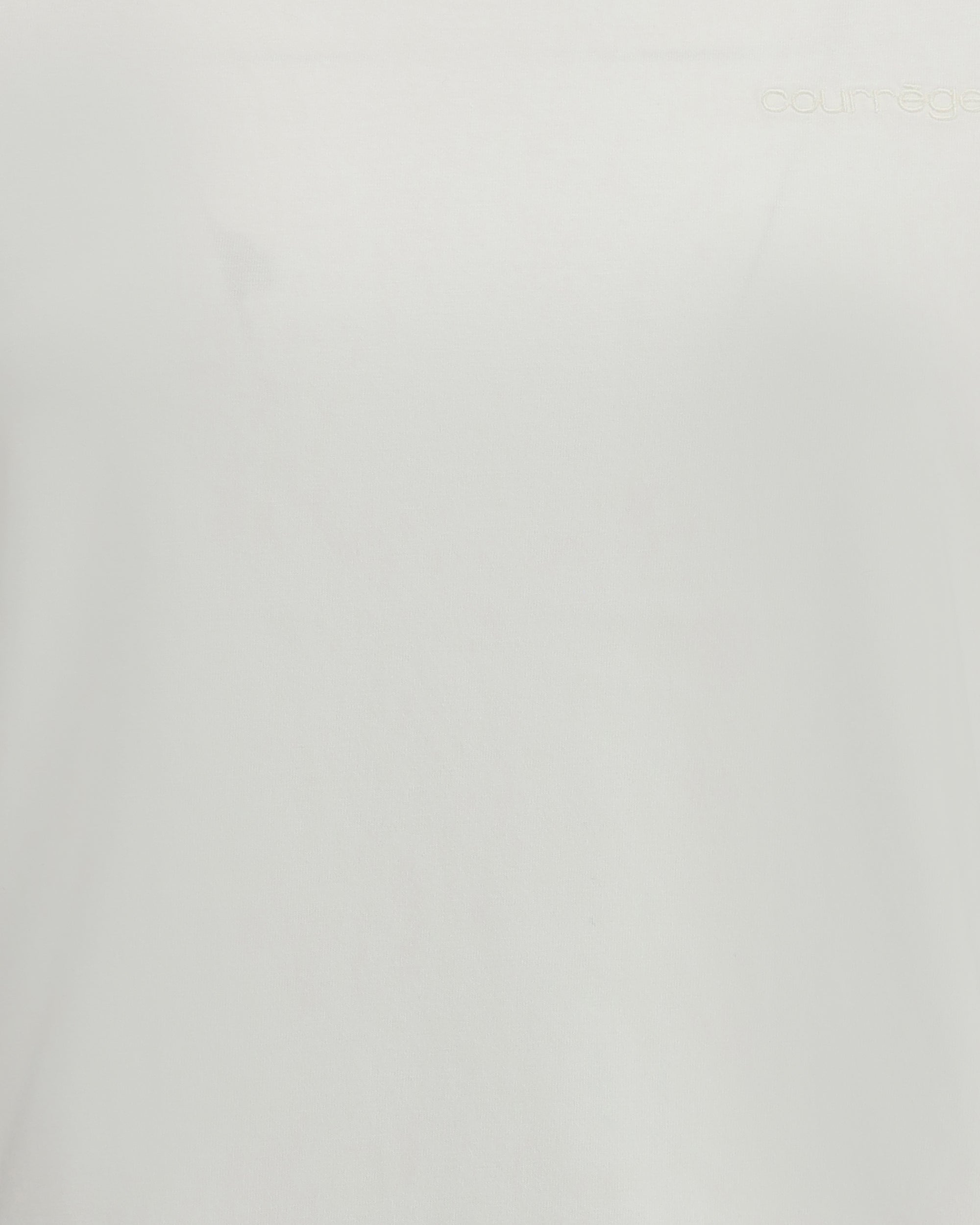 The Courrèges Embroidered logo T-Shirt is an essential garment with a clean, contemporary design. Featuring a ribbed crew neck and made of soft cotton, it features an embroidered logo on the front, a distinctive detail that adds an iconic touch to a simple and versatile model.