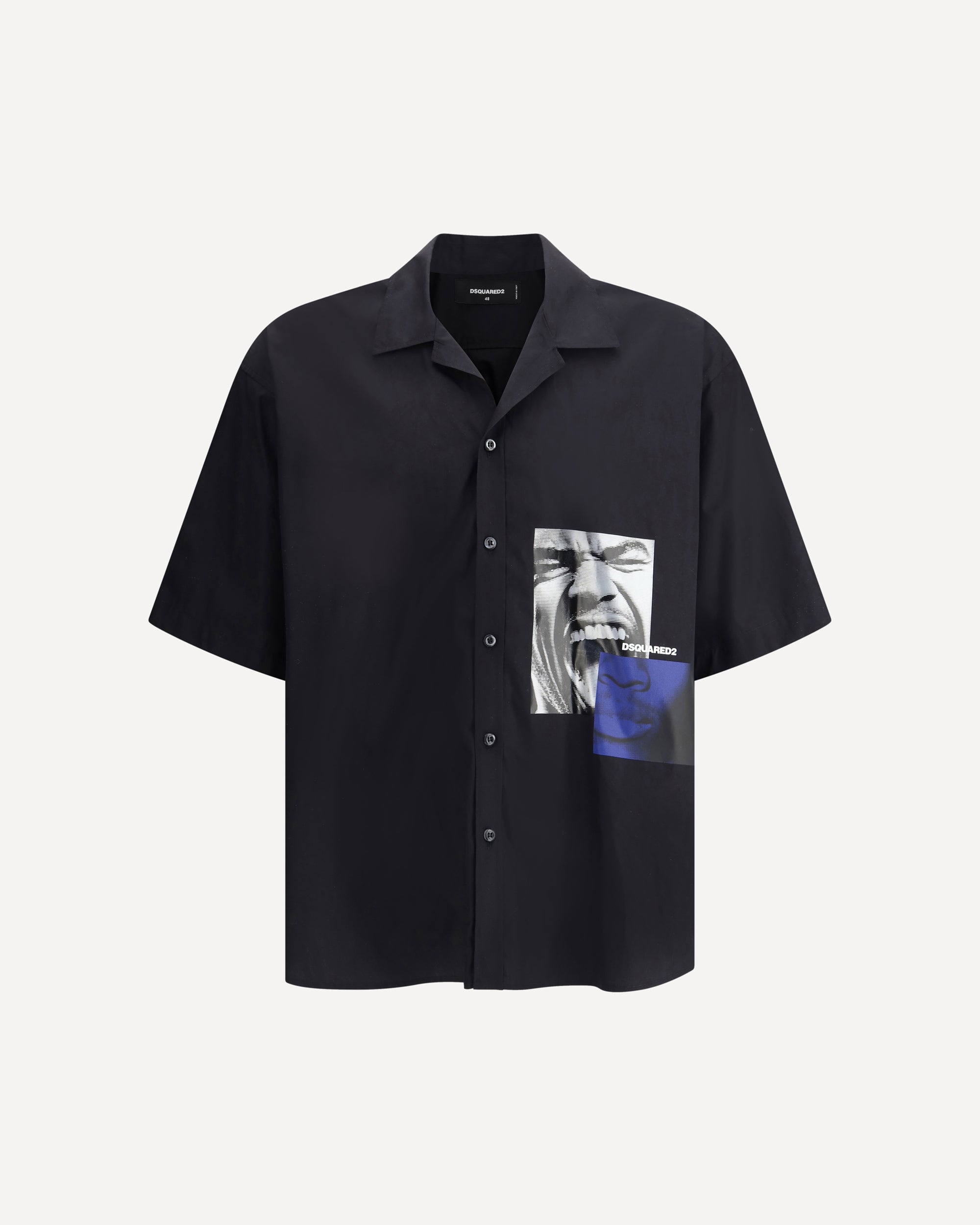 The Fighter Notch cotton Shirt by Dsquared2 is a garment with a fresh and contemporary design. It features a Cuban collar that adds a touch of summer style, while the short-sleeved model makes it ideal for warmer days. The front closure is with buttons, maintaining a clean and sober look. The front panel is enriched with a distinctive print, with a detail that includes the iconic monogram of the brand, adding an element of recognition and personality to the garment.