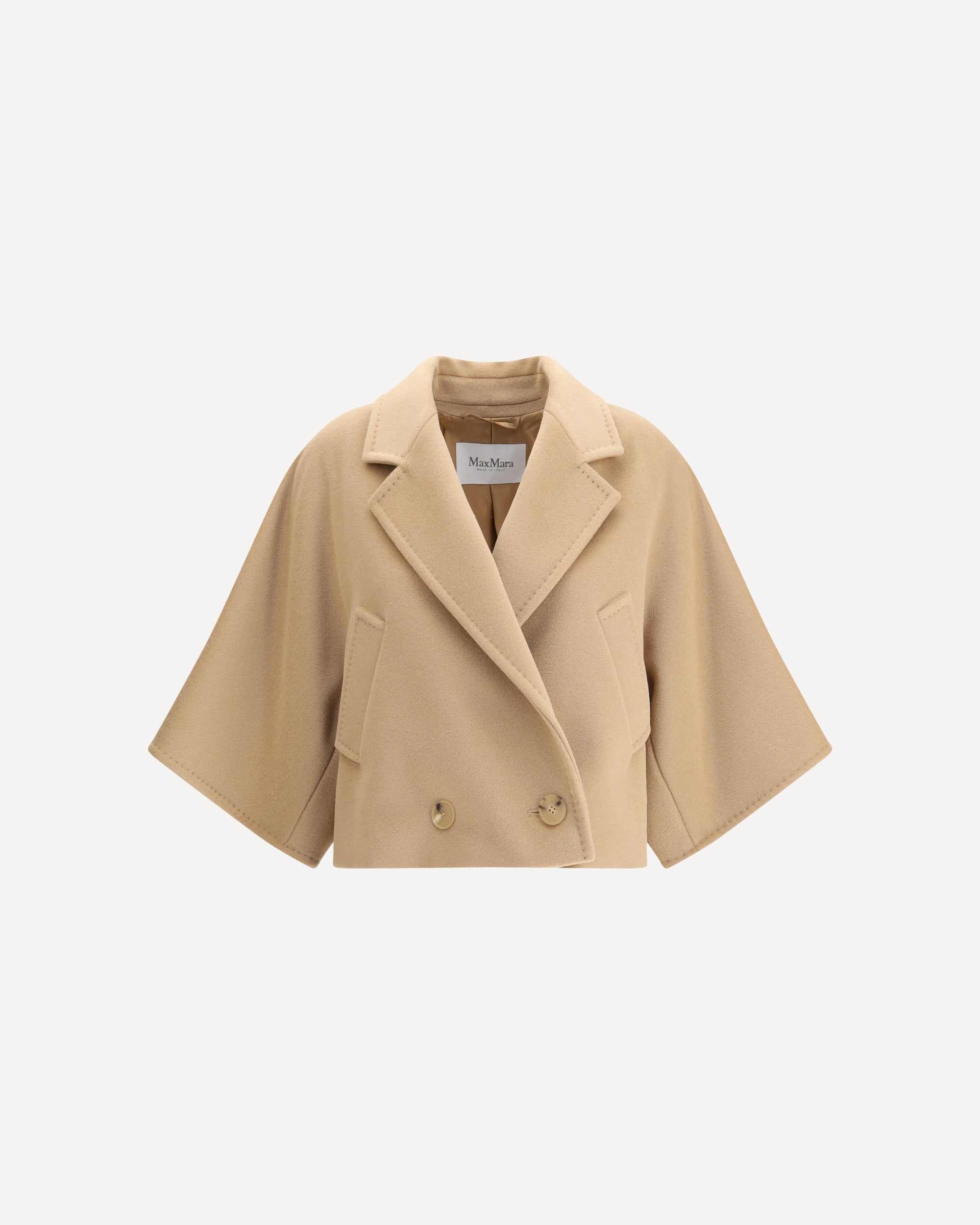 Max Mara's Galea caban Coat is a garment with a classic and timeless style. Double-breasted and short in length, it features a lapel collar and dropped shoulders that accentuate its softness. The button closure and America pockets combine functionality and elegance, while the straight-hemmed hem ensures a clean, refined finish.