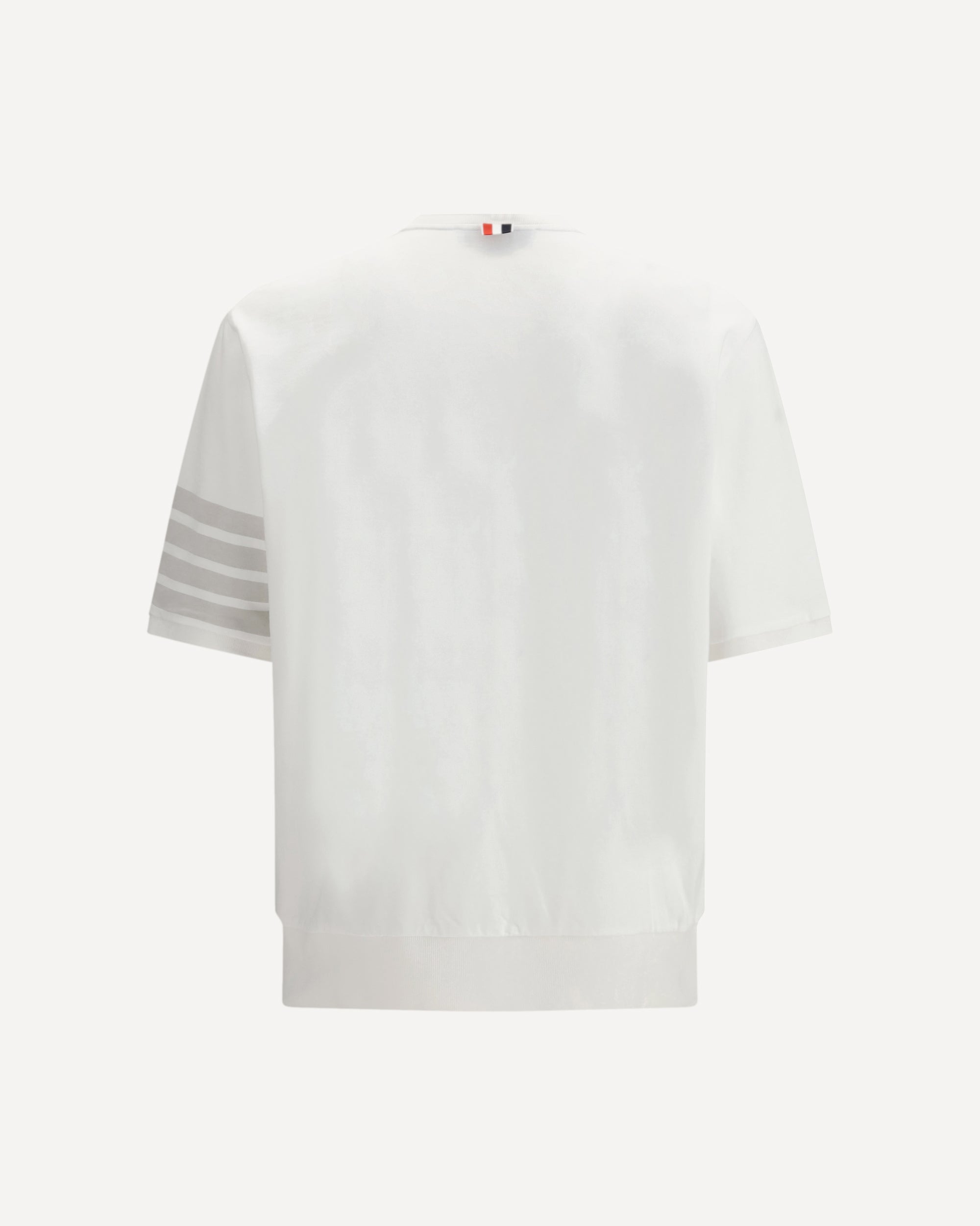 The 4-Bar cotton jersey T-shirt by Thom Browne reflects the brand’s disciplined aesthetic through graphic details and refined proportions. The crew neck creates a clean line, while the elasticated hem adds structure to the silhouette. The 4-Bar motif and the patch applied on the lower left side with the brand name and signature information complete the piece with an iconic and recognizable touch.