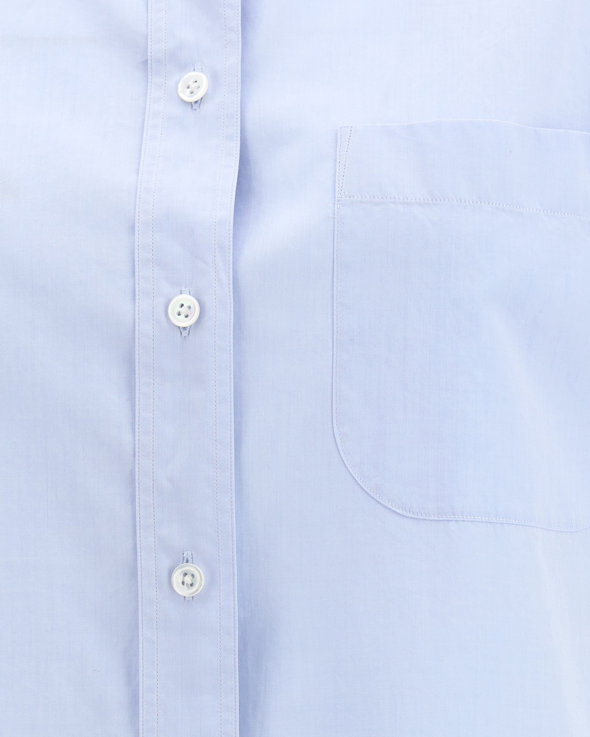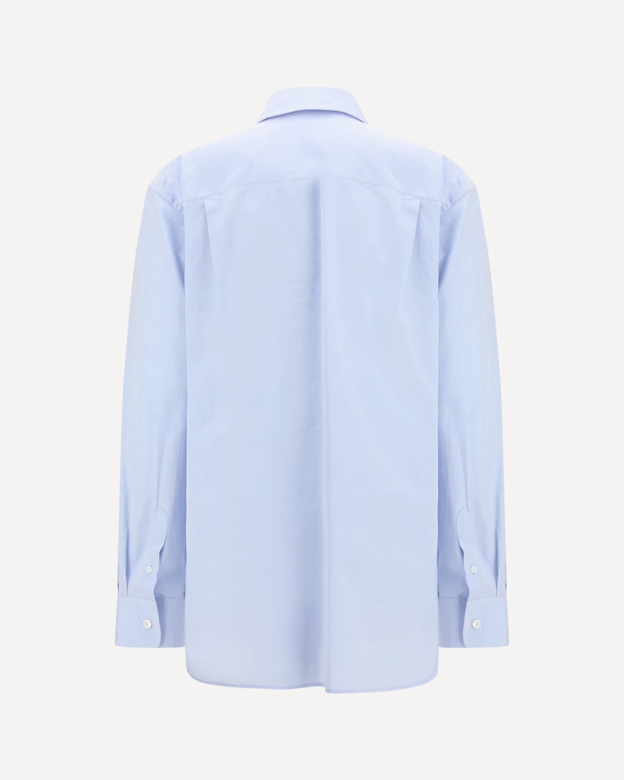 The Metis Shirt by The Row is crafted from premium cotton poplin, featuring a clean, refined silhouette that embodies the brand’s minimalist elegance. It has a front button closure, buttoned cuffs, and mother-of-pearl buttons, offering a subtle touch of understated sophistication.