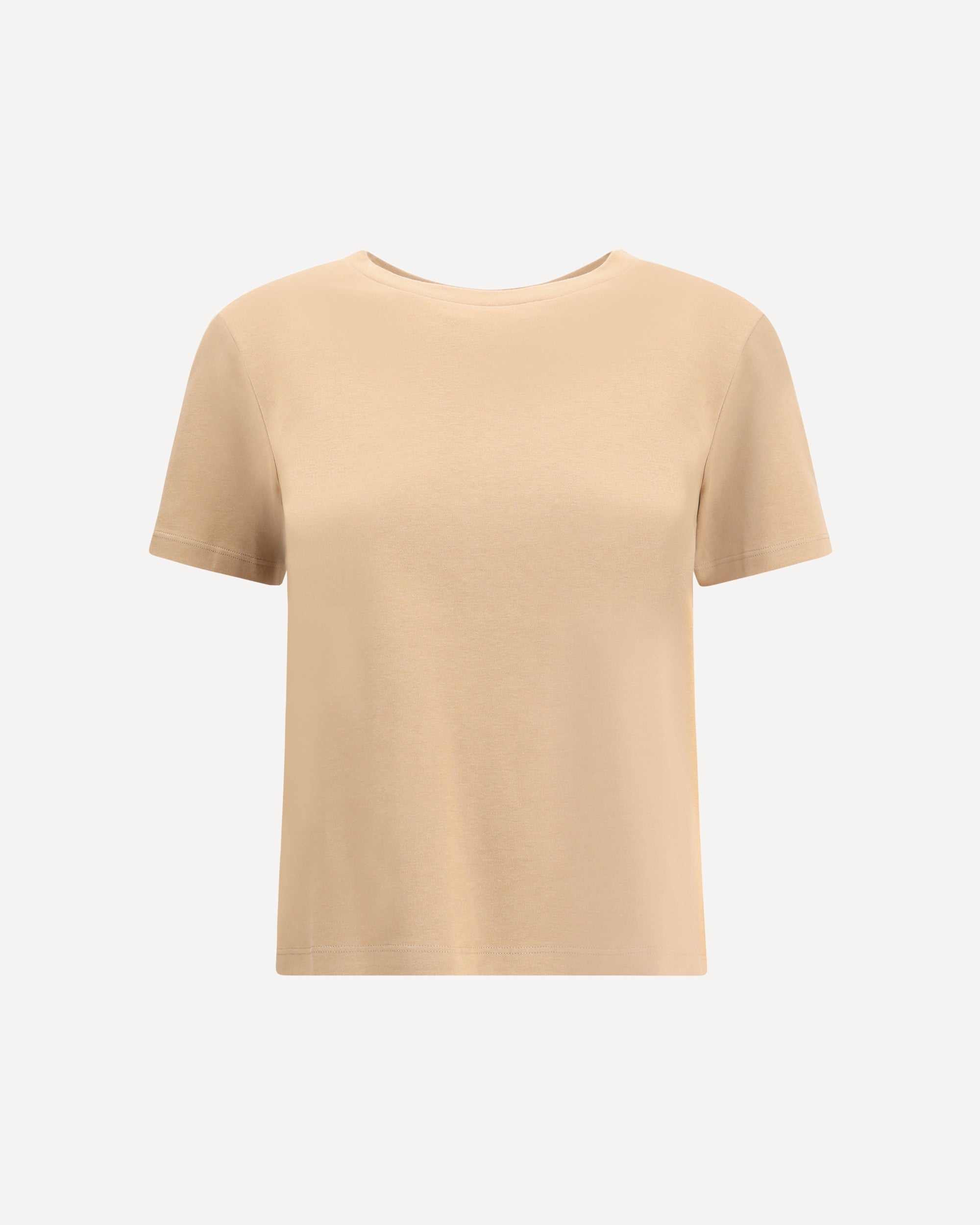 The Gemma T-Shirt by 'S Max Mara is an essential piece with a straight cut and monochrome design. On the back is a logo patch, a discreet detail that adds a distinctive touch to the simplicity of the design.