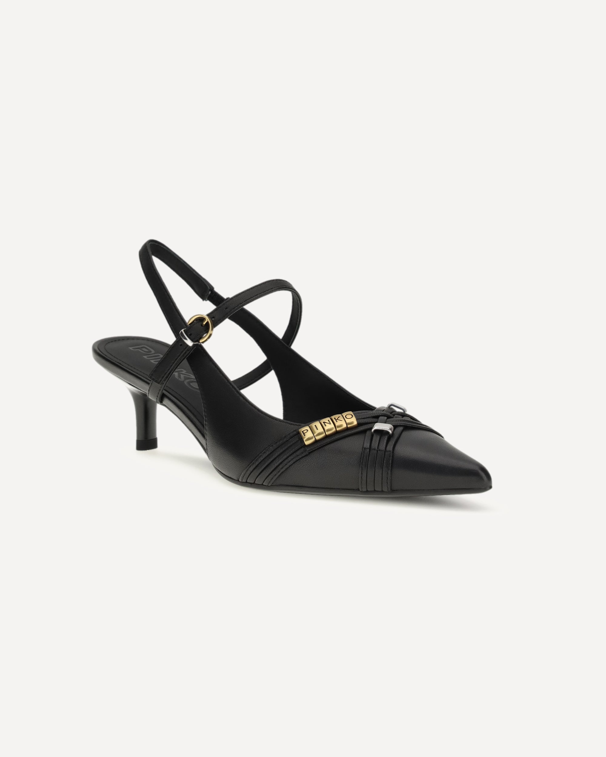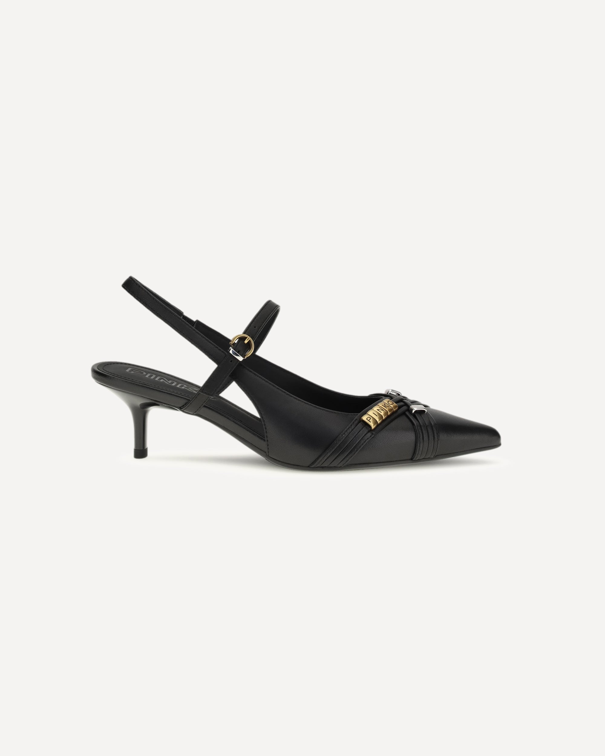 The Gloria 18 Pumps by Pinko are distinguished by an essential and refined design. The pointed toe model is completed with an adjustable strap closure, which ensures a secure fit. The engraved logo midsole signs the shoe with a discreet detail, while the covered heel and rubber sole ensure comfort and stability.