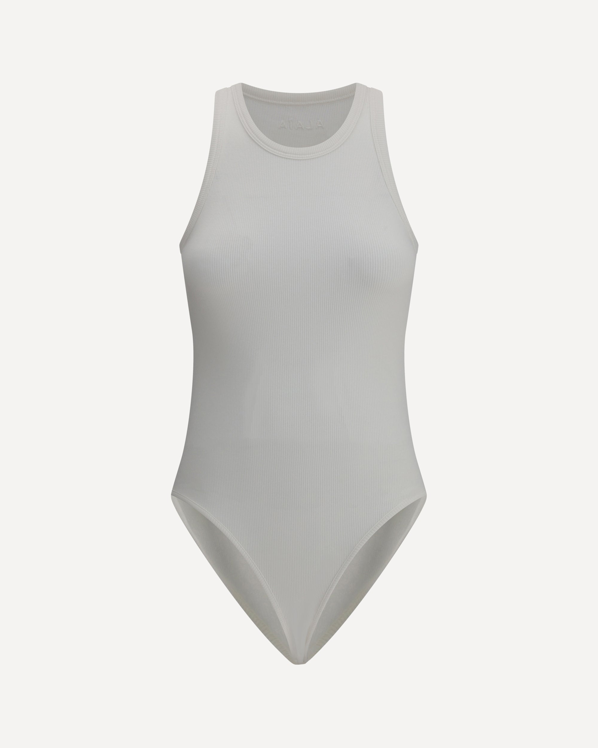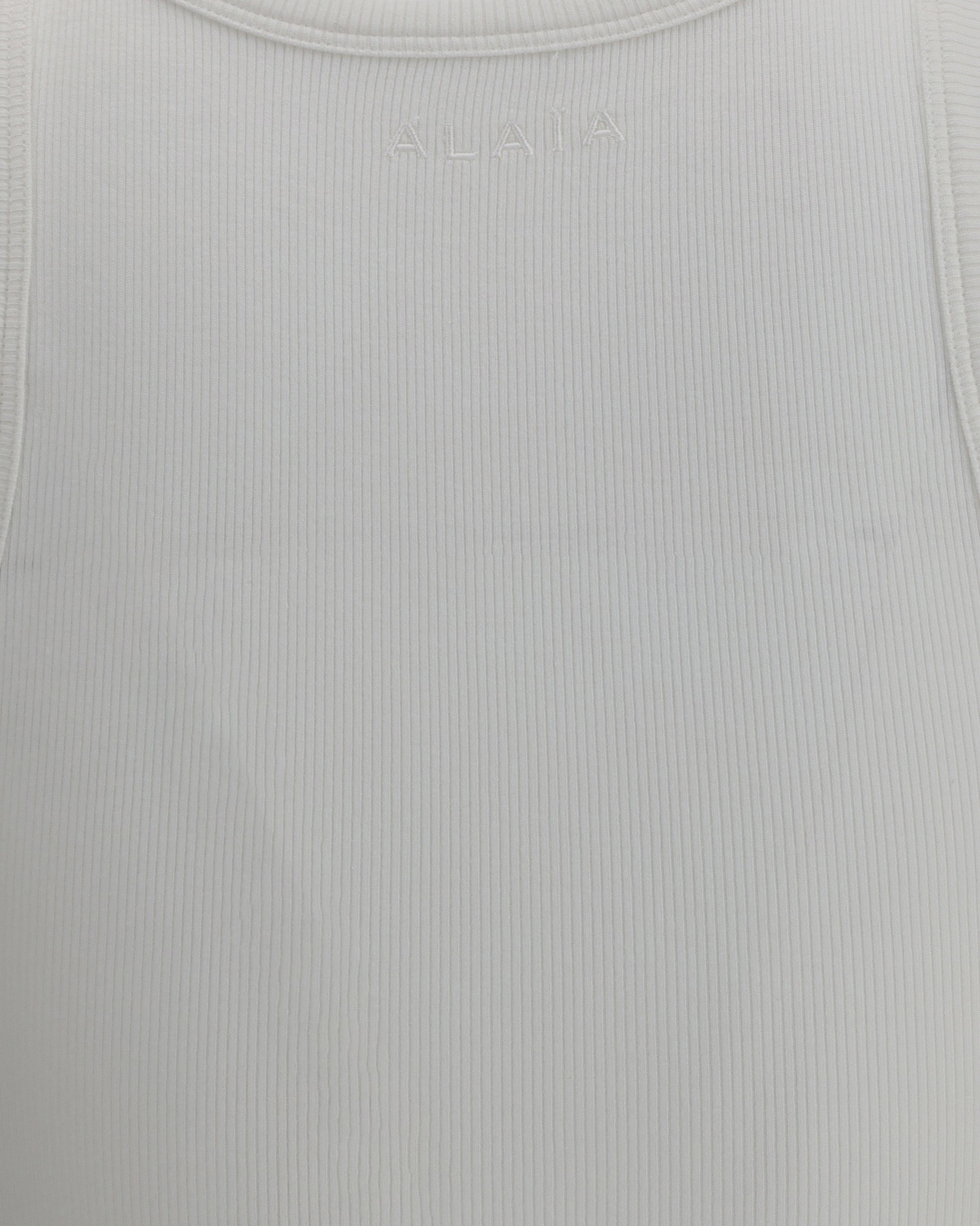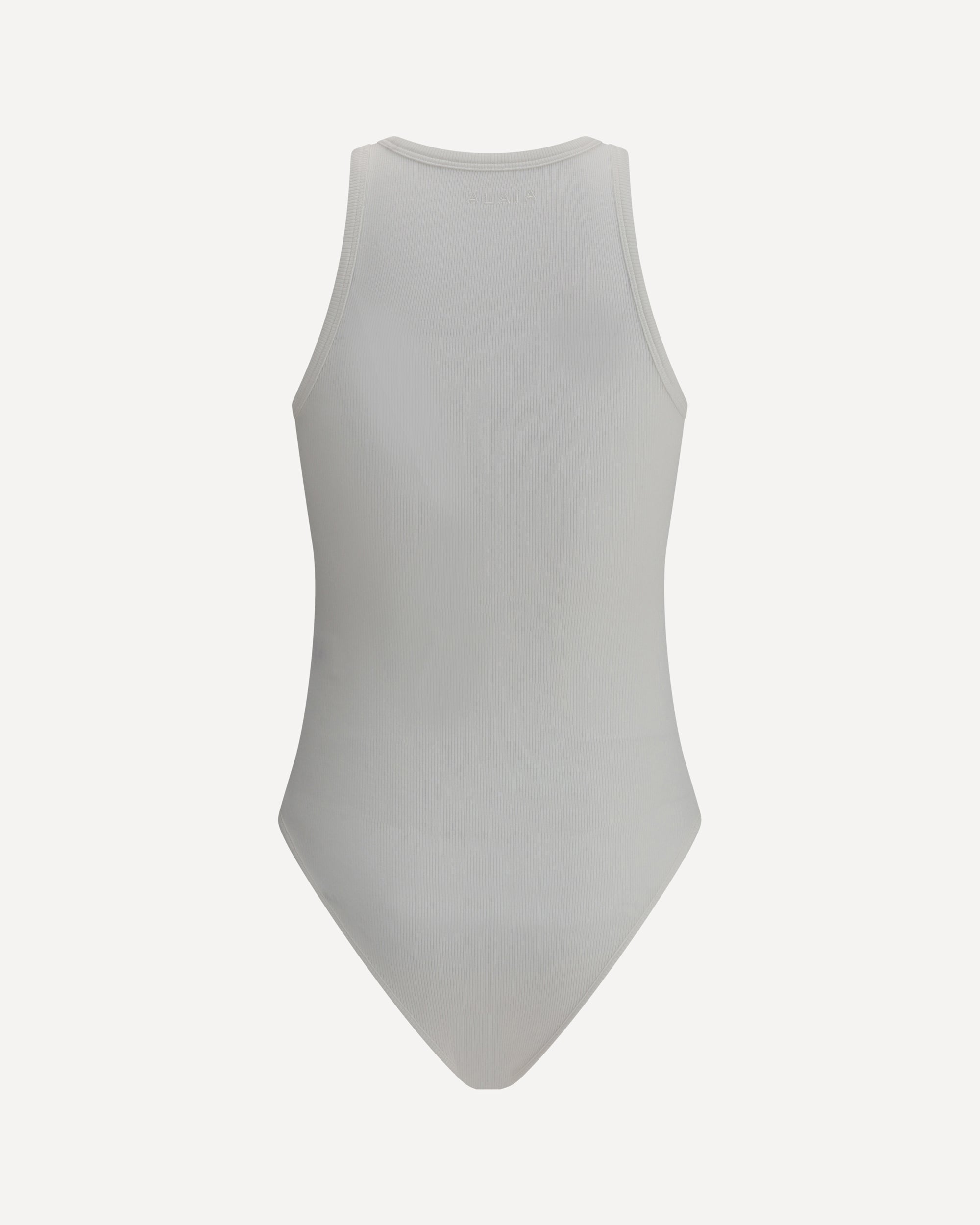 Alaïa's ribbed Bodysuit is made of ribbed viscose knit designed to offer a shaping, close-fitting fit. Featuring an elegant halter neckline, it features a snap-button closure for maximum practicality. An essential garment with a clean and sophisticated design, perfect for enhancing the silhouette.
