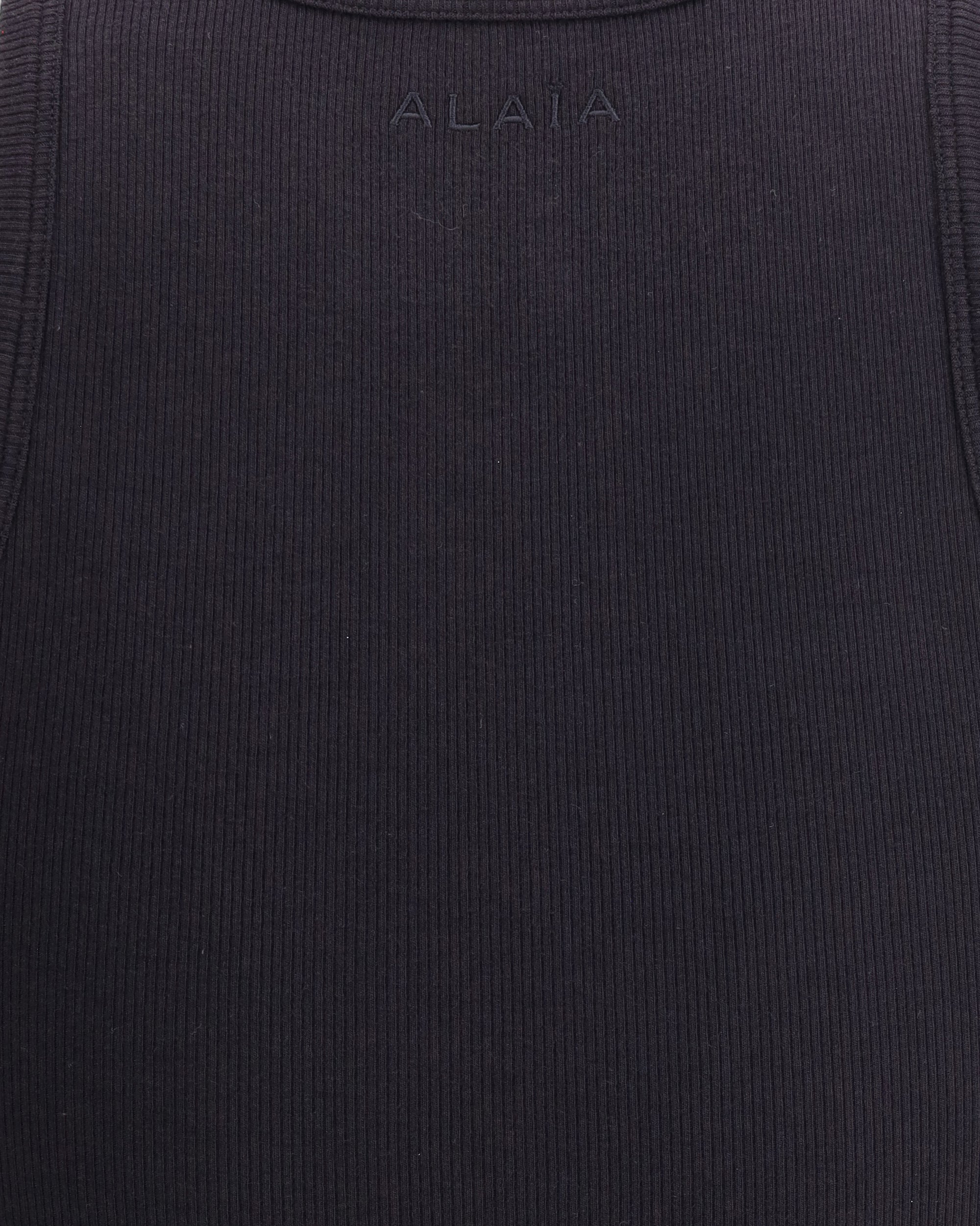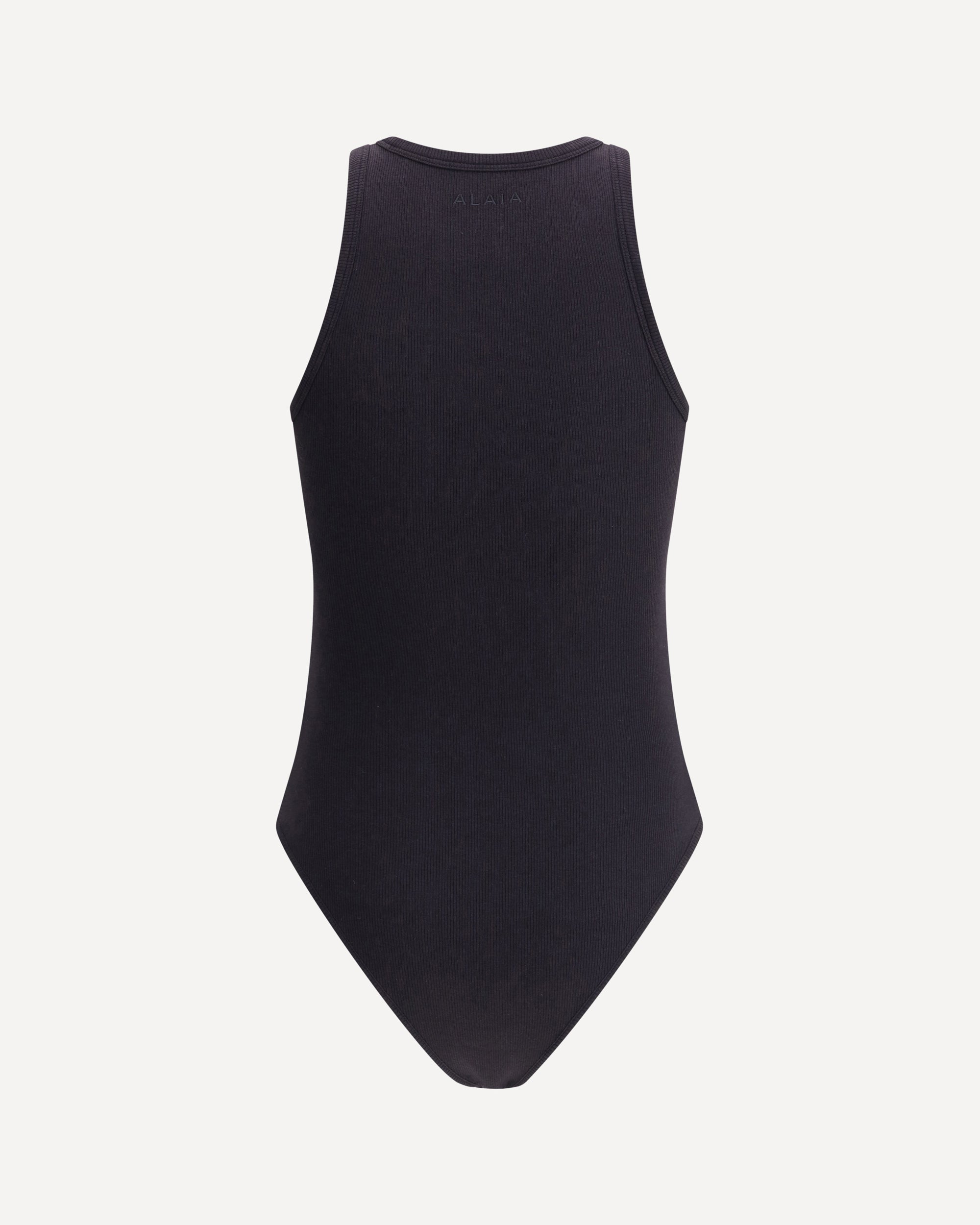 Alaïa's ribbed Bodysuit is made of ribbed viscose knit designed to offer a shaping, close-fitting fit. Featuring an elegant halter neckline, it features a snap-button closure for maximum practicality. An essential garment with a clean and sophisticated design, perfect for enhancing the silhouette.