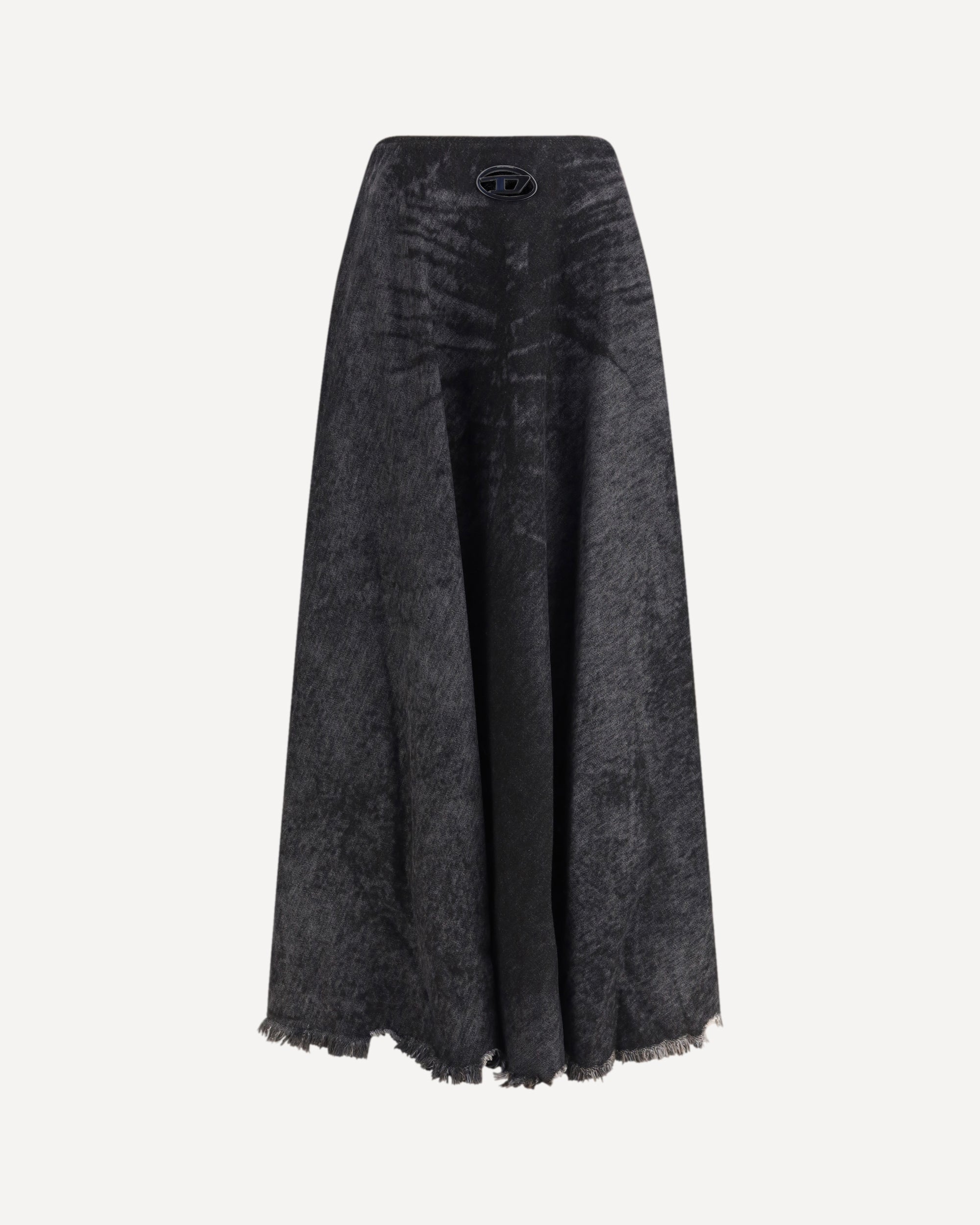 The flared Hannie Skirt with logo by Diesel features a sleek A-line design with a modern attitude. Crafted in black fabric, it showcases a fluid yet structured silhouette that flatters the figure. The brand’s logo adds a distinctive and contemporary touch, making it a versatile piece suited for both casual and refined looks.