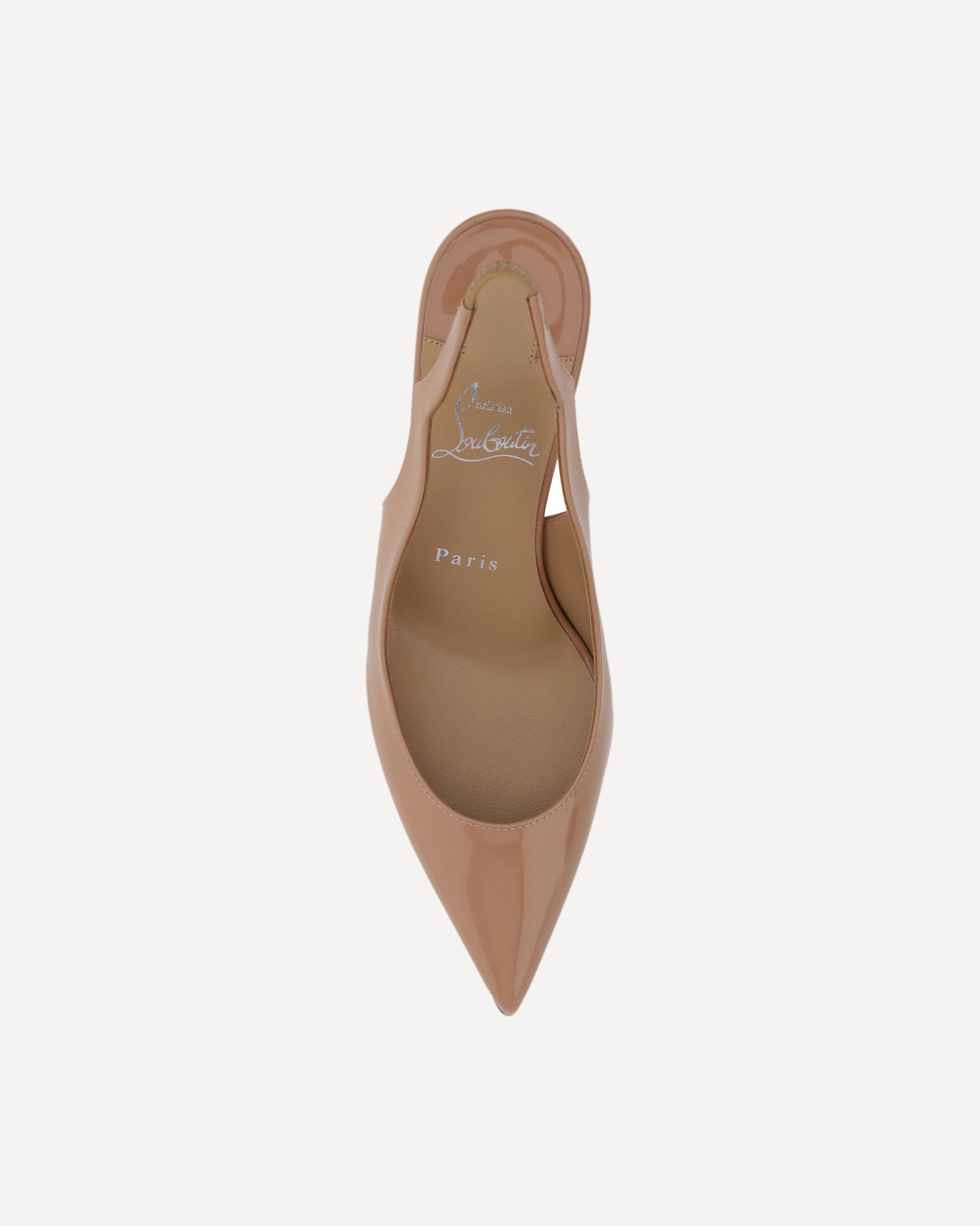 The leather Hot Chick Pumps by Christian Louboutin embody bold, sensual elegance. The shiny leather design highlights the tapered silhouette, enhanced by a geometric toe and a figure-flattering leather stiletto heel. On the back, the geometrically shaped slingback detail adds a refined touch, while the contrasting logoed insole completes the ensemble with a distinctive detail. Unmissable, the iconic red sole signs the unmistakable Louboutin style,