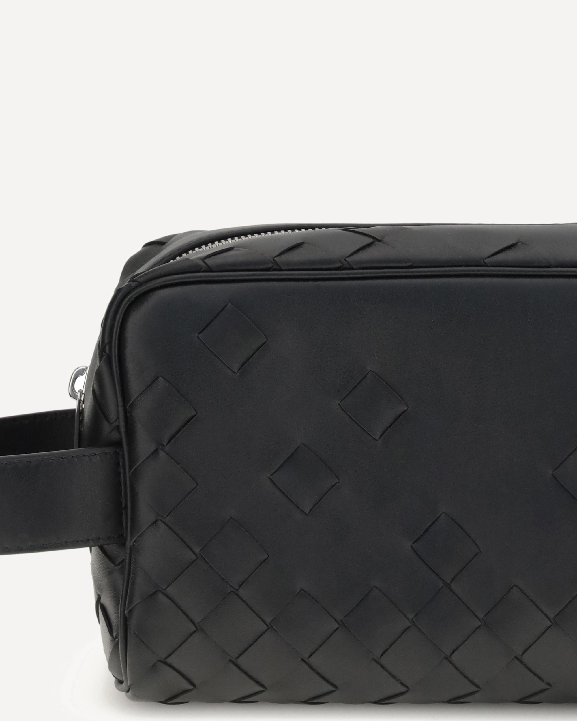 Bottega Veneta's Intrecciato Pouch combines elegant design and functionality. It features an interior zippered pocket and an open pocket, zippered closure and silver-finish metal hardware. A practical handle for convenient portability completes the model.
