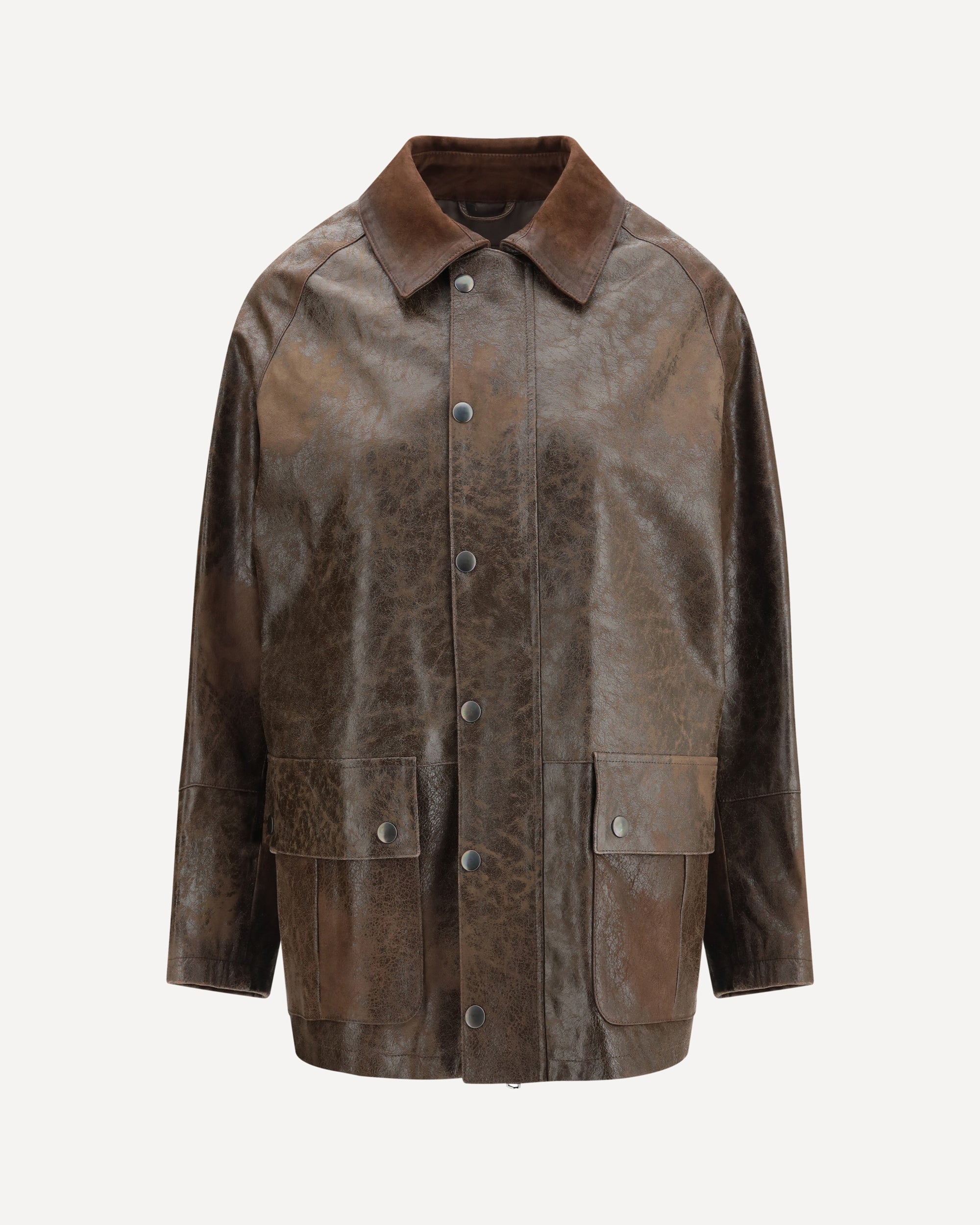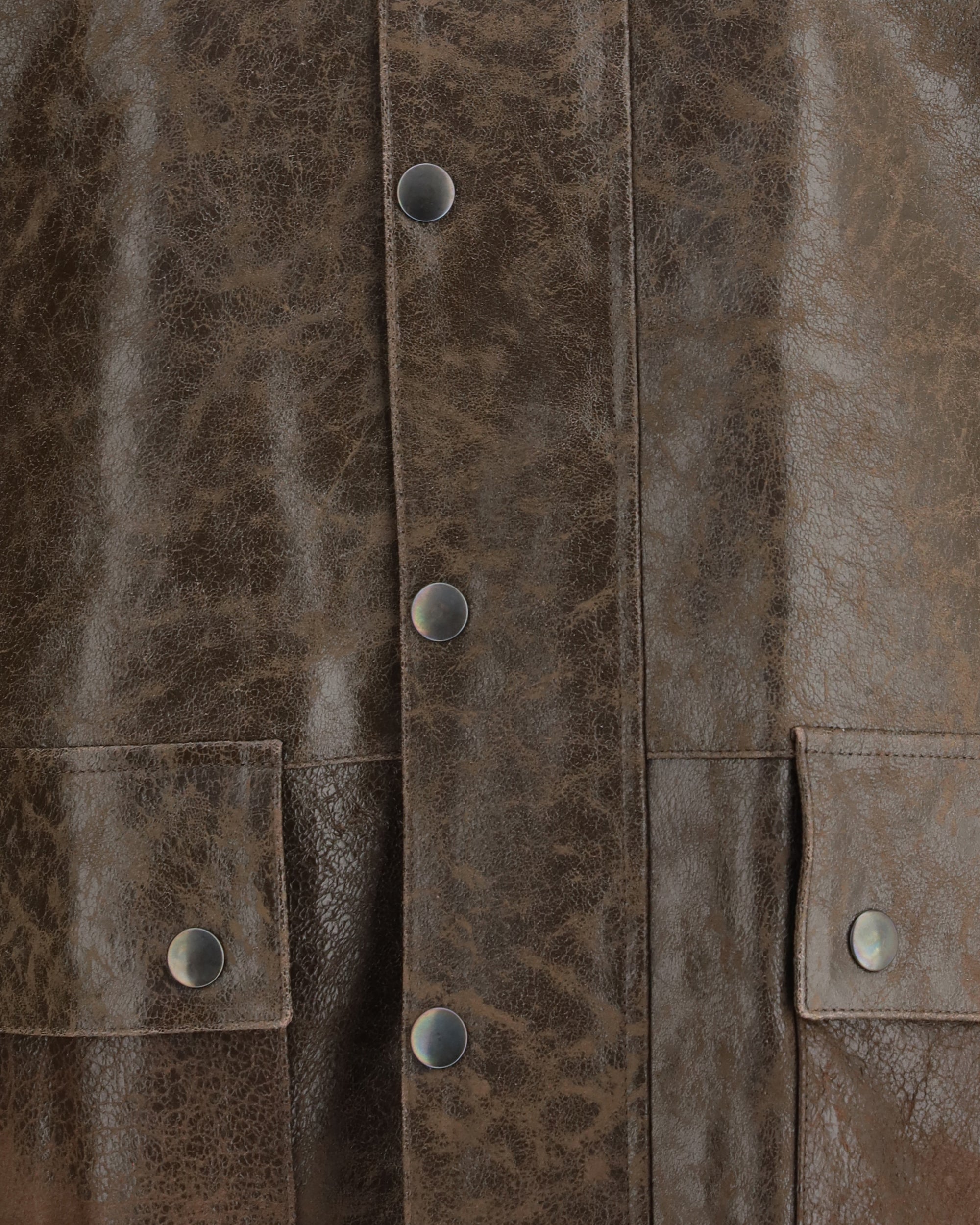 Valstar's leather Jacket stands out for its bold and contemporary character. Featuring a front snap-button closure, it offers practicality without sacrificing style. The two flap patch pockets on the front add a functional and design detail, while the distressed-effect leather gives the garment a vintage and lived-in allure, perfect for a gritty and authentic look. A must-have for those who love casual elegance with personality.