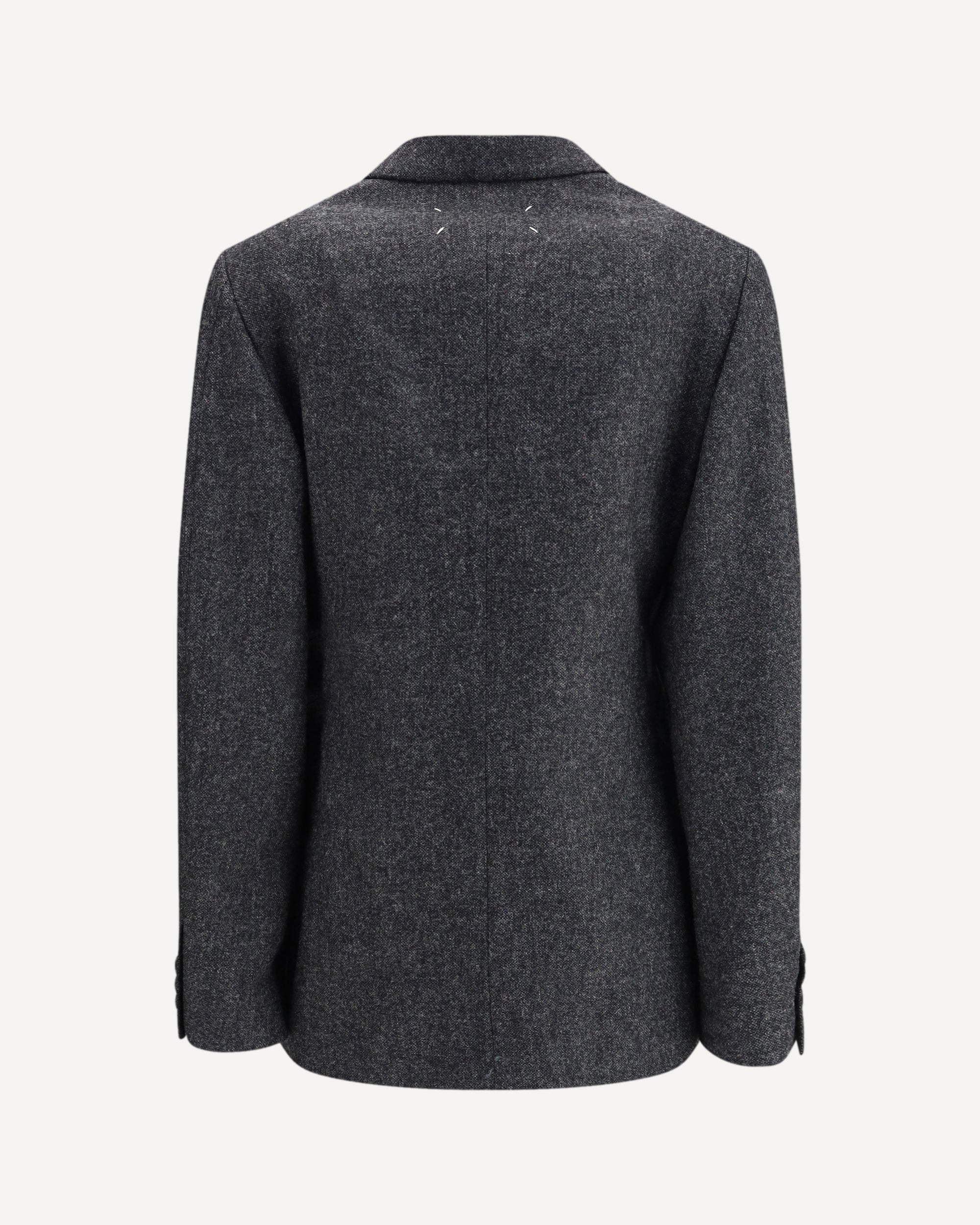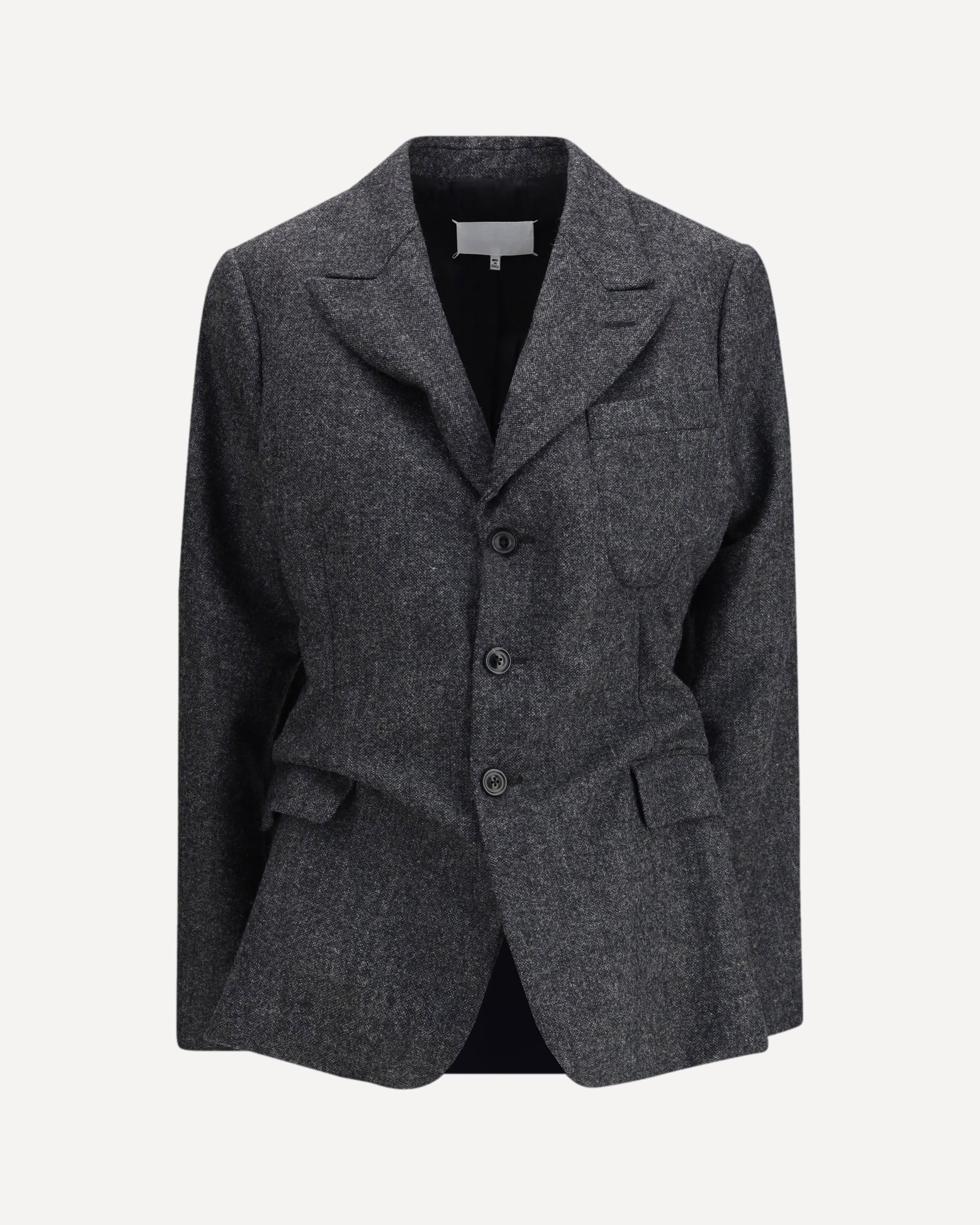 The Three-Button Tweed Jacket by Maison Margiela is crafted from wool with classic lapels and a subtly structured tailored line. The fabric features a delicate pleated effect that adds movement and depth to the tweed texture. Faithful to the Maison’s experimental vision, this piece reinterprets a wardrobe classic through a deconstructed, sophisticated lens where tradition meets a refined sense of contemporary elegance.