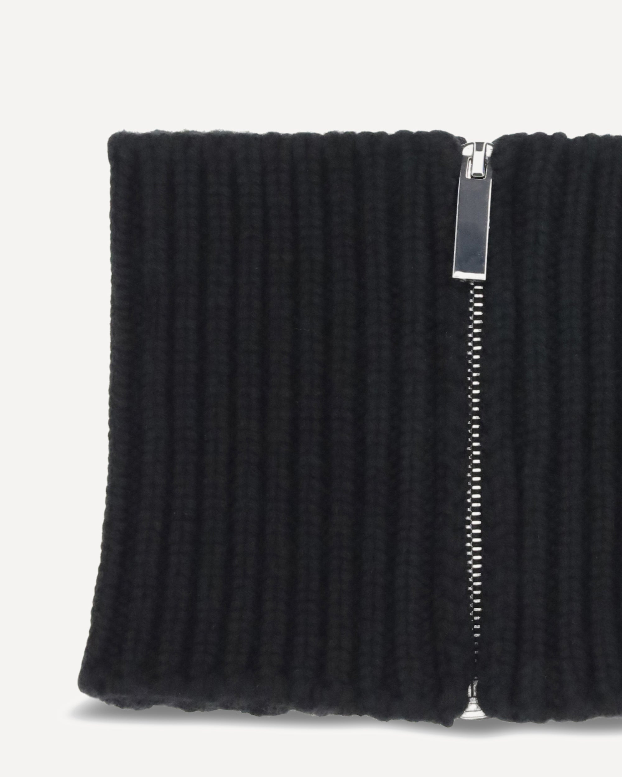 The Sa Su Phi collar Scarf is a pure cashmere neck warmer, ideal for warm and enveloping elegance. Featuring a ribbed design, it has a practical zipper closure that combines functionality and essential style.