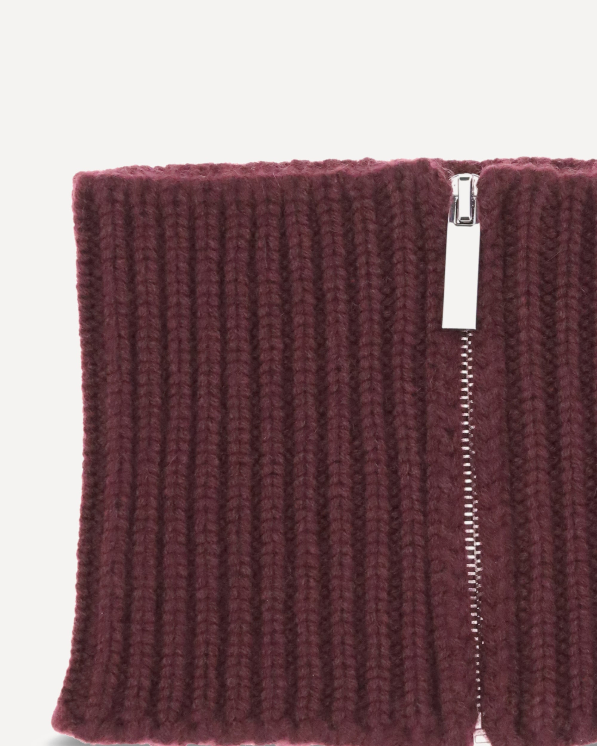The Sa Su Phi collar Scarf is a pure cashmere neck warmer, ideal for warm and enveloping elegance. Featuring a ribbed design, it has a practical zipper closure that combines functionality and essential style.
