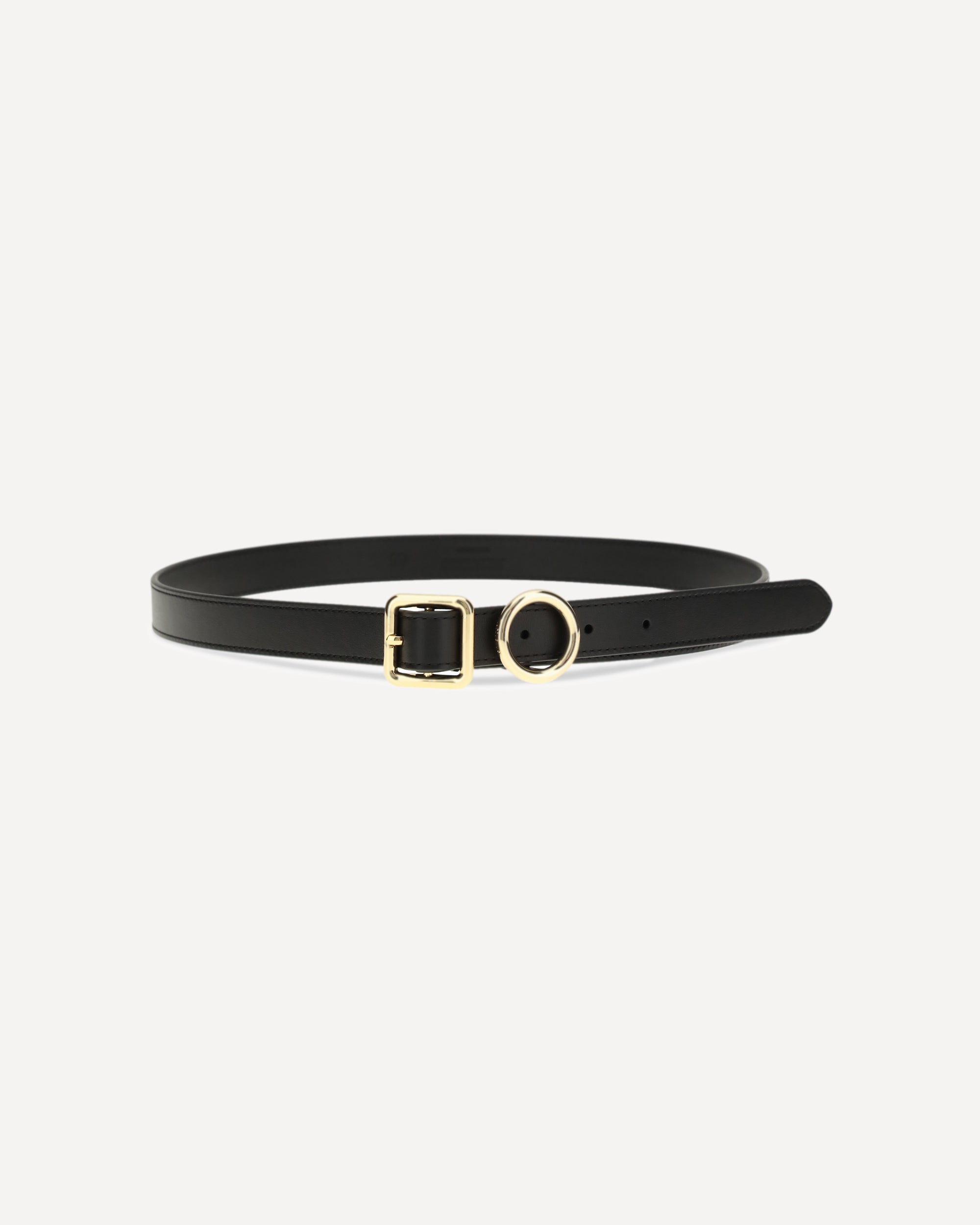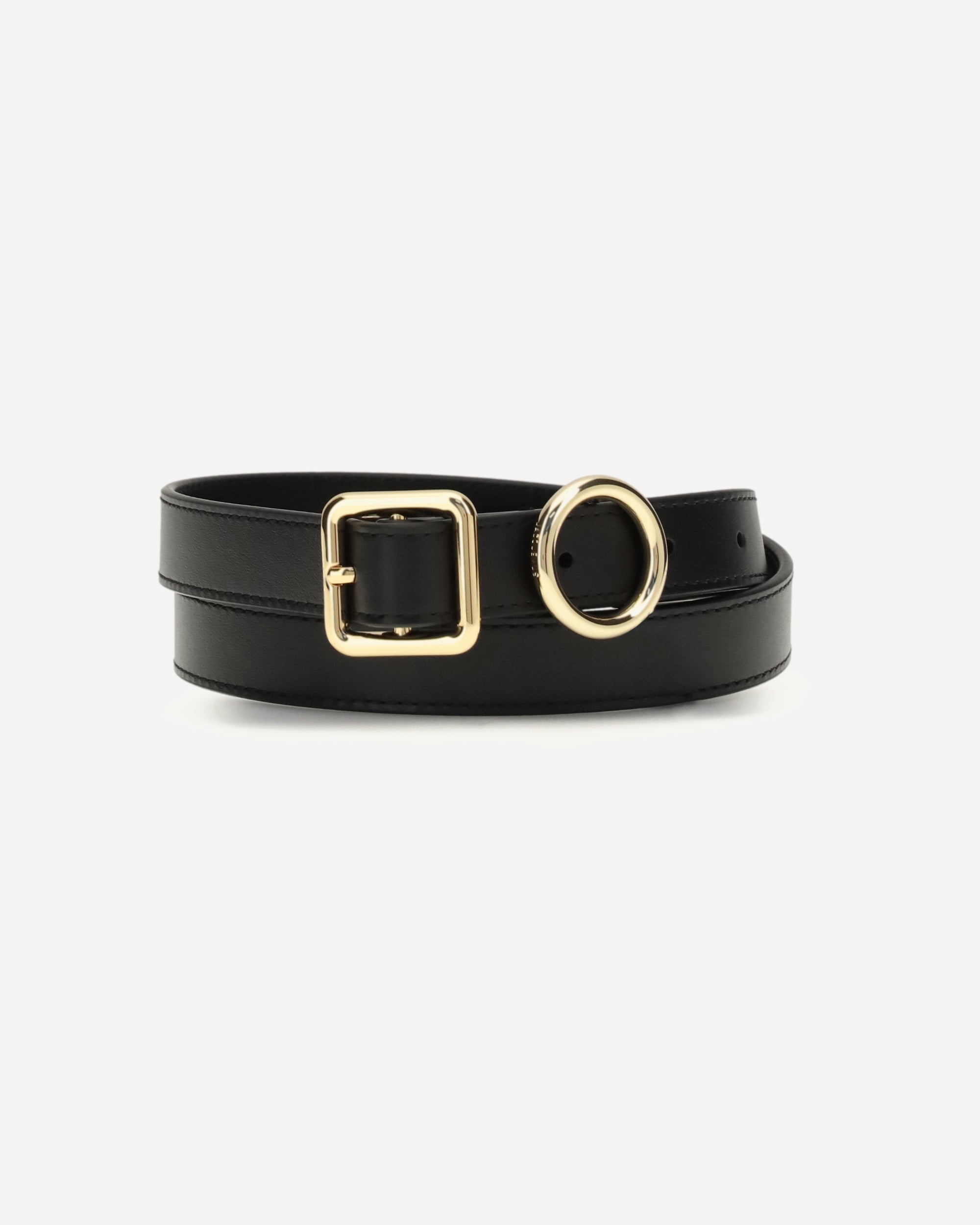 The small leather Regalo Belt by Jacquemus combines elegance and contemporary design. Made of leather, it is enhanced by circular and square gold metal rings, decorative perforations and stitching, and the engraved logo, which gives the model a distinctive and refined touch.