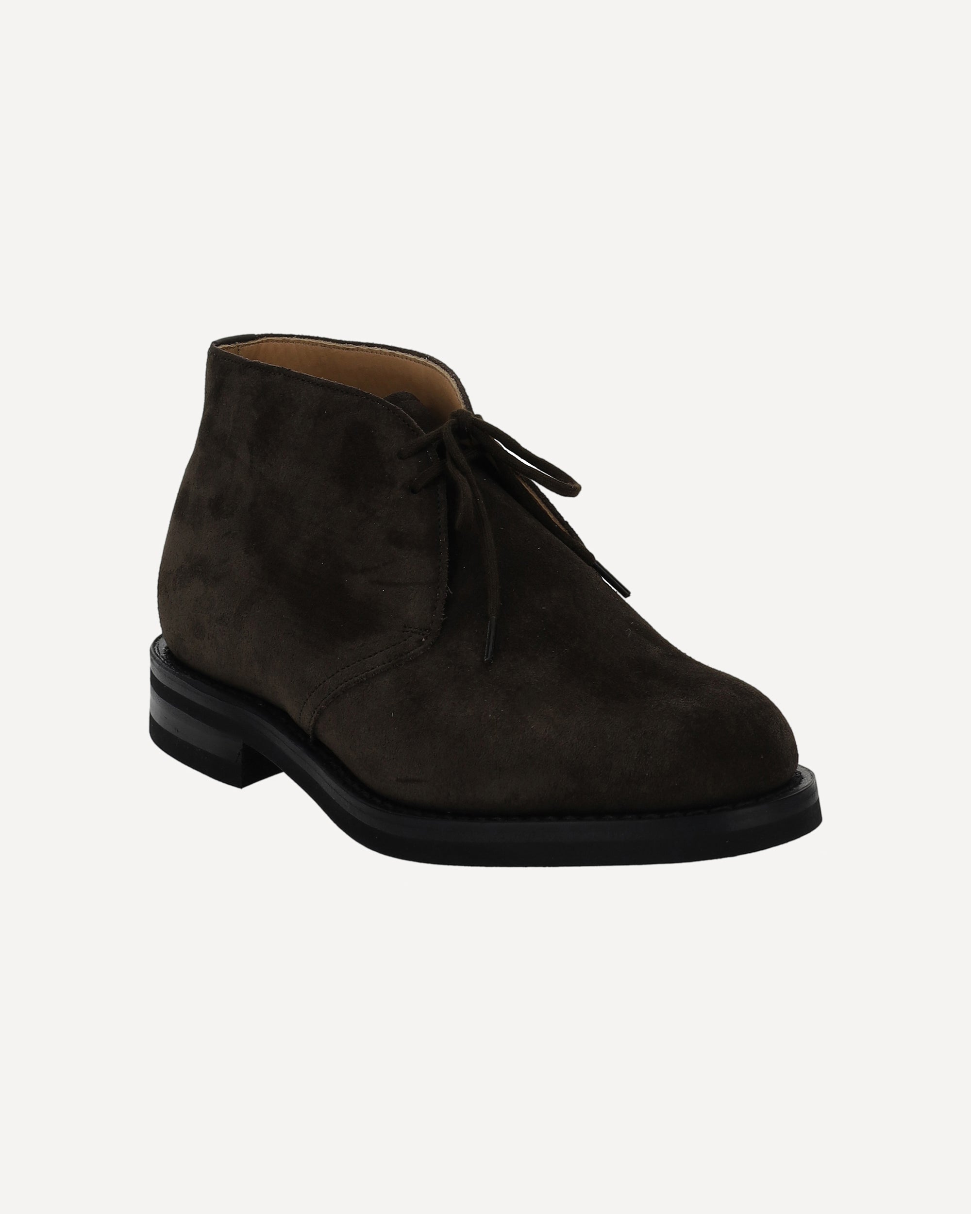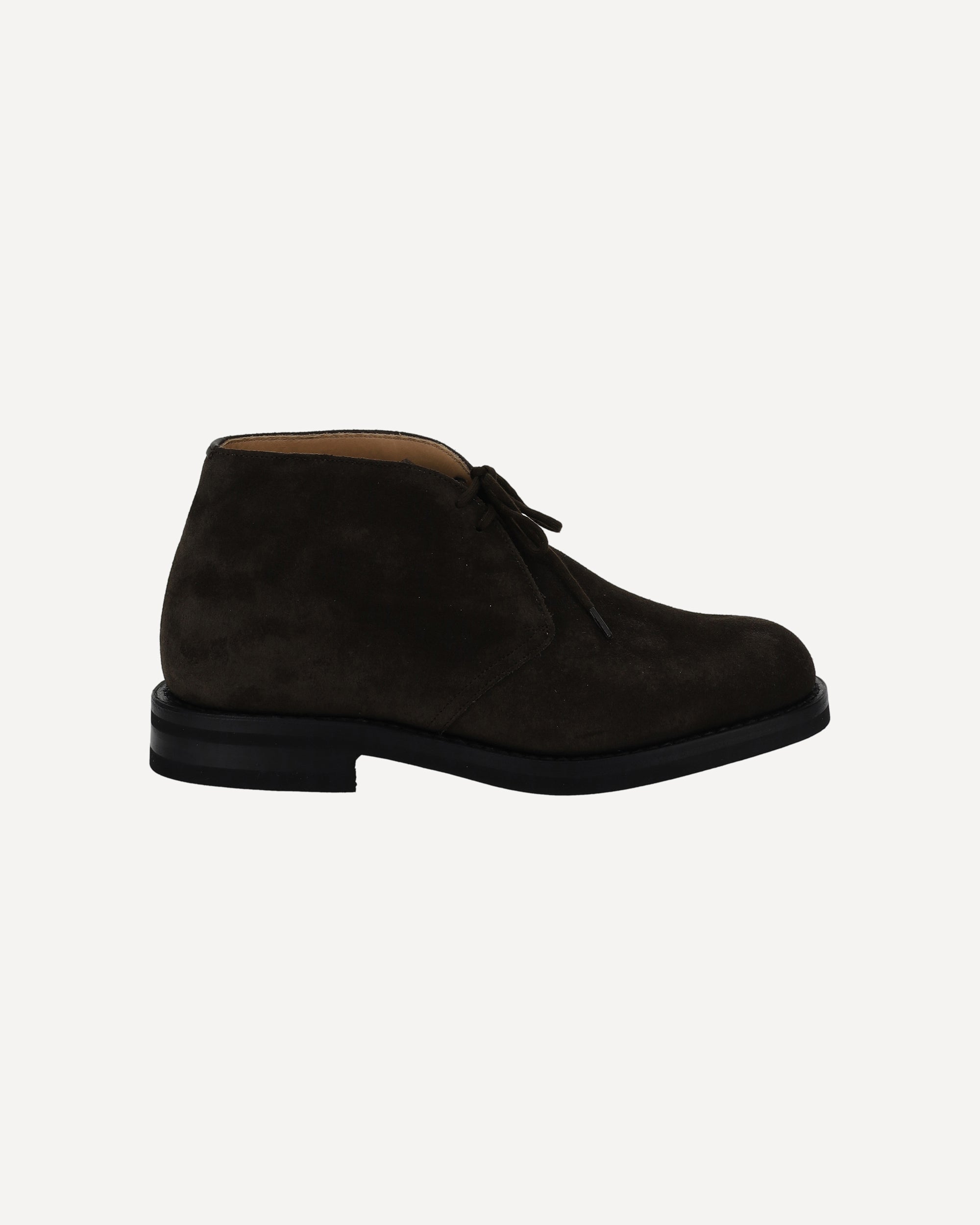 Calfskin Lace-Up Shoes by Church's, an ankle-length design, extended toe, lace-up front closure, slight leather block heel, suede leather design, press-on logo insole.