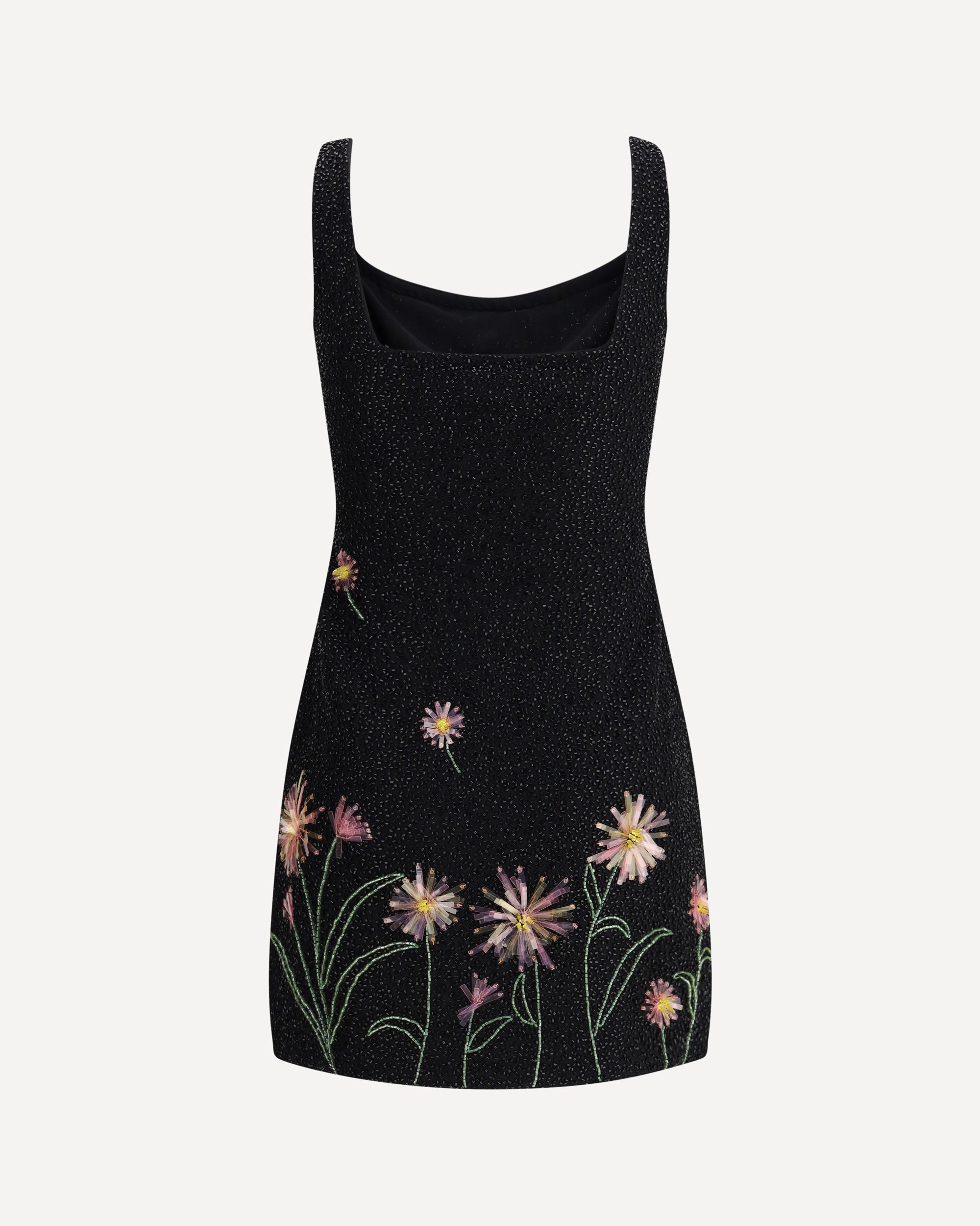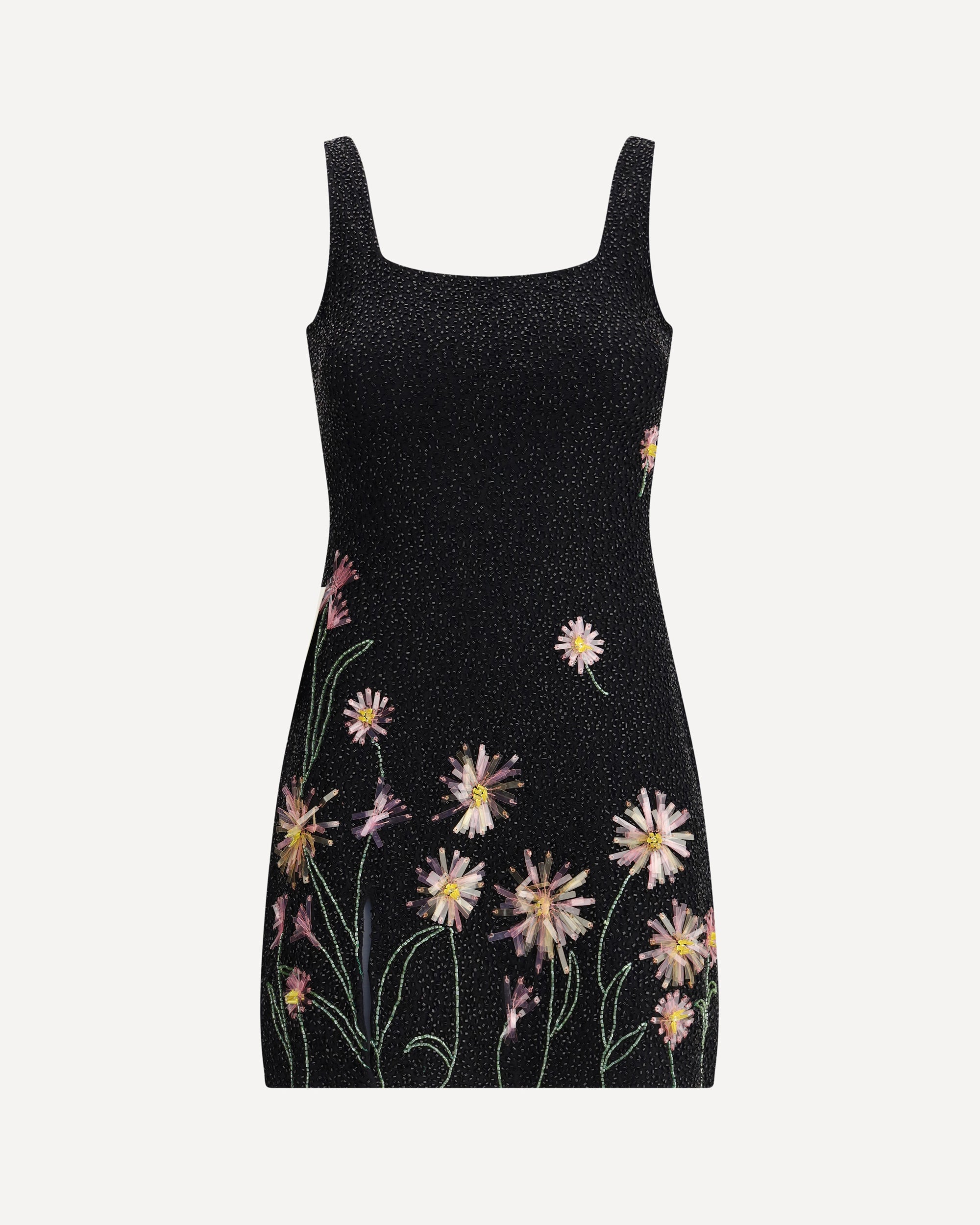 The elegant sequin le Sable Minidress by Staud with added hand-applied beading in a floral pattern, perfect for evenings and special occasions.