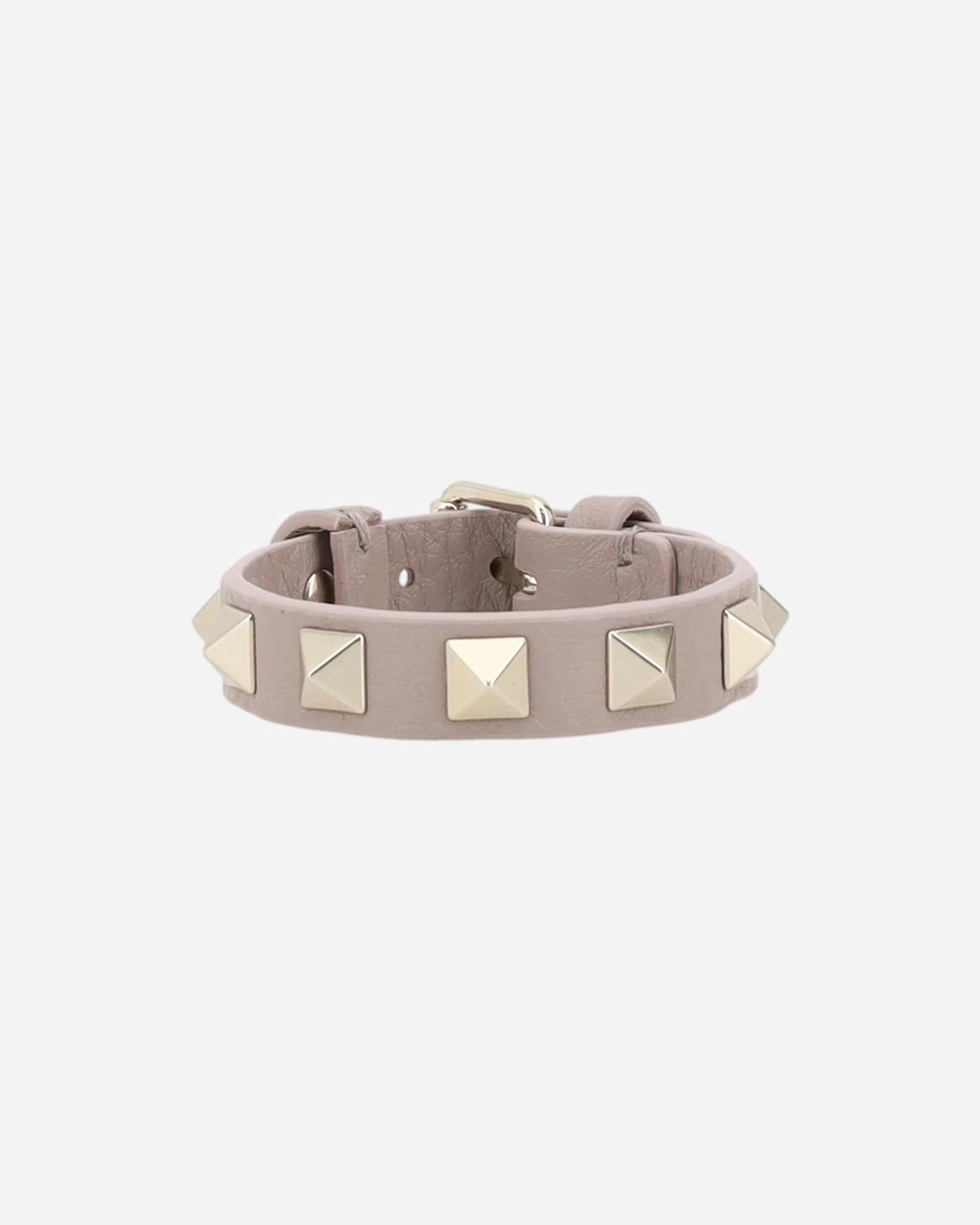 Valentino Garavani's leather Bracelet features an adjustable buckle strap and is embellished with the iconic all-over applied Rockstud studs. The smooth leather design lends a sophisticated and elegant touch, making this bracelet a distinctive and bold accessory.