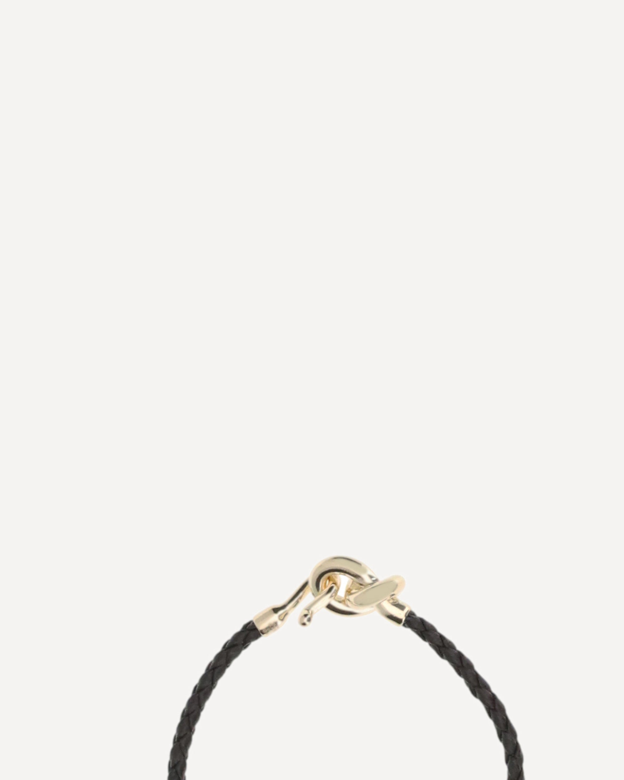 Bottega Veneta's Knot Bracelet is an elegant and iconic accessory made of woven leather, a symbol of the maison's craftsmanship. At the center, the emblematic Knot detail lends character to the design, complemented by a refined hook-and-eye closure. A distinctive piece, perfect for adding a discreet yet recognizable touch of style to any look.