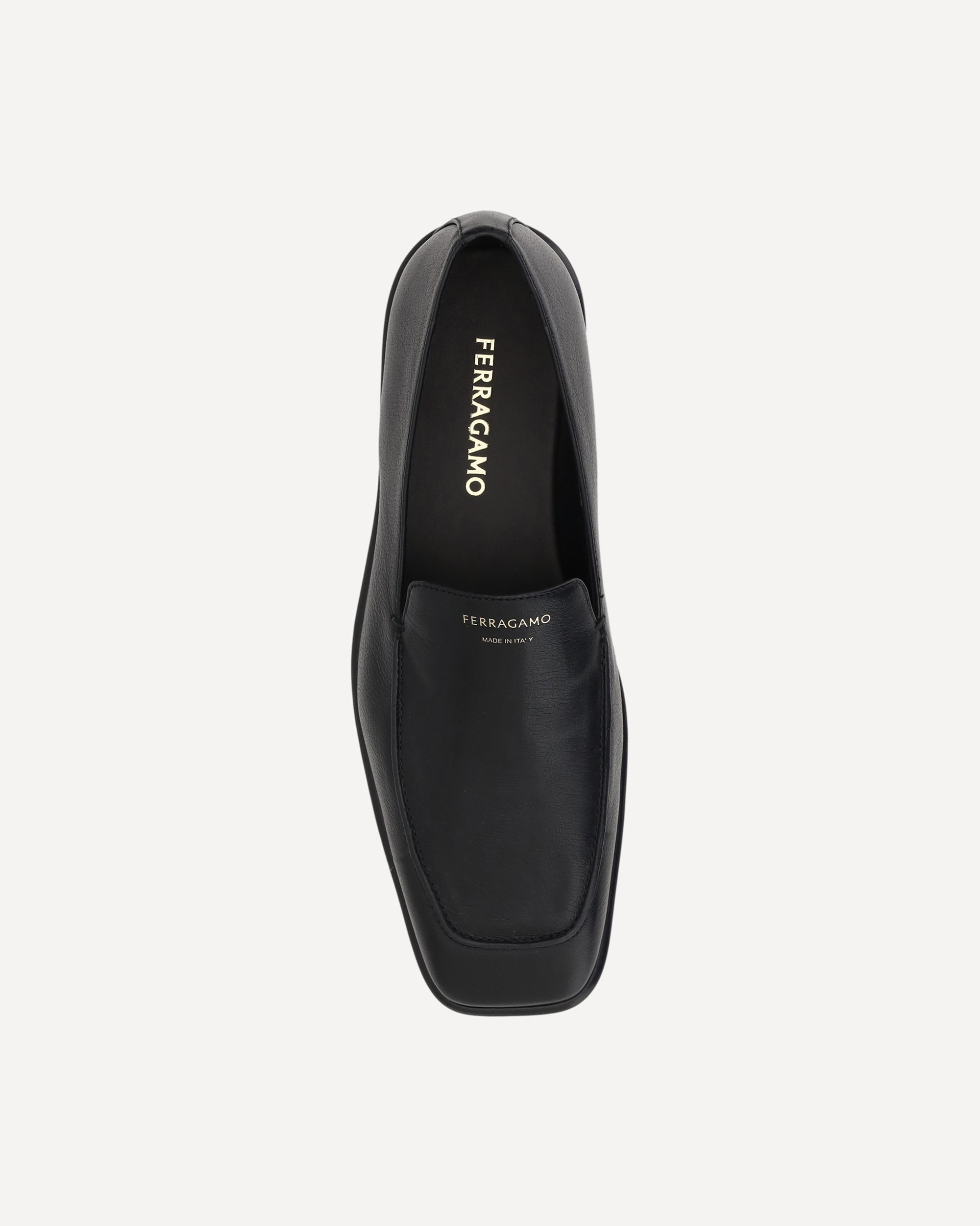 Ferragamo's hammered leather Loafers are an elegant example of sophistication and comfort. The unstructured square-toe design lends a modern and refined look, while the gold logo on the instep adds a distinctive and luxurious touch. The leather block heel provides stability and comfort, while the logoed insole further enhances the Ferragamo-branded design.