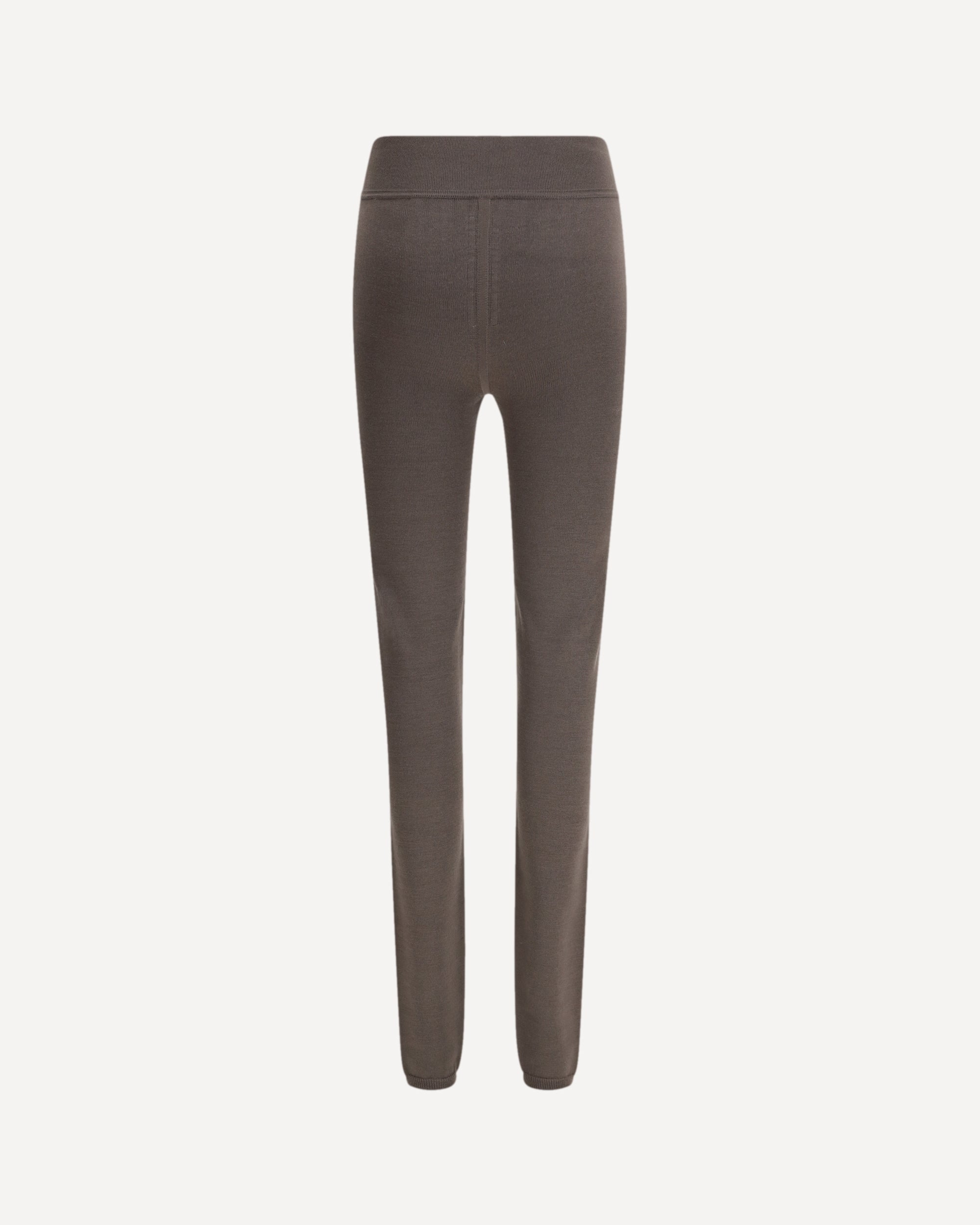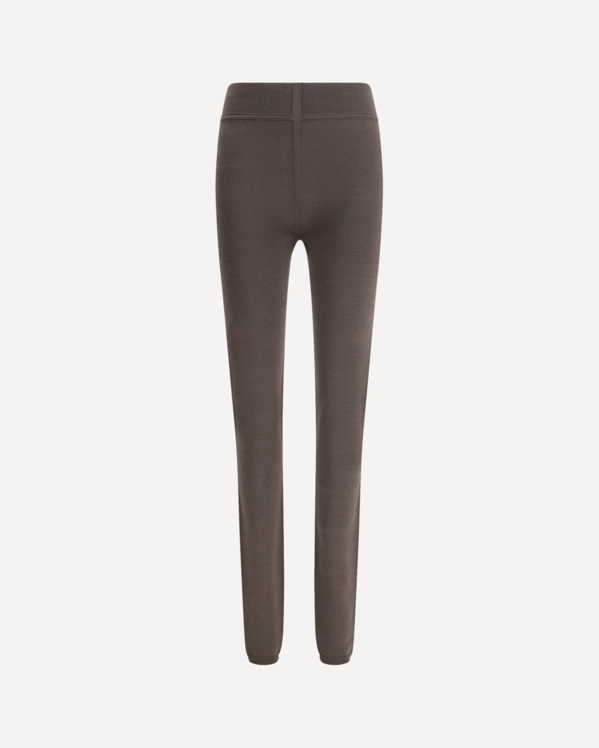 The virgin wool Leggings by Rick Owens explores the purity of line through a sculpted, body-hugging silhouette. The wide ribbed waistband and central knit line define essential proportions, while the lightweight wool knit embraces the body with softness. A signature piece balancing structure and fluidity with quiet precision.