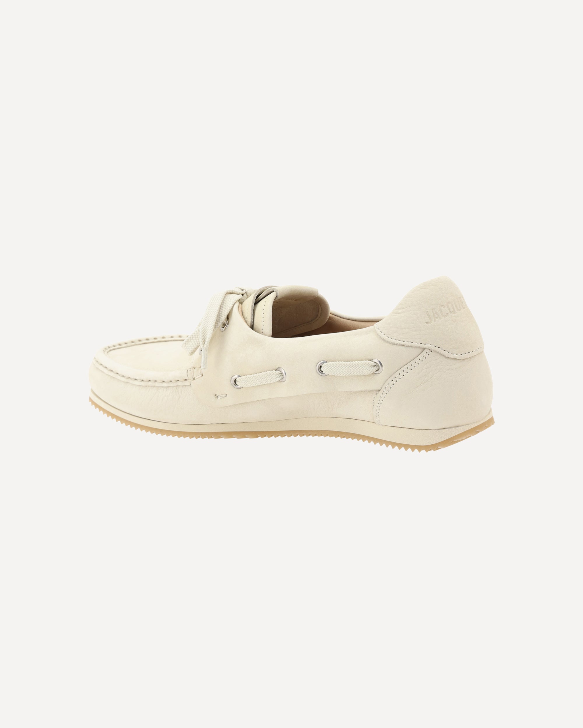 The Les Batto Loafers by Jacquemus are a refined and comfortable interpretation of a timeless style. Featuring a lace-up front closure, they offer an adjustable fit, while the logo leather insole adds a touch of elegance. The flat rubber sole ensures comfort and practicality, while the logo on the heel and rounded toe complete the design. Versatile and sophisticated, they are ideal for a casual-chic look.