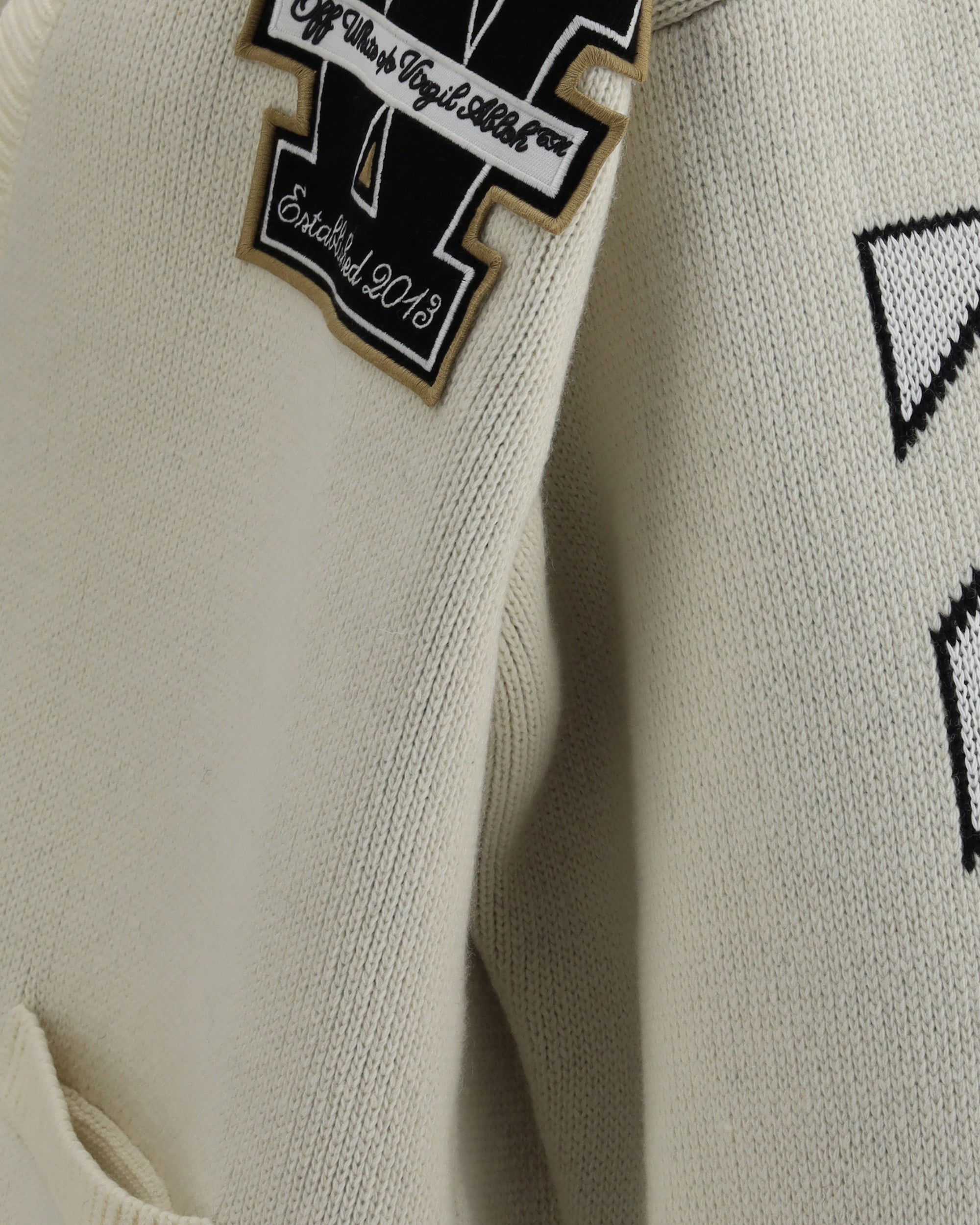 The Moon Vars Knit Cardigan by Off-White reflects the brand’s urban-inspired aesthetic with a wool construction and relaxed fit. Intarsia patterns and embroidered details bring together signature codes with the seasonal moon motif at the back. Featuring a V-neckline, button fastening, dropped shoulders, and extra-long sleeves, it is finished with front welt pockets and ribbed edges — blending ease, craftsmanship, and unmistakable identity.