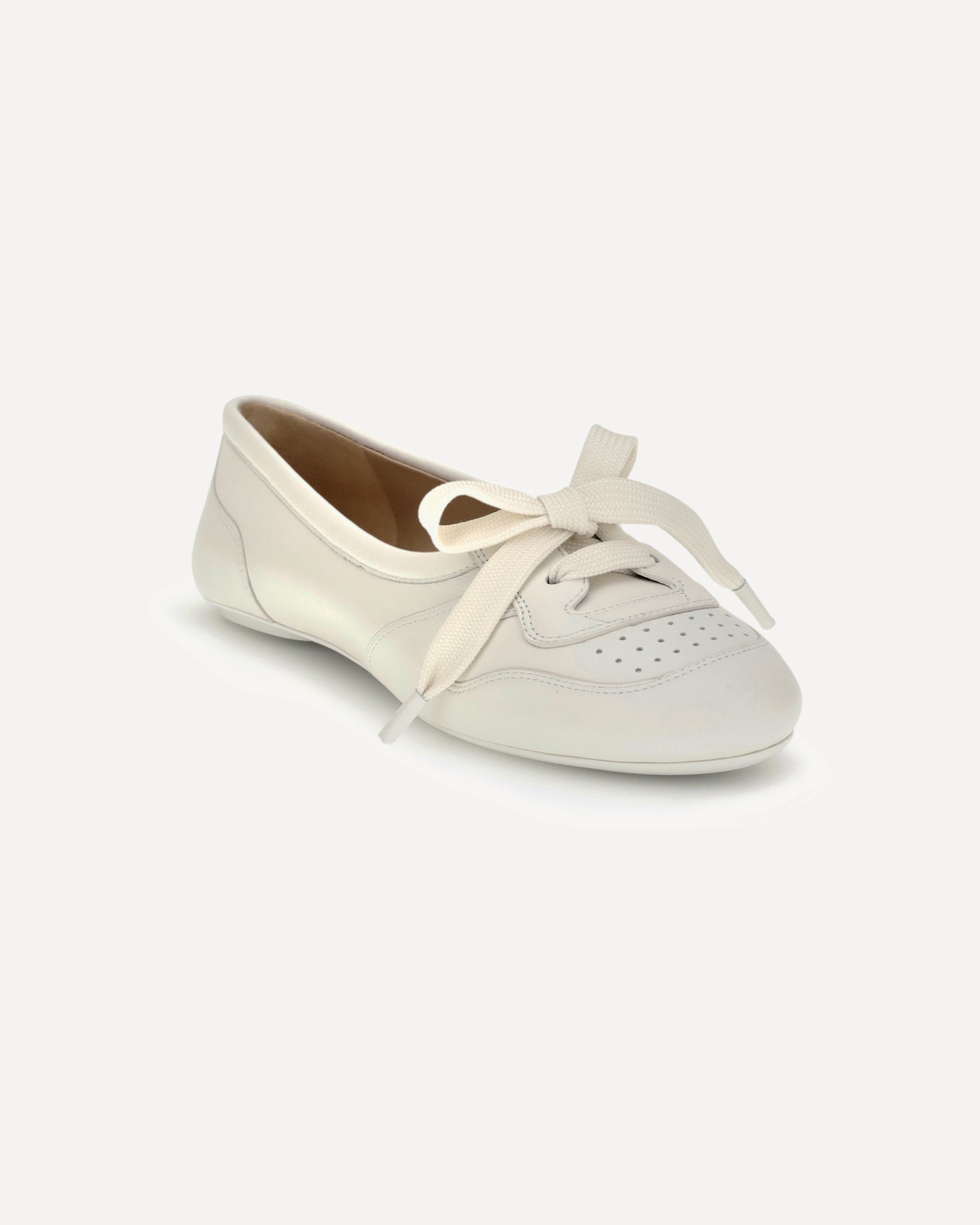 The leather Vault Ballerinas by Gianvito Rossi are a stylish and comfortable shoe with a rounded toe and tone-on-tone lacing. The soft rubber sole ensures comfort, while the minimalist and refined design makes it perfect for any occasion, from day to evening. A modern and sophisticated interpretation of the ballerina sneaker.