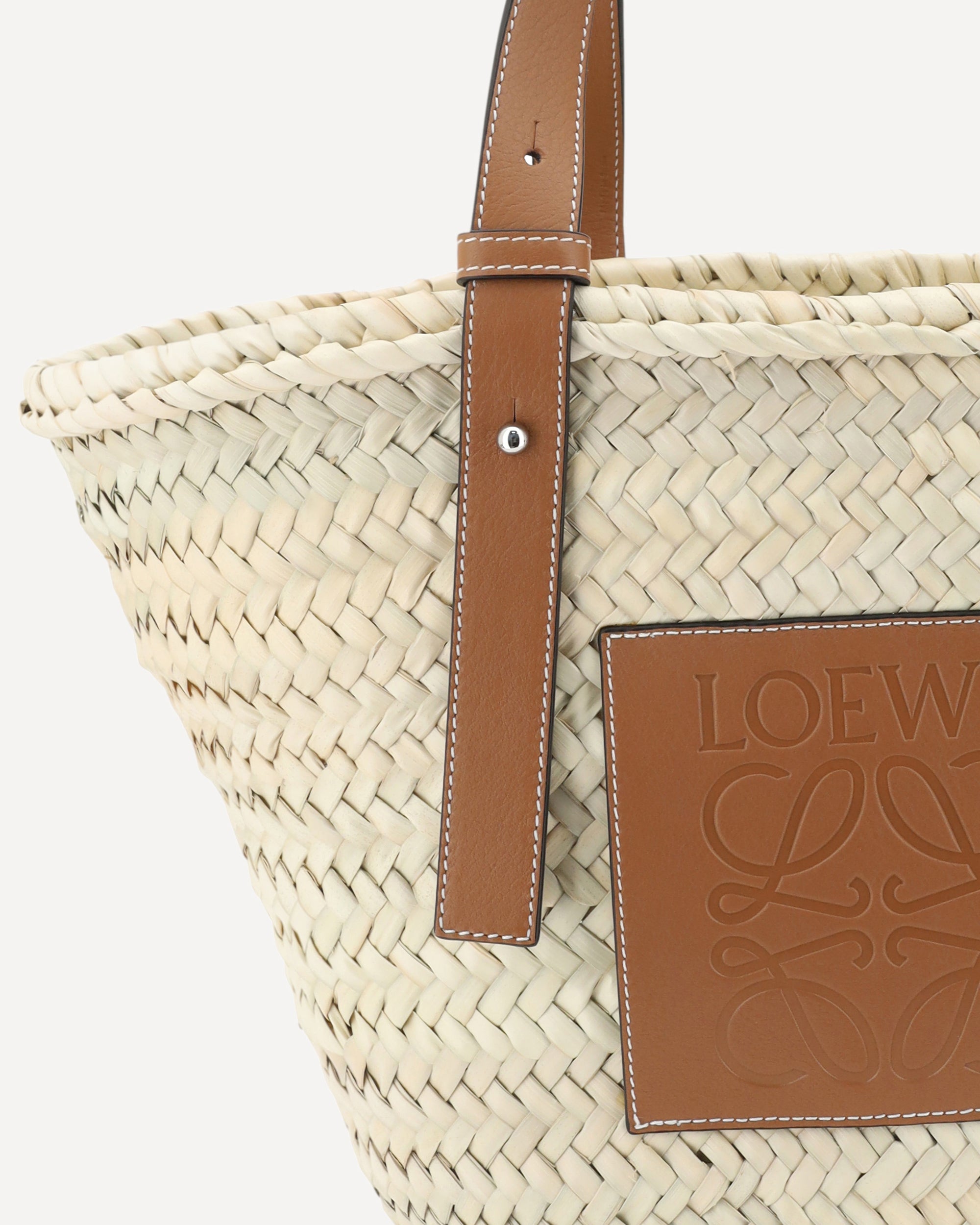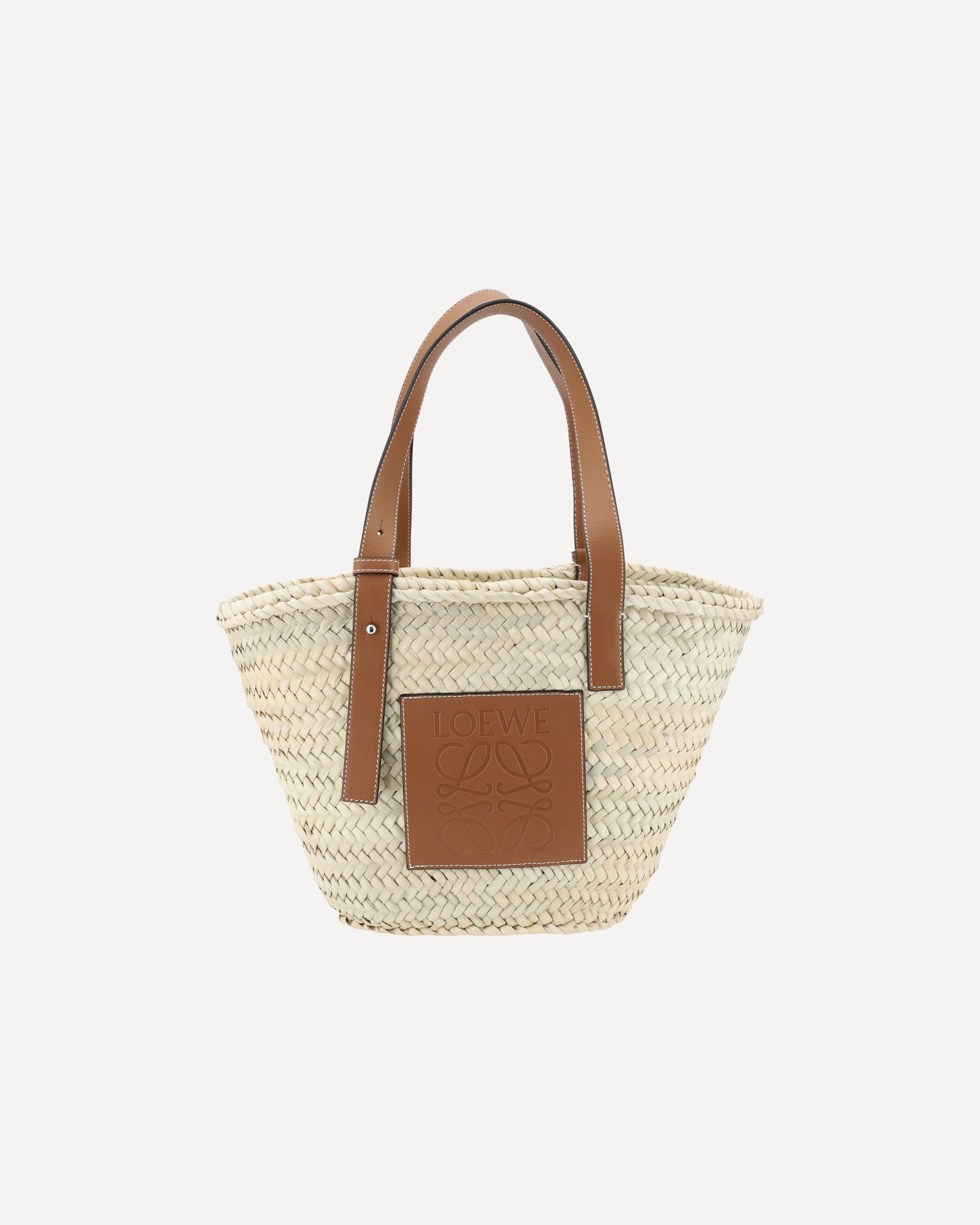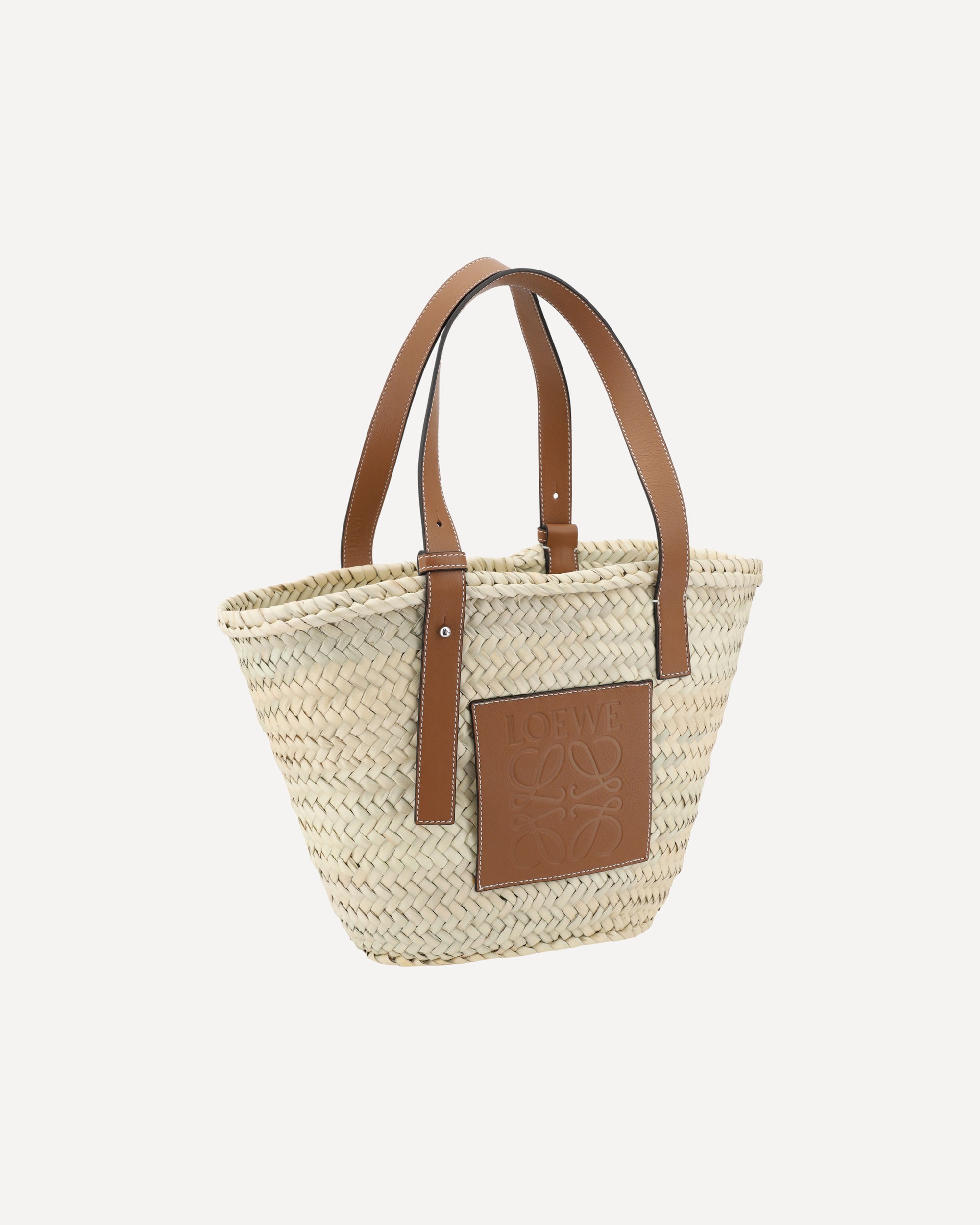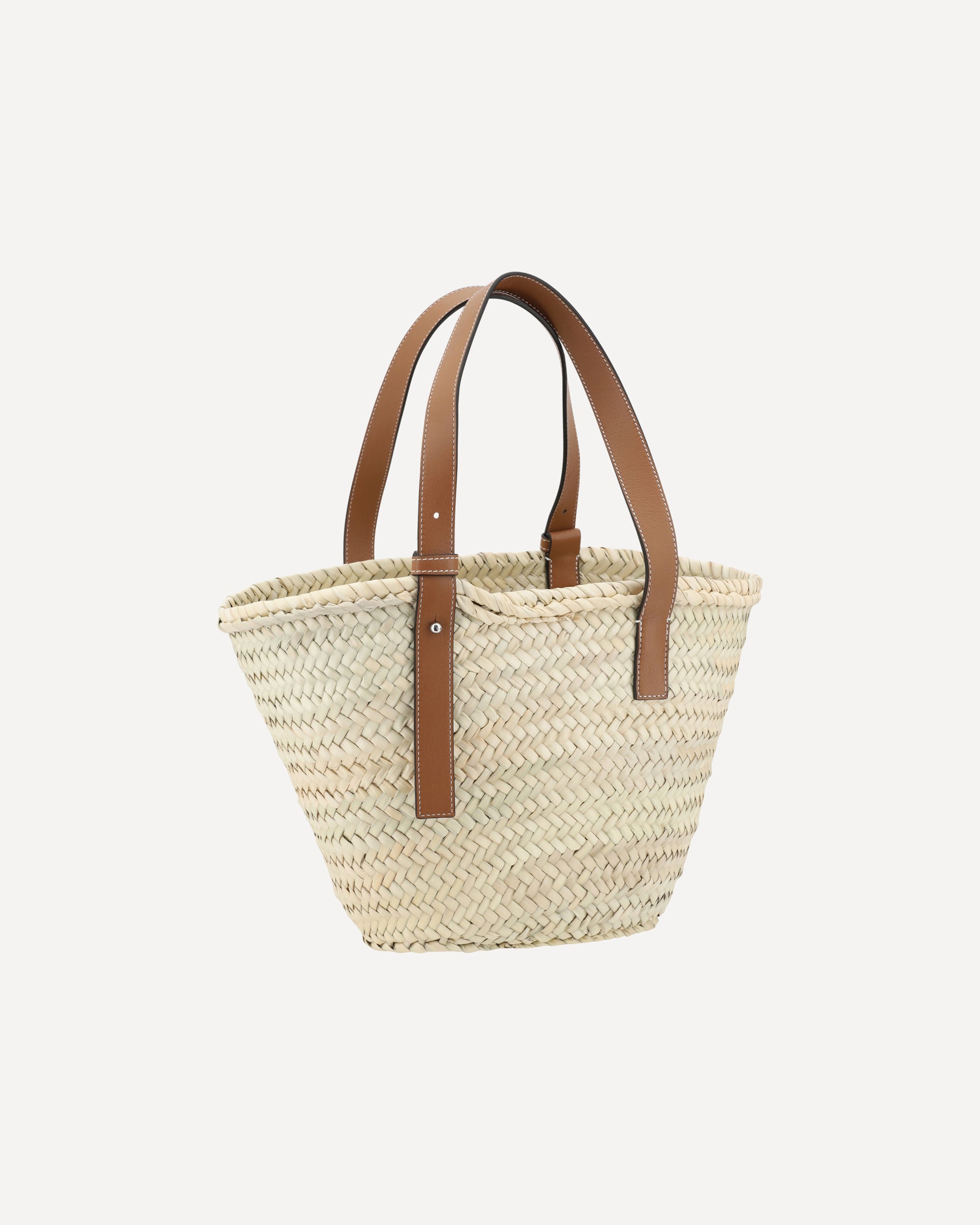 The Loewe Basket Handbag in Natural Straw is a chic and sophisticated accessory, perfect for adding a touch of summery elegance to your look. The open compartment offers ample capacity, making it ideal for everyday use, while the two brown leather handles add a refined and practical contrast. The leather patch with engraved logo on the front adds a touch of discreet luxury and immediate recognition of the brand. This natural straw model is perfect for both informal occasions and a more sophisticated look, bringing with it the craftsmanship and unique style of Loewe.