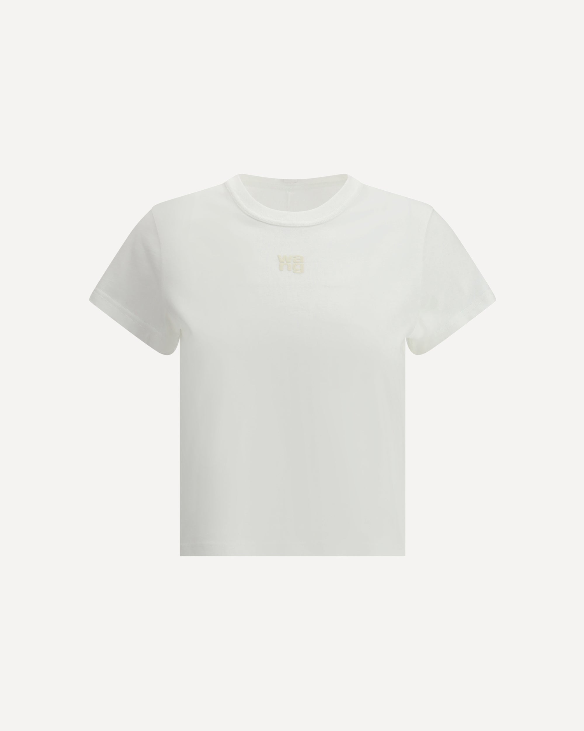 Alexander Wang's cotton T-Shirt features a ribbed crew neck that adds a refined detail to the design. The iconic tone-on-tone embossed logo on the front lends a distinctive, modern touch. The slim fit enhances the silhouette, making this garment stylish and versatile. A must-have that combines comfort and contemporary style.