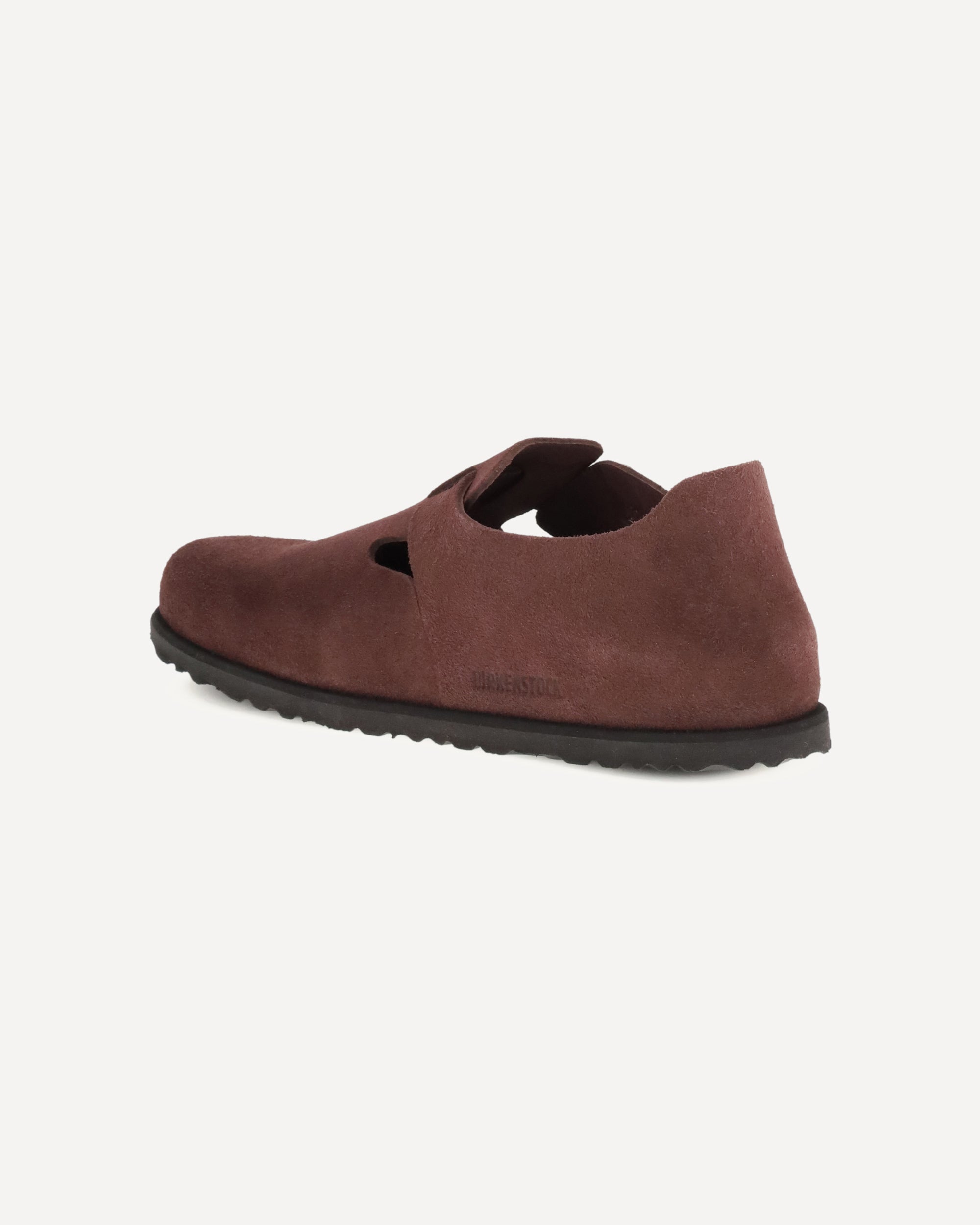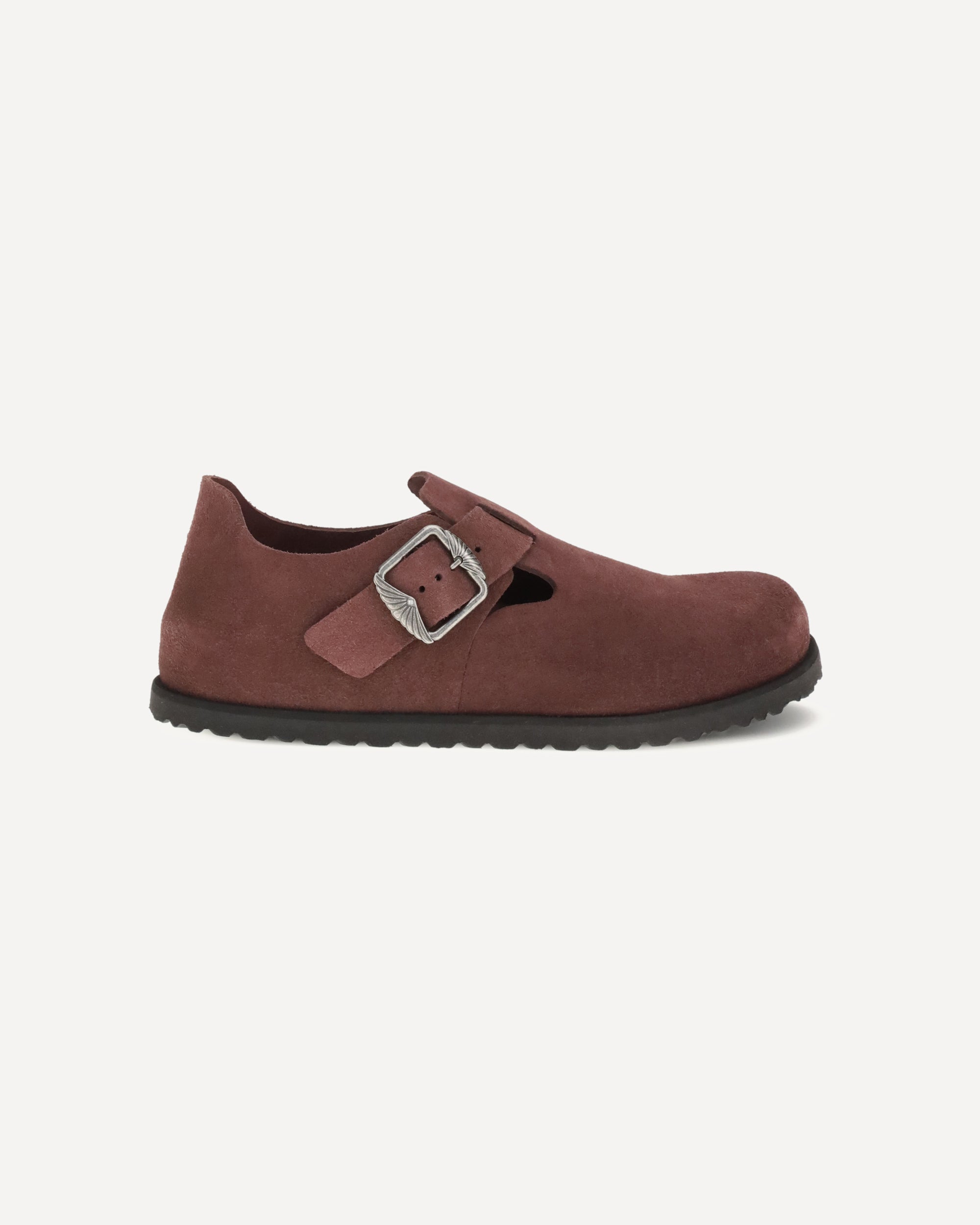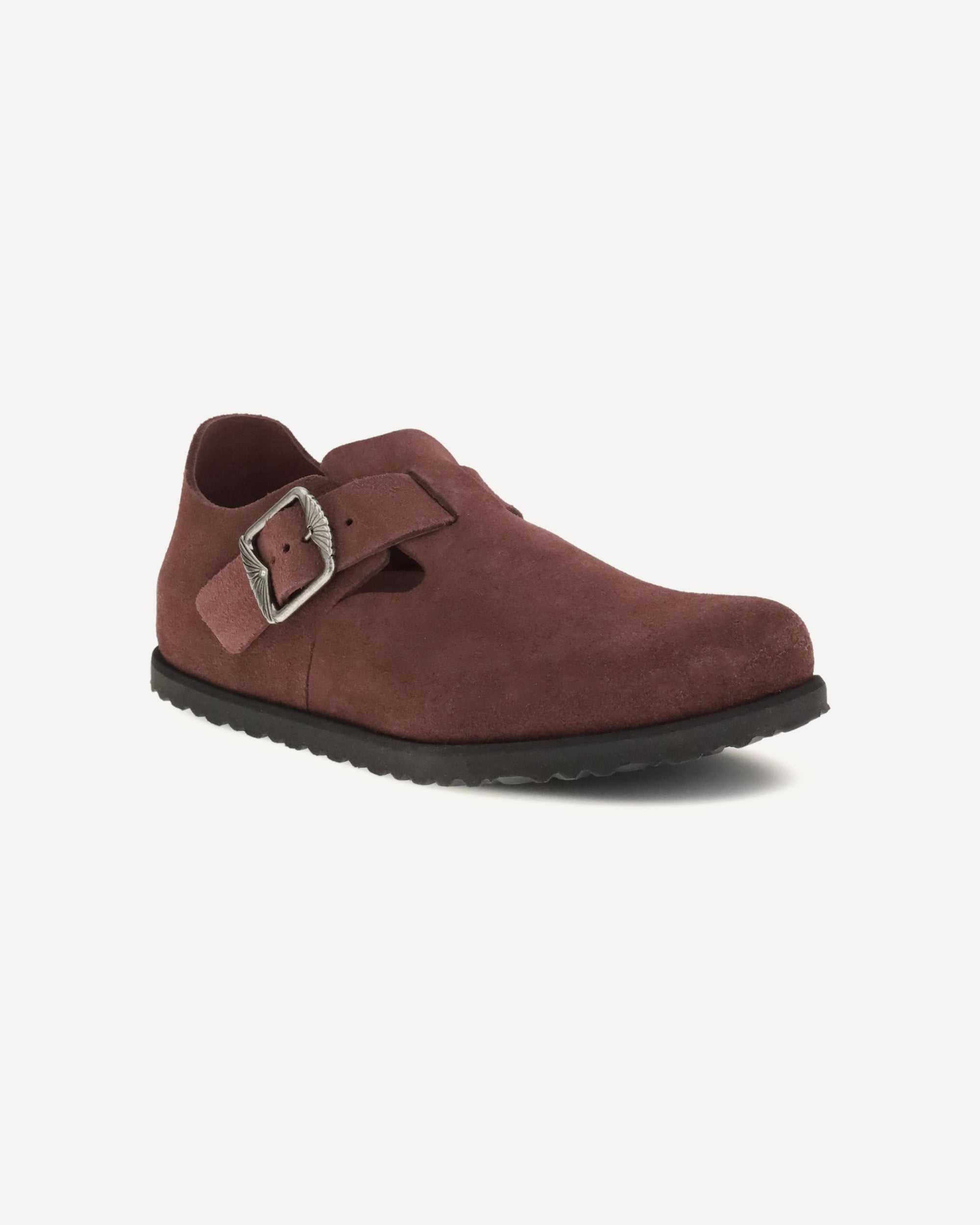 The London suede Sneakers by Birkenstock 1774 combine craftsmanship and refined design in a retro-inspired silhouette. The Art Deco-style buckle adds a touch of sophistication to the model's rustic character, recalling the elegance and optimism of a bygone era. The raised structure at the heel creates a clean, seamless silhouette, while the incredibly soft suede wraps the foot gently, ensuring comfort and style for any occasion.