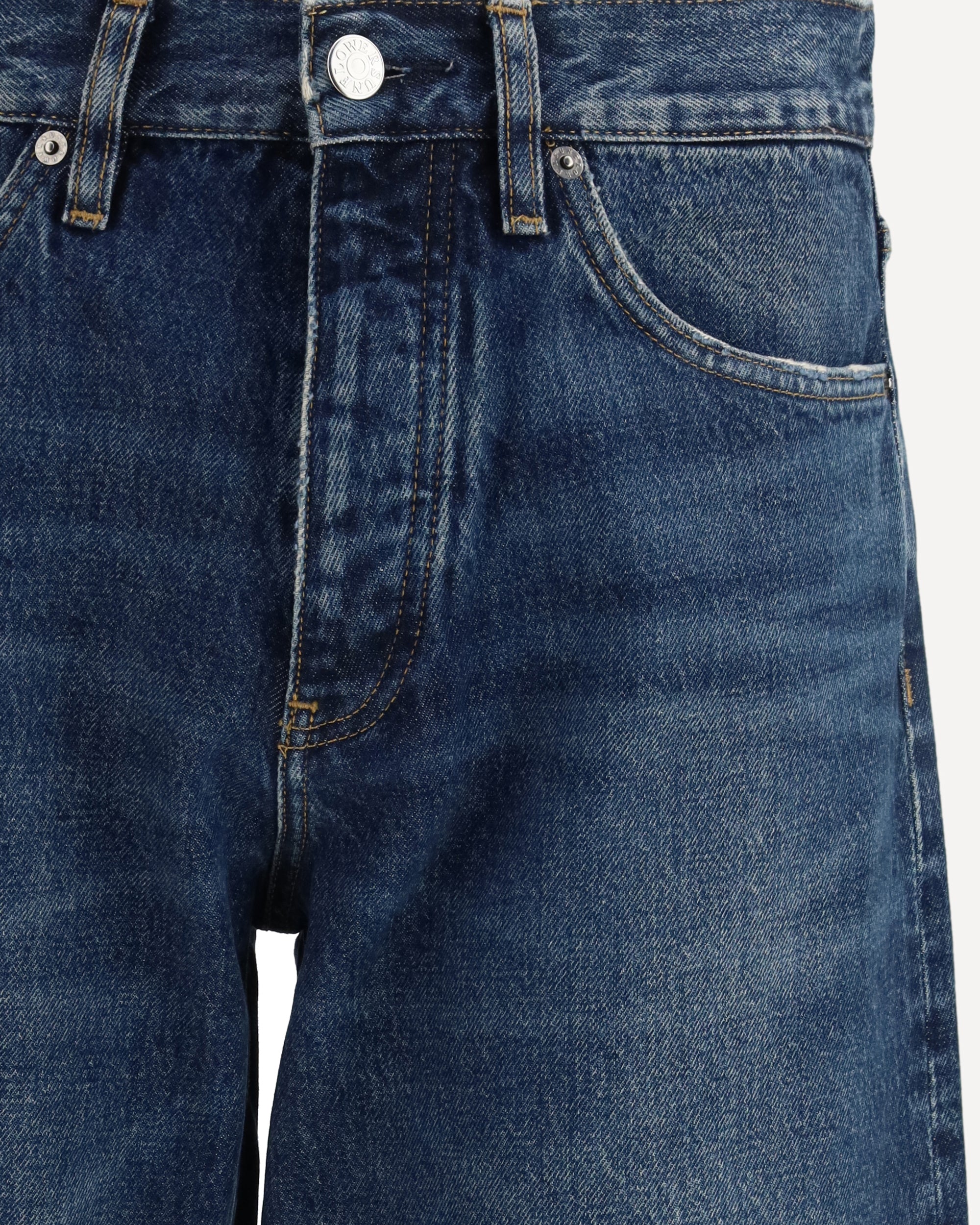 The loose fit Jeans by Sunflower are crafted from 14 oz organic cotton denim, combining durability with a naturally comfortable feel. The vintage wash lends a deep dark-blue tone with an authentic character, while the signature Sunflower metal trim completes the design. Defined by a relaxed loose fit, they embody a modern, understated essential with timeless appeal.