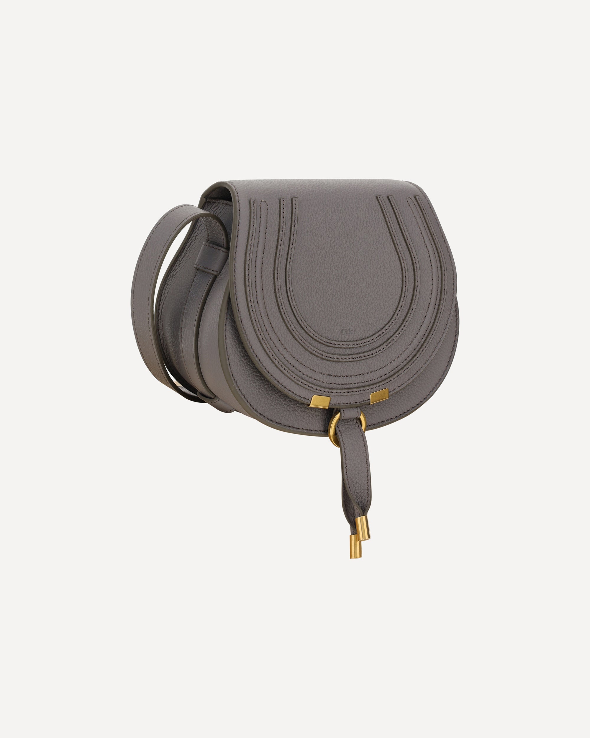 Calfskin Marcie Shoulder Bag by Chloé, iconic brand monogram press-stamped on front, adjustable flat shoulder strap, front flap closure with magnetic button, iconic leather tassel with antiqued brass charm embellishes closure, fabric-lined interior, interior compartment with welt pocket.