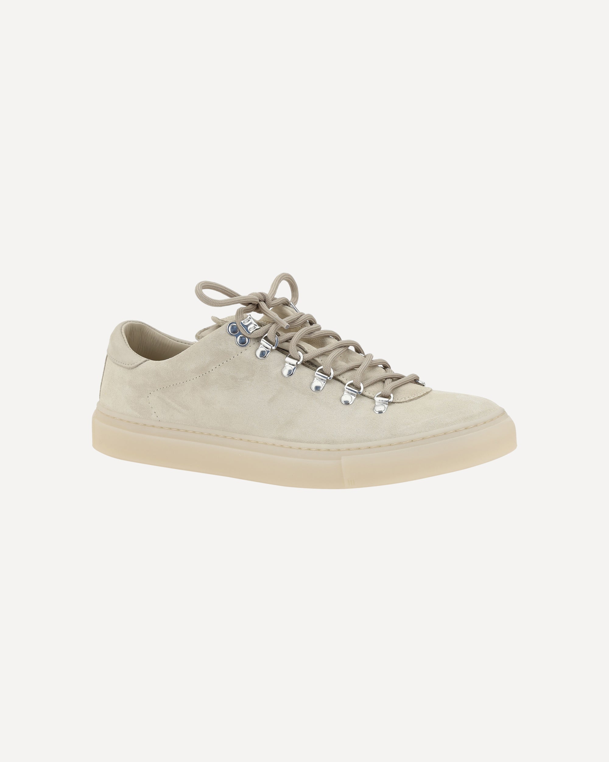 The Marostica Low suede Sneakers from Diemme feature a round toe for comfort and a sleek design. The front lace-up closure offers a secure and adjustable fit, while the flat sole provides stability and a modern look. The branded insole adds a touch of authenticity, complementing the minimalist and sophisticated design of these sneakers.