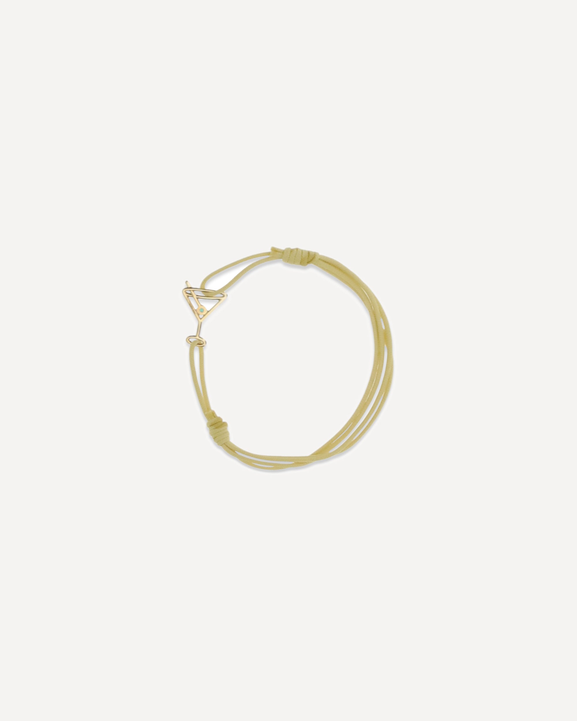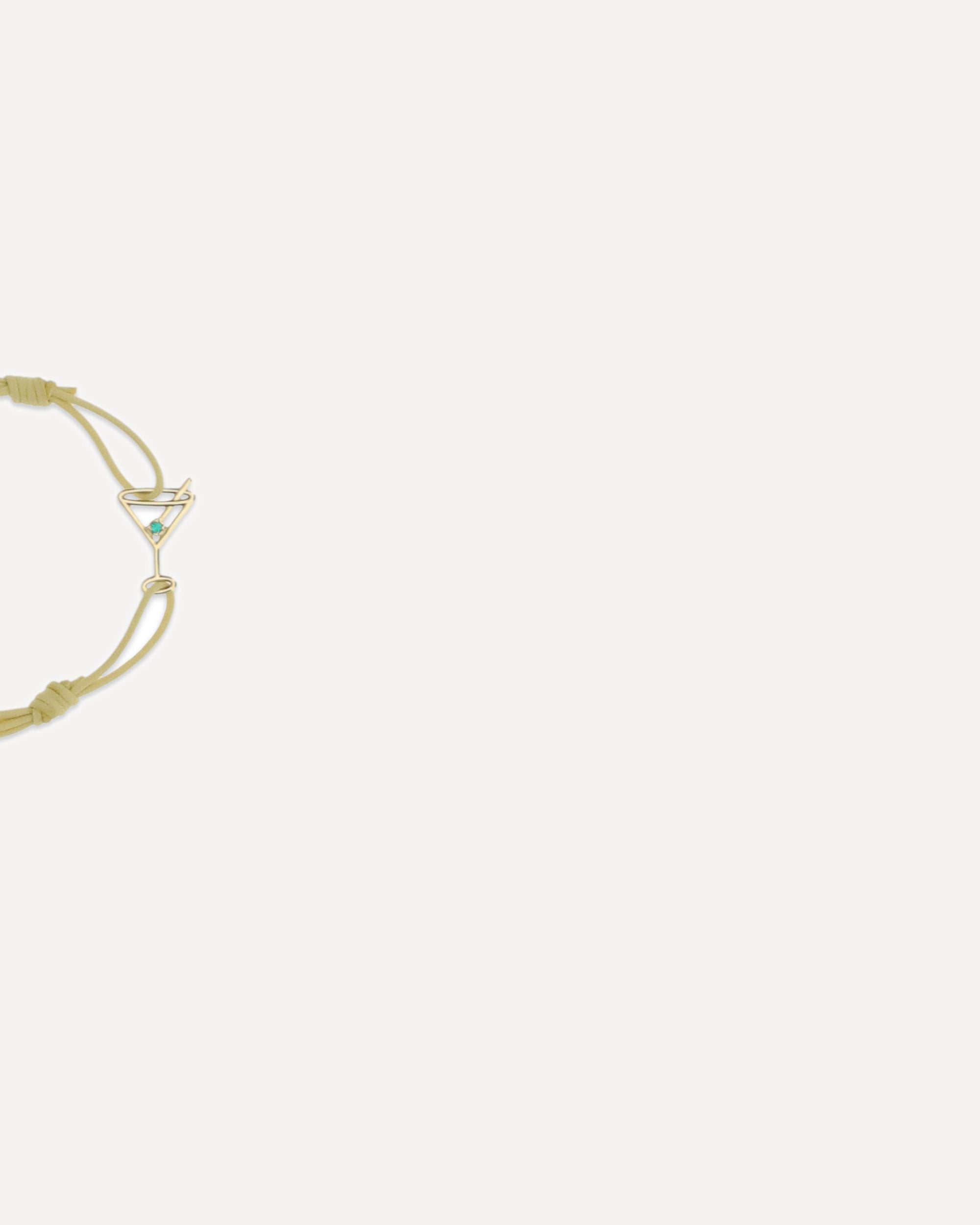 Esmeralda Martini Bracelet by Aliita is a lively, lightweight accessory perfect for adding a touch of color and irony to the wrist. Made of 100% cotton adjustable cord (or an eco version made of recycled polyester), it is embellished with a small 9-karat yellow gold charm depicting a Martini cocktail, a symbol of lightheartedness and style. A fresh and playful piece of jewelry, ideal for everyday wear, even in combination with other bracelets for a personalized look.
