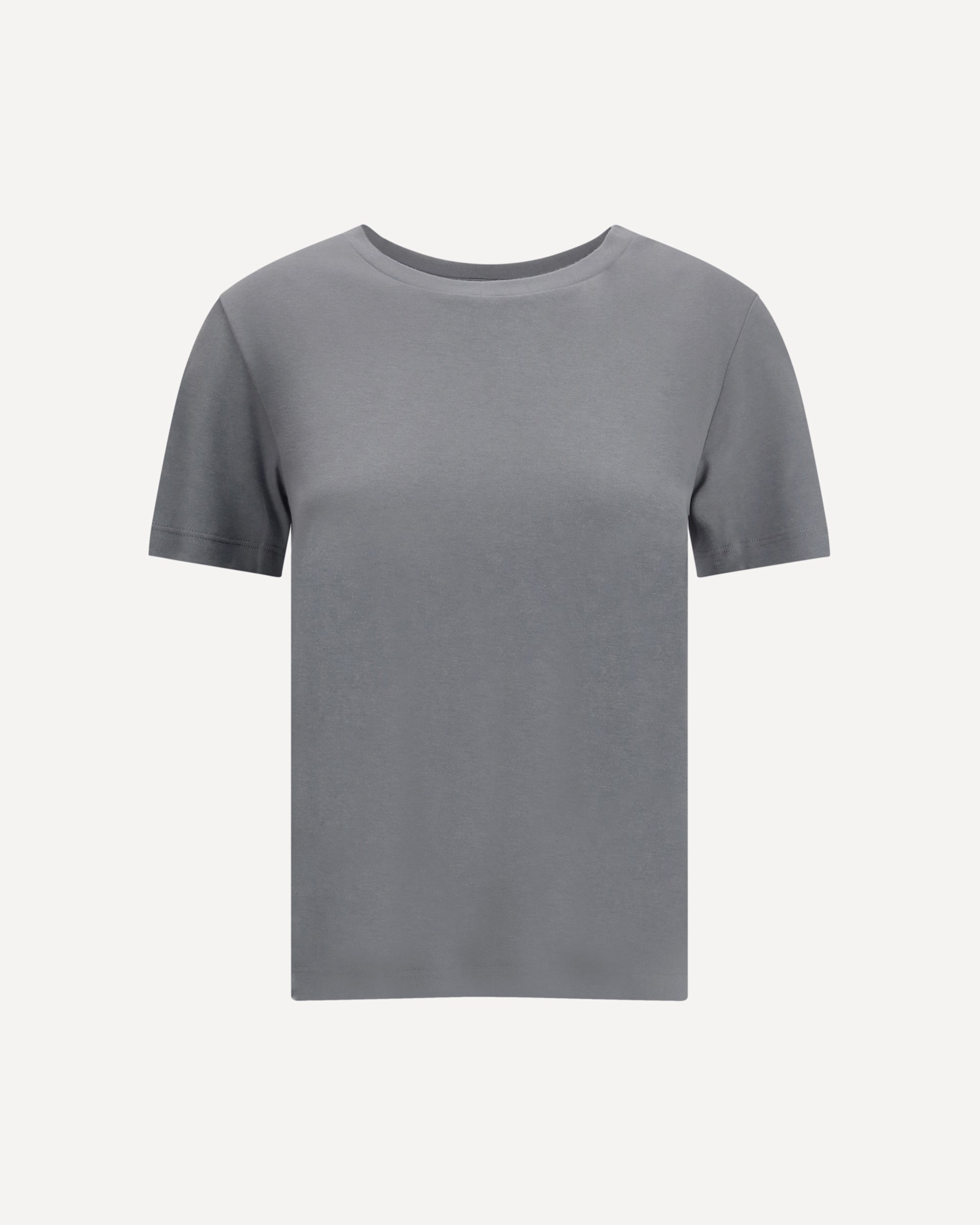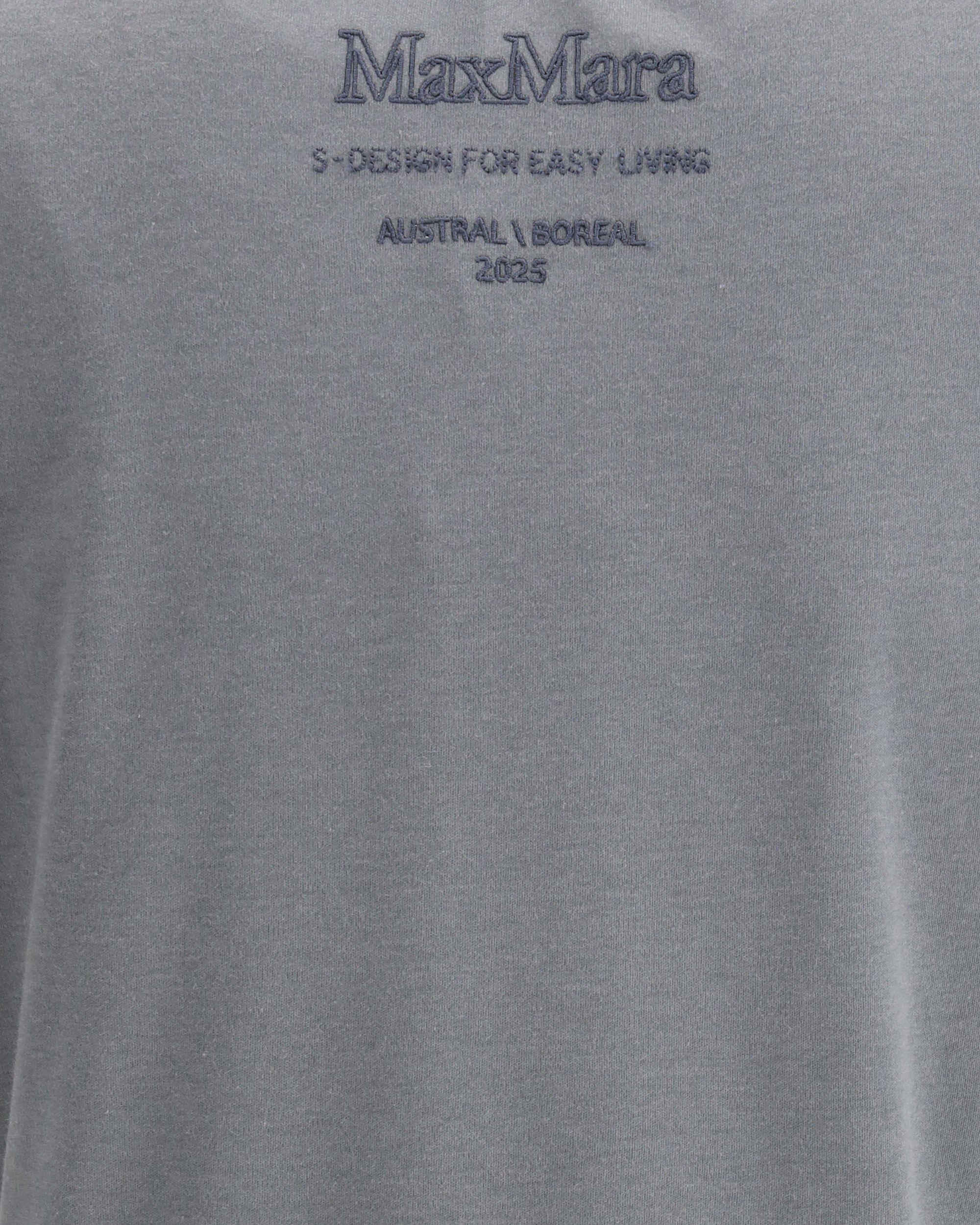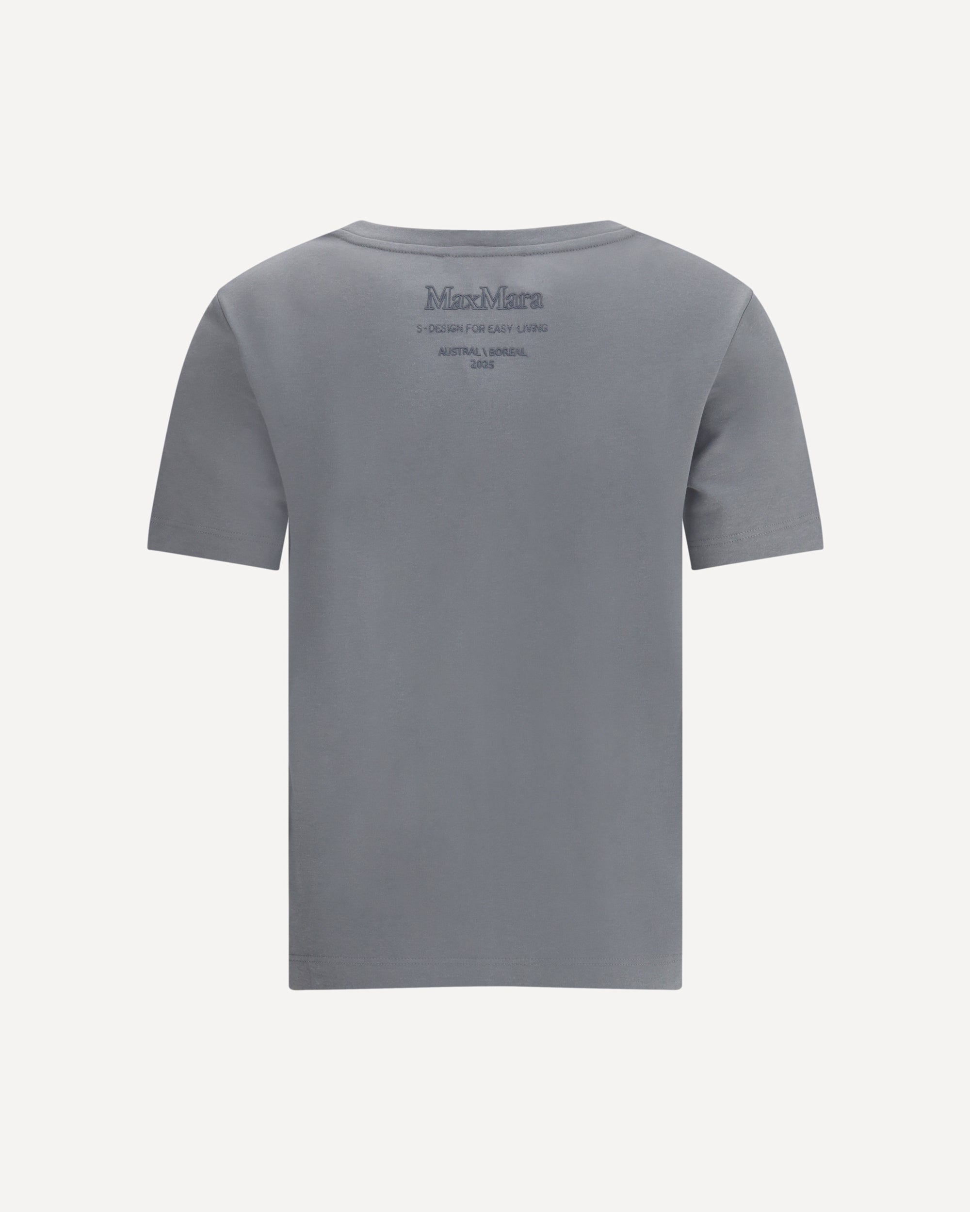 The Maya T-shirt by Max Mara Studio crafted from white cotton and modal jersey. Featuring a ribbed crewneck, short sleeves, and a straight hem, the design is enriched on the back with a subtle tone-on-tone embroidered logo lettering. With its regular fit, this piece is a timeless and versatile essential for everyday wear.