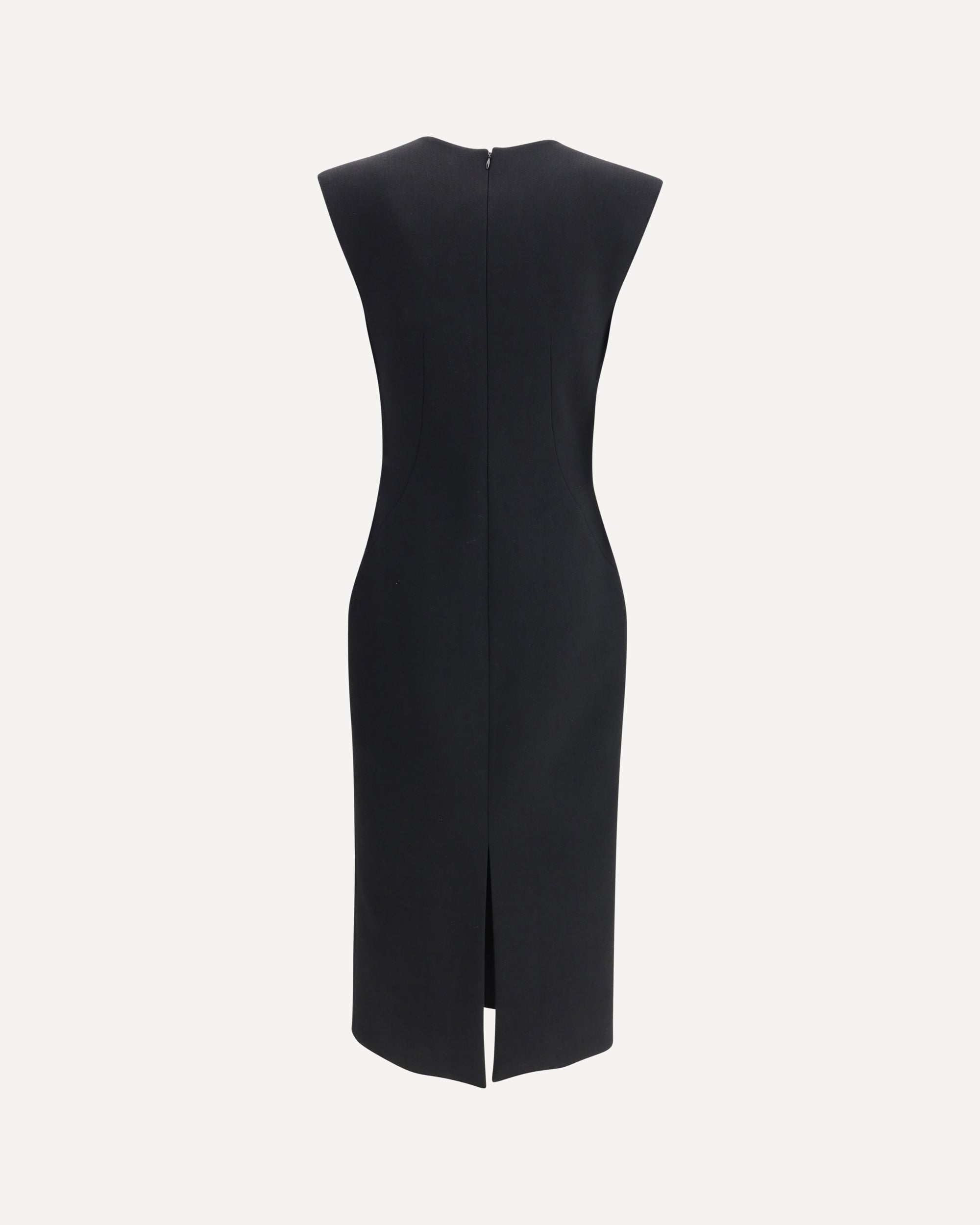 The V-Neck Pencil Dress by Givenchy embodies a sleek, sculptural femininity. Crafted from wool crepe, this sleeveless midi design features a deep V neckline and a close-fitting silhouette that accentuates the body’s contours. Structured detailing enhances its tailored shape, while front and back slits bring subtle fluidity and allure. Finished with raw edges and an invisible back zip closure, this dress captures Givenchy’s refined minimalist elegance.