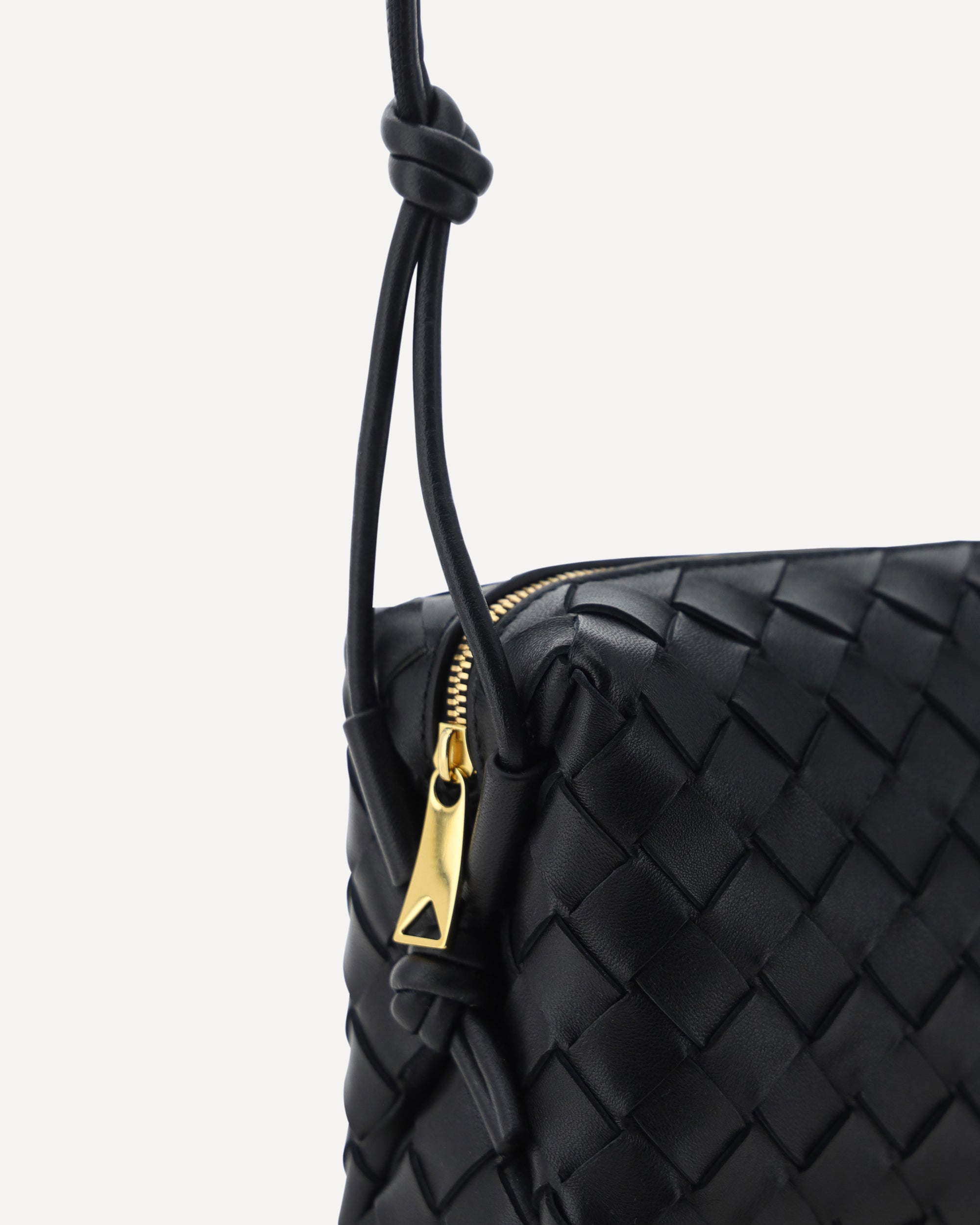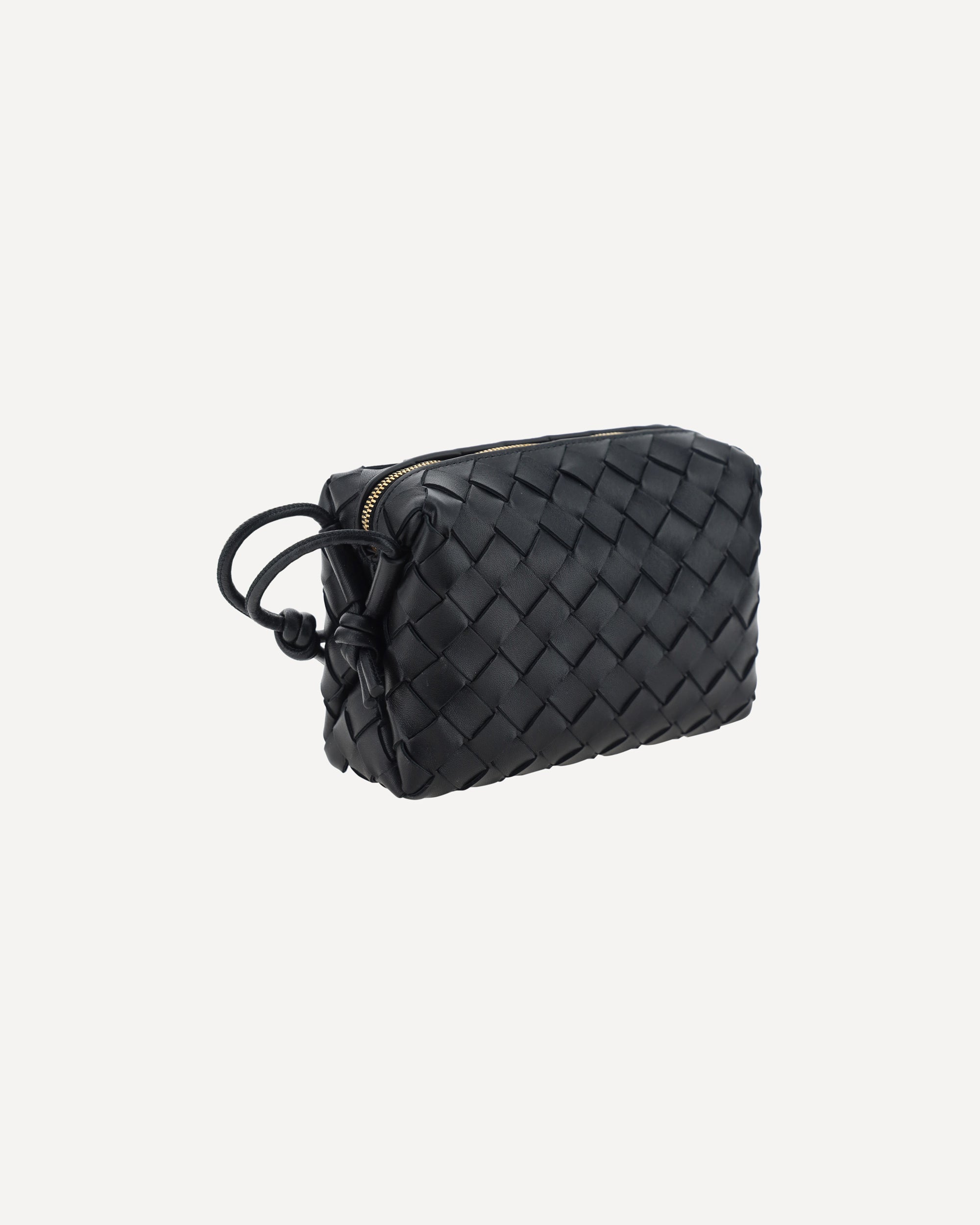 The mini lambskin leather Shoulder Bag by Bottega Veneta embodies understated and instantly recognizable elegance. The supple leather highlights the brand’s iconic woven design, featured all over as a defining element. A top zip closure ensures practicality, while the matching leather shoulder strap, finished with a refined knotted detail at the base, adds a distinctive touch to this compact and sophisticated accessory, perfect from day to night.