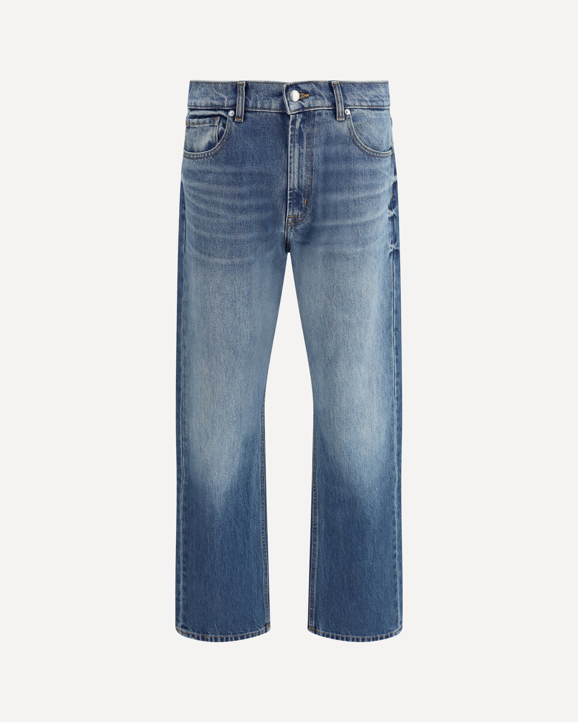 The Bakersfield Modern straight Jeans by 7For All Mankind are designed for a relaxed yet polished look. Featuring a straight leg and a slightly longer mid-rise waist, they are designed to be worn lower on the hips. Belt loops at the waist complete the design for a versatile, modern garment with a comfortable fit.