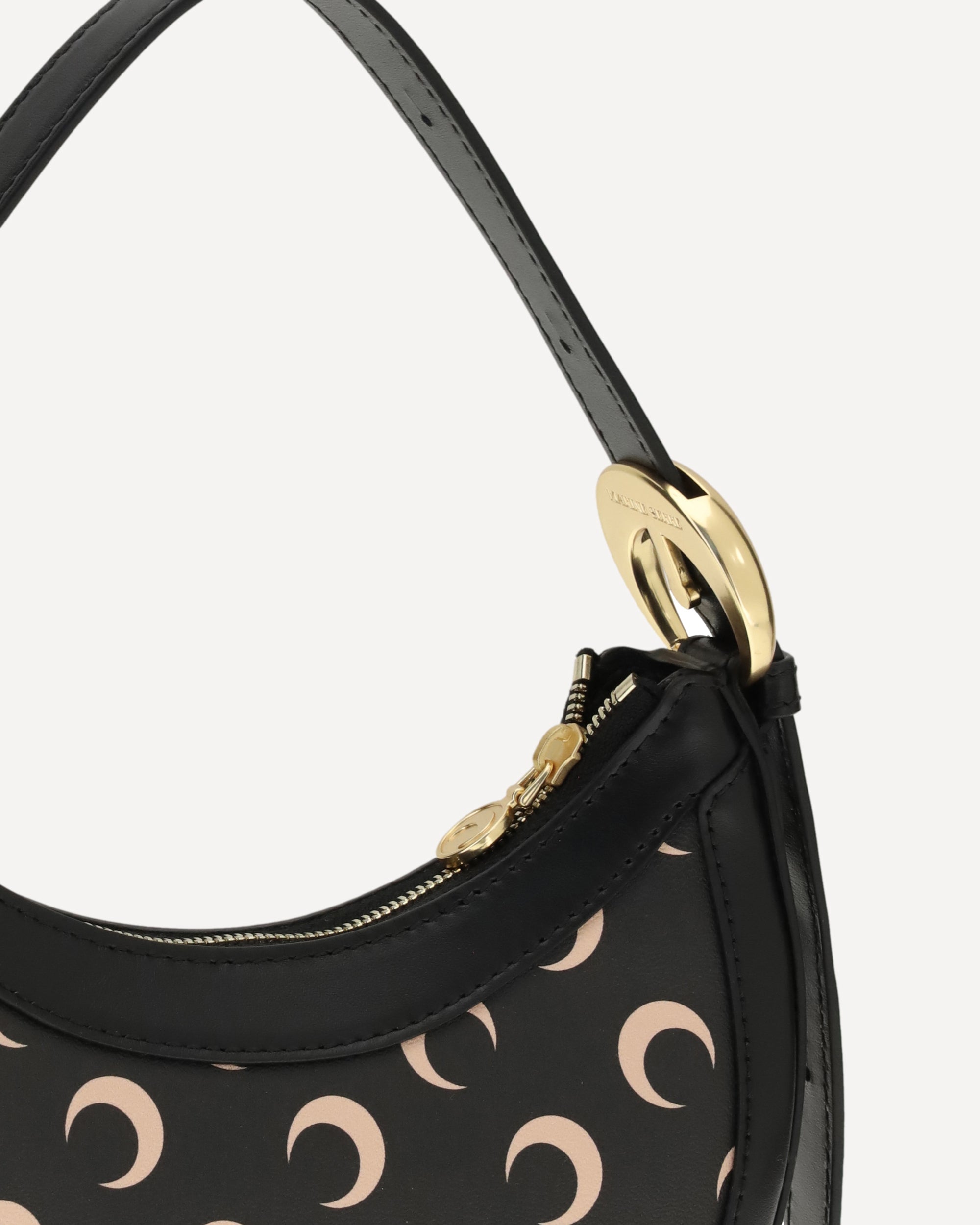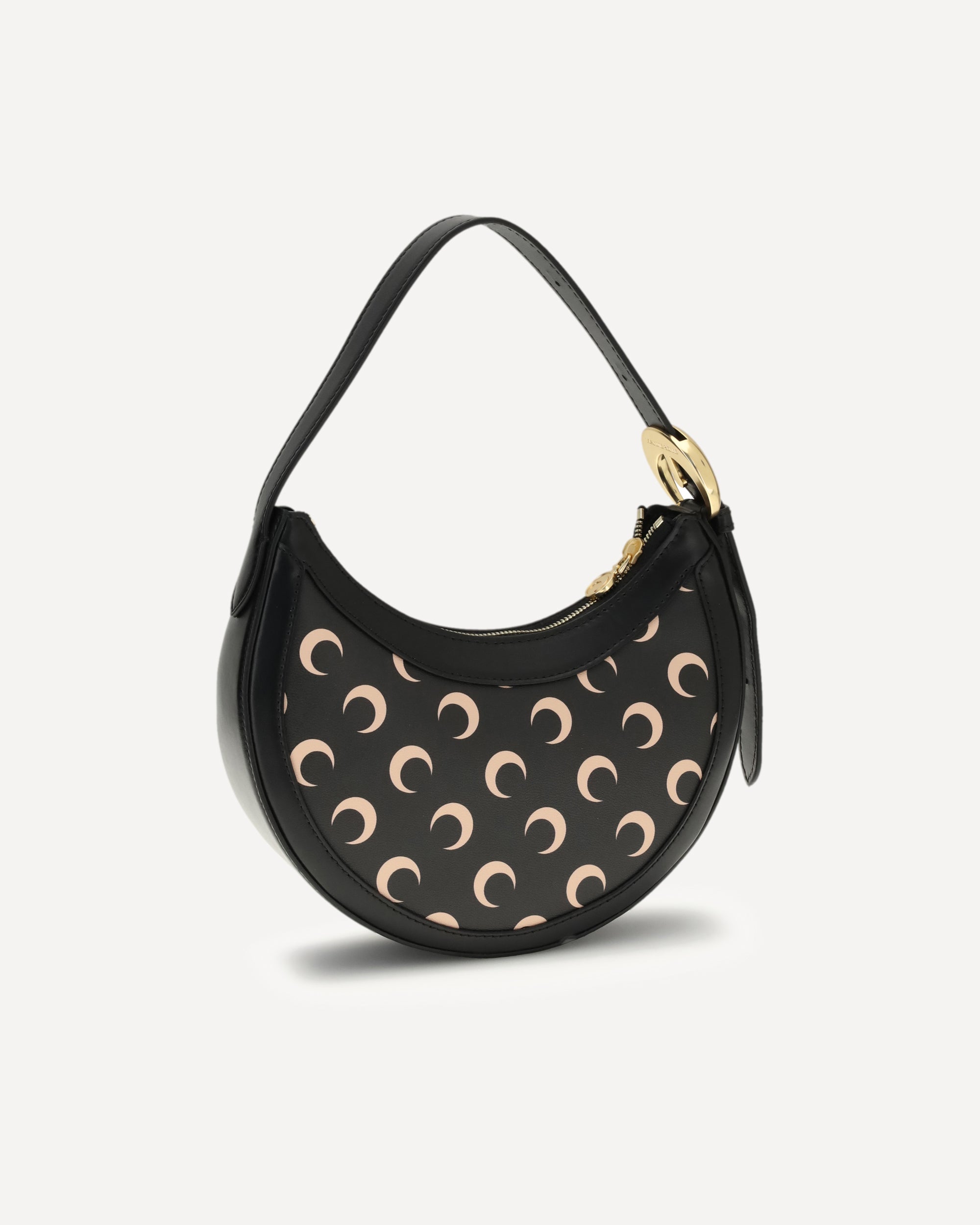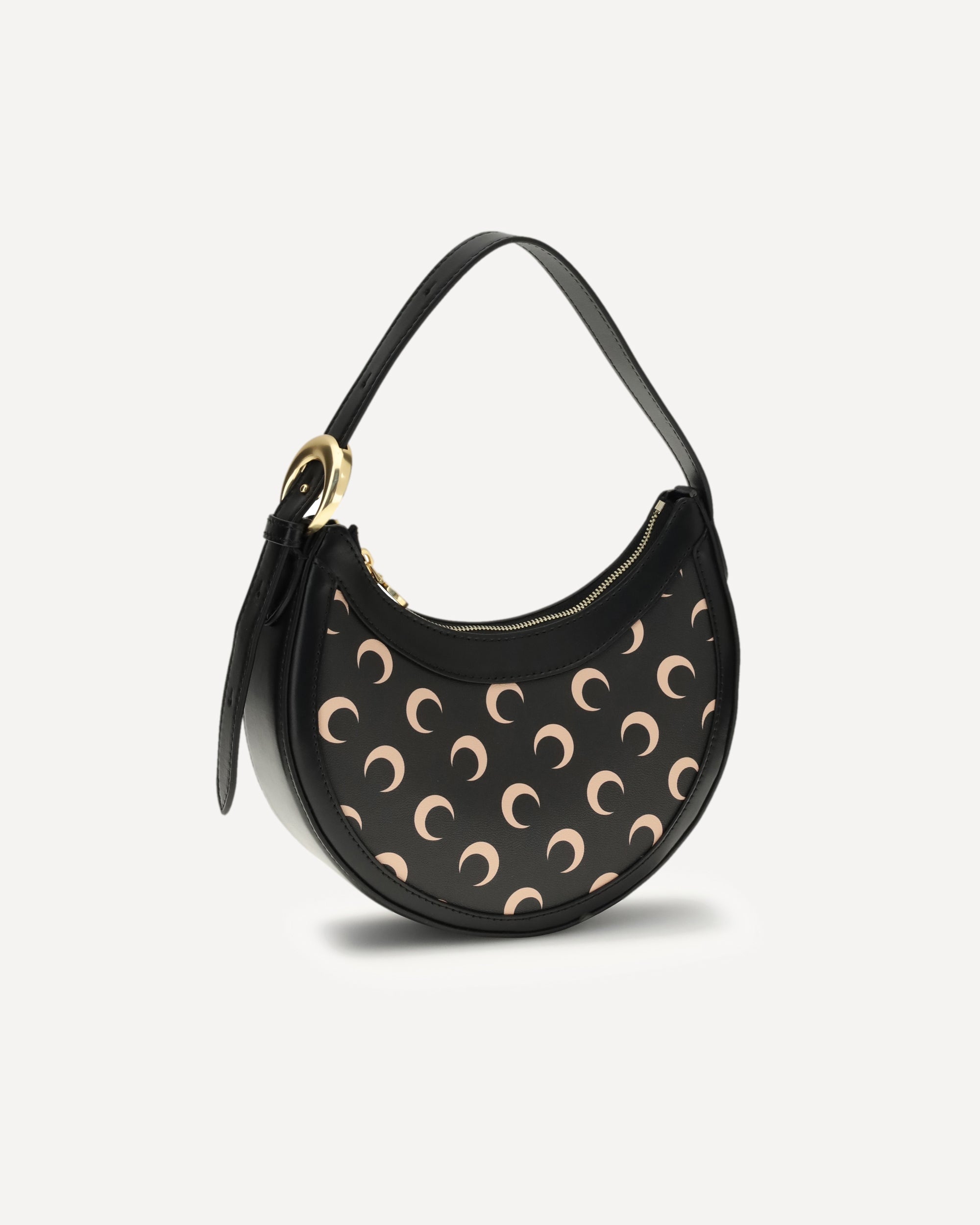 The Moon mini Shoulder Bag by Marine Serre combines compact design and distinctive details. Featuring a zipper closure, it has a jacquard lining with a moon motif and a leather patch with Marine Serre logo, giving the model a touch of contemporary elegance.