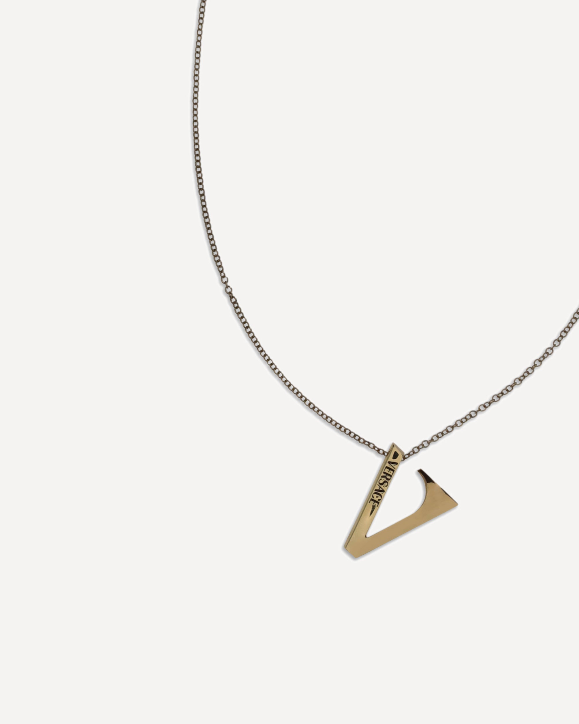Versace's V chain Necklace is enhanced by the iconic V-shaped pendant with an engraved enamel Versace logo. Made from hypoallergenic materials and free of lead and nickel, it ensures comfort and safety. It features a lobster clasp for convenient and safe use.