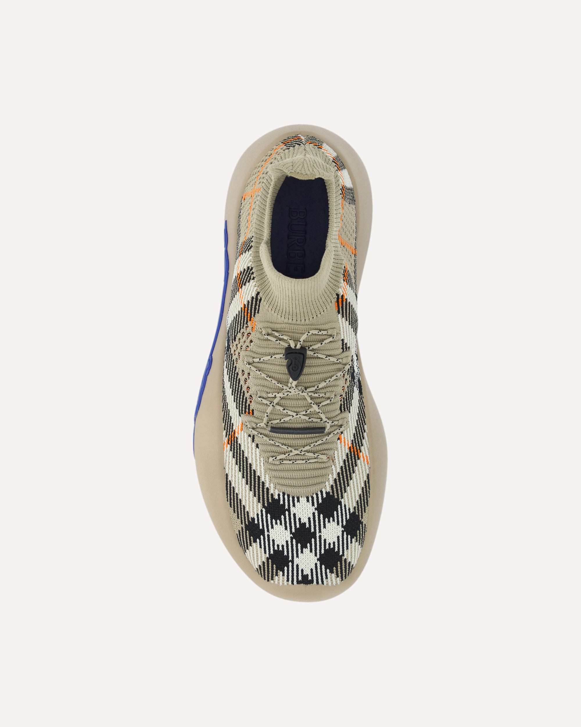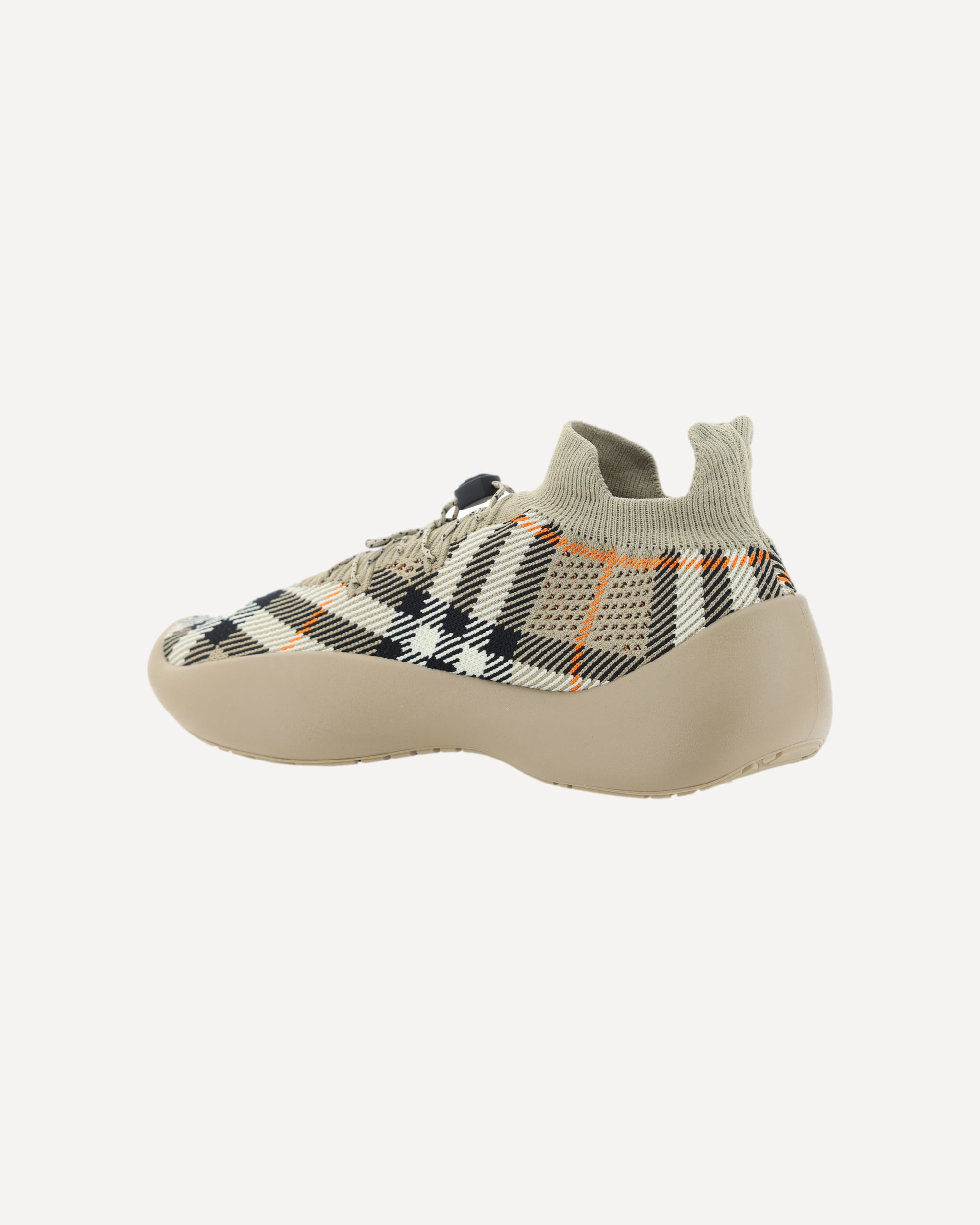 The Neptune Sneakers by Burberry combine contemporary aesthetics with the brand's iconic references. The front drawstring closure ensures a practical and modern fit, while the platform sole is enhanced by the distinctive contrasting Equestrian Knight detail. The iconic all-over repeated Archivio Check pattern completes the design, making the model instantly recognizable.