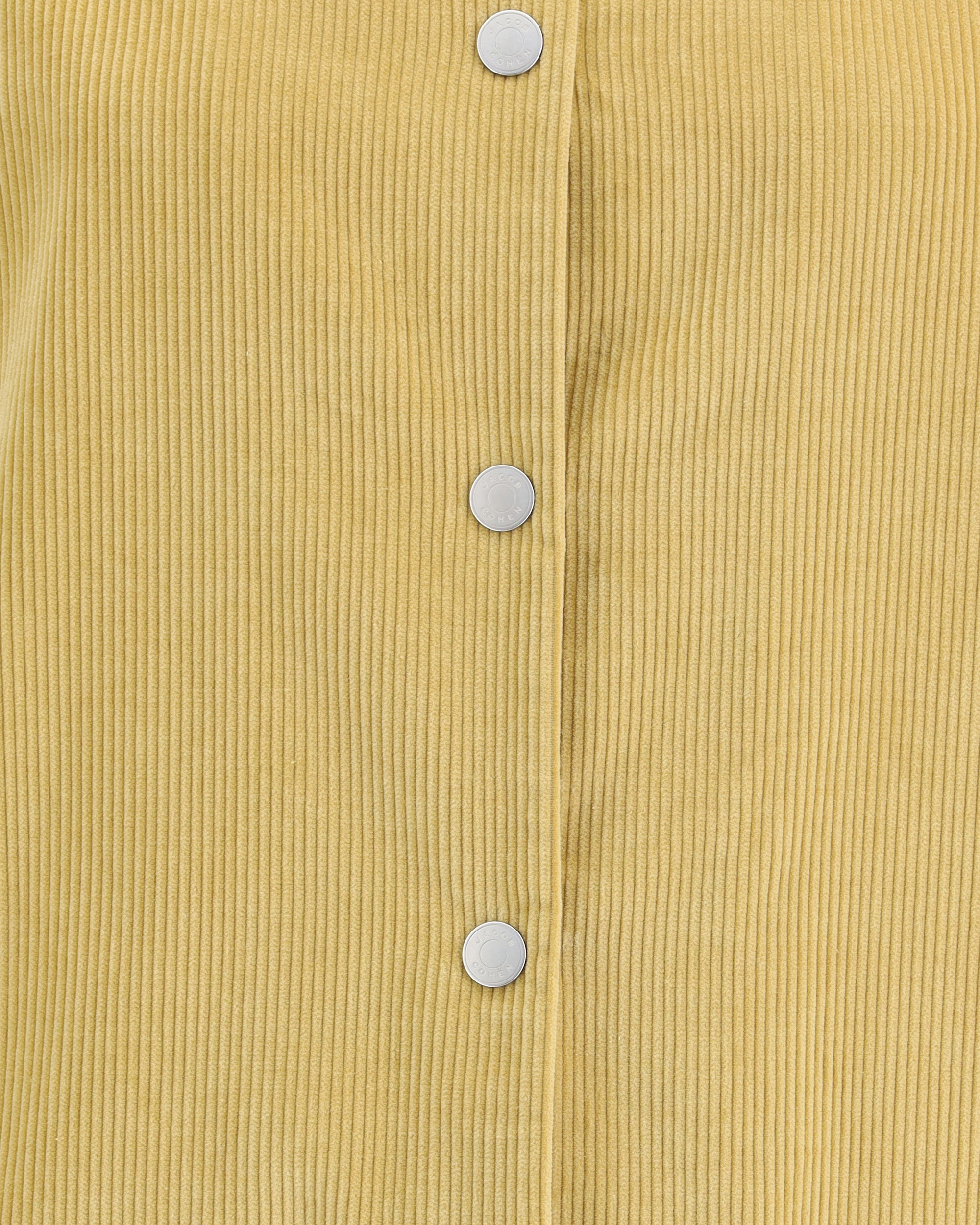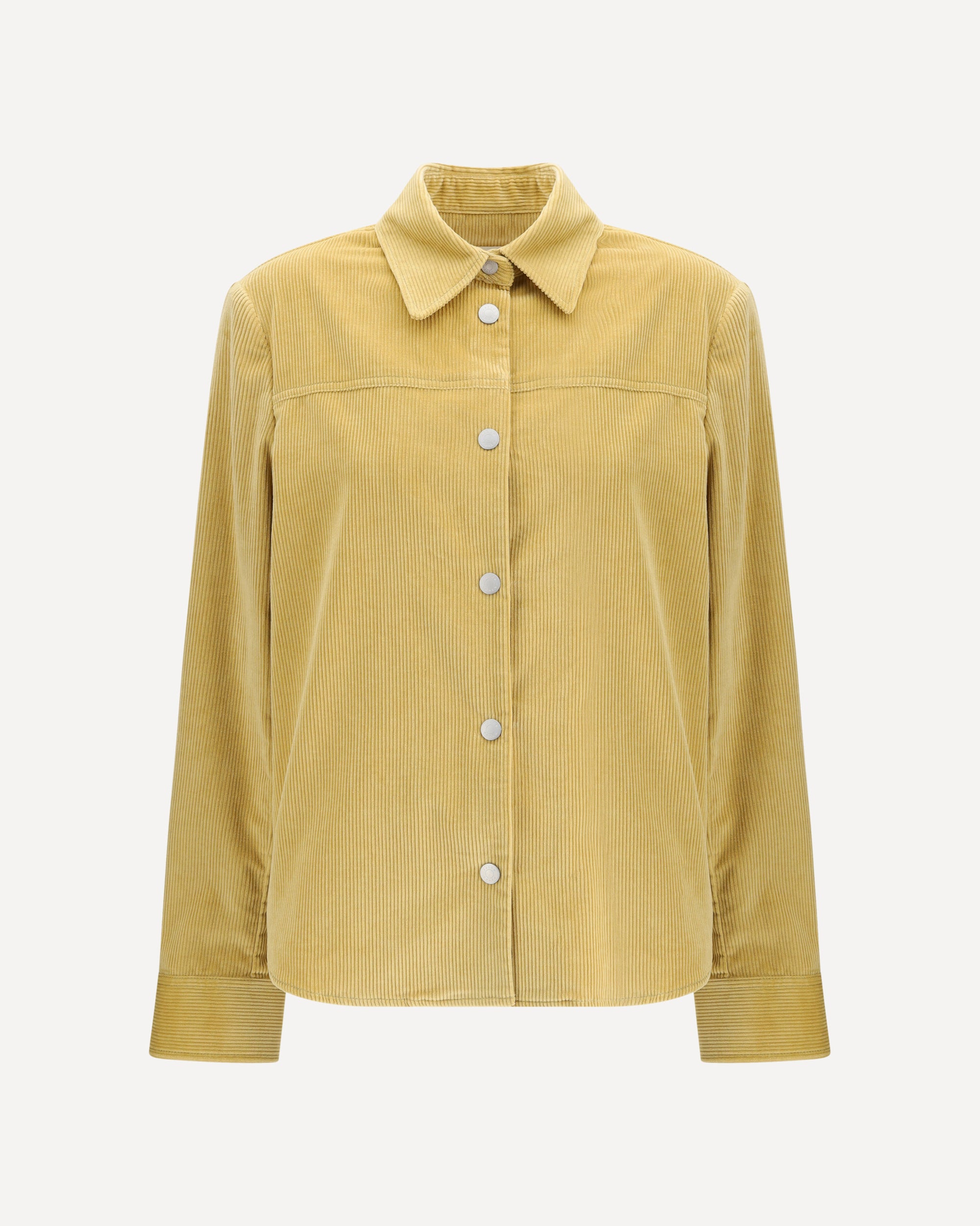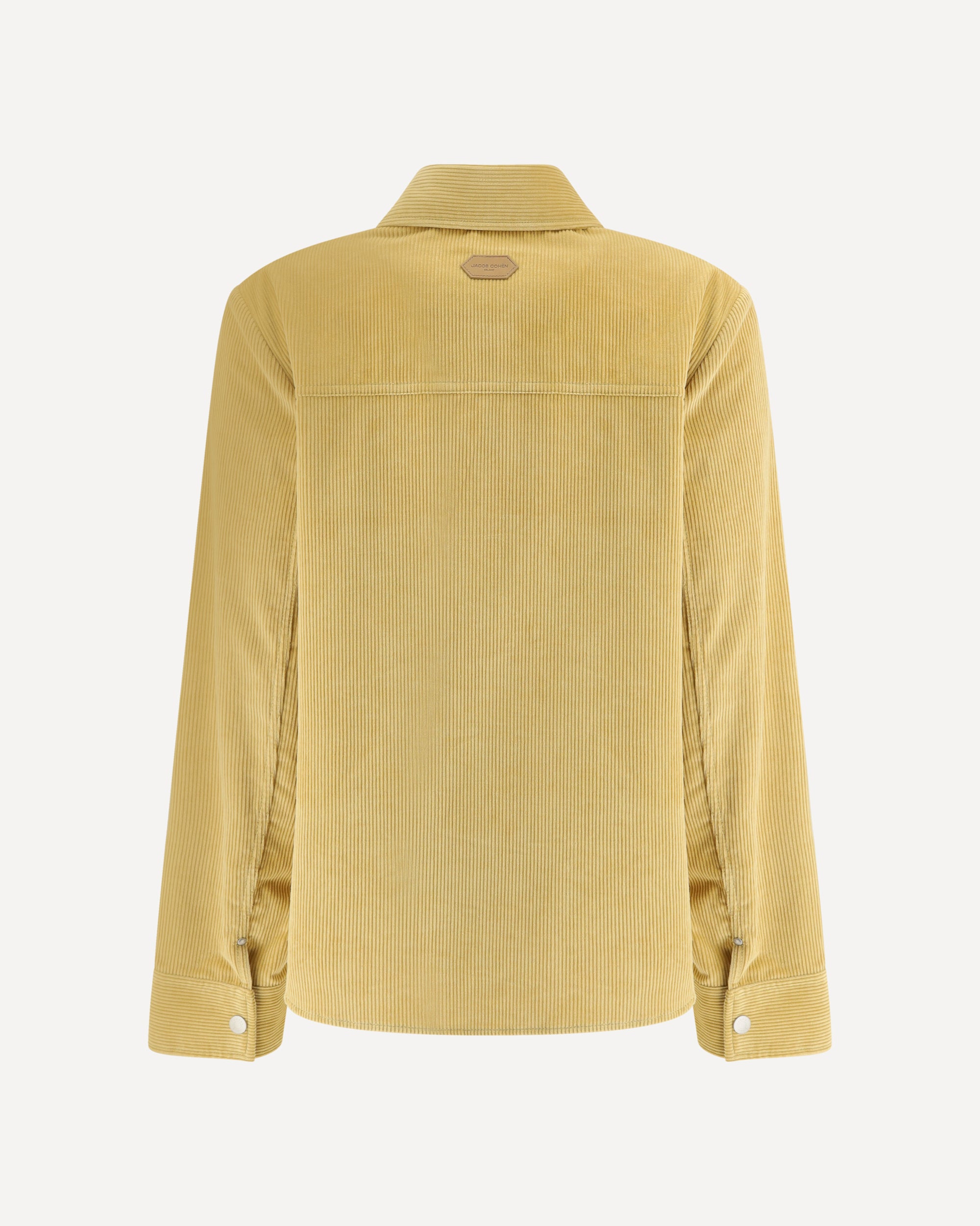 Jacob Cohën's Corduroy Overshirt is a boldly characterful overshirt made from pure hay-colored cotton. The design is defined by a straight yoke on the front and back, flat snap buttons with a matte nickel metal finish, and a tobacco leather hexagonal patch with embossed logo, which adds a distinctive and sought-after touch.