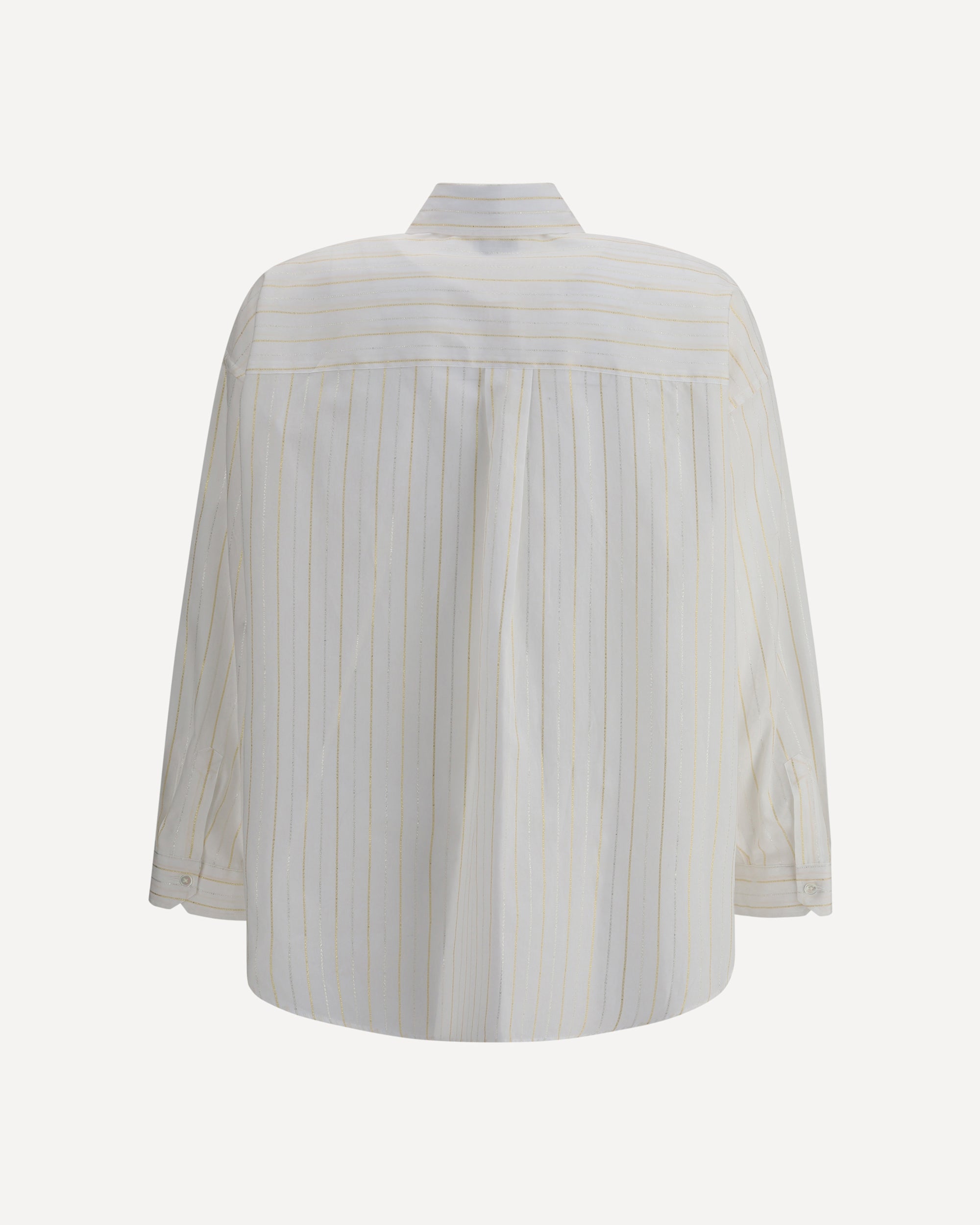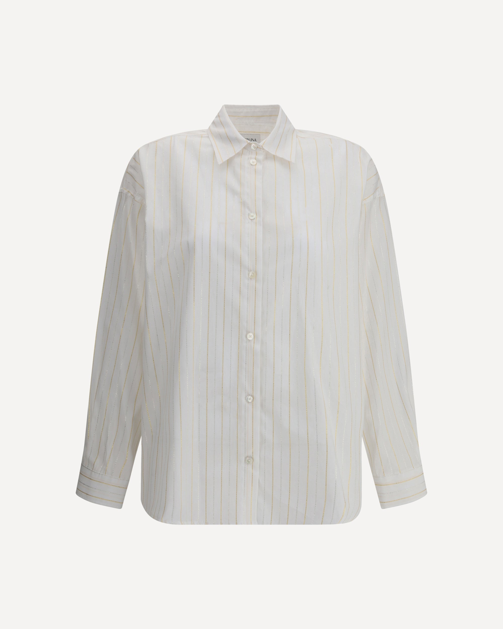 Cruna's cotton Shirt features a classic collar and front button closure for a stylish and versatile look. Adjustable button cuffs offer a custom fit. The striped pattern lends a dynamic and sophisticated touch to the design, while the oversized fit ensures comfort and a relaxed yet modern style.