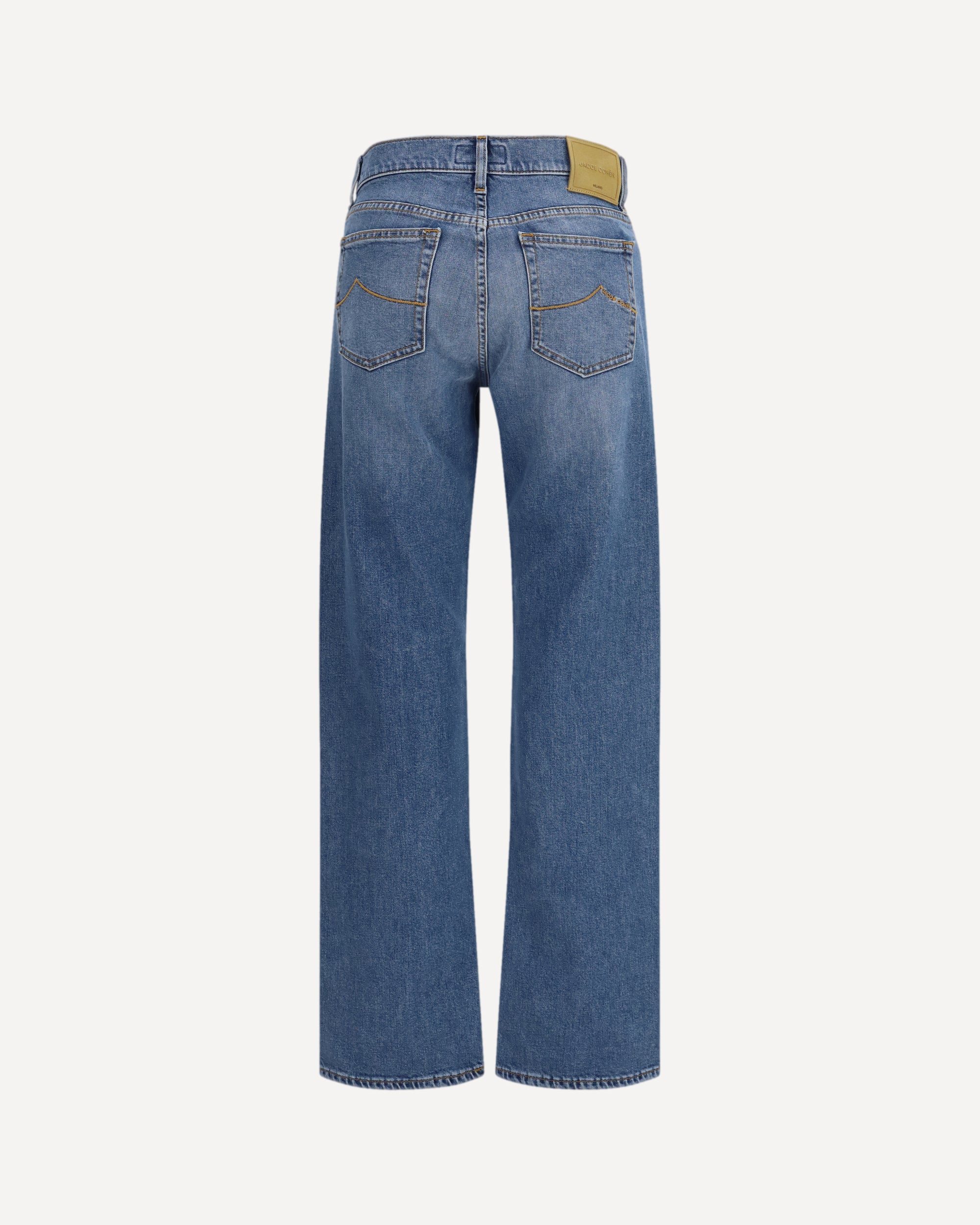 The Claire mid-rise straight Jeans by Jacob Cohen are a classic and sophisticated piece, featuring a straight five-pocket fit and mid-rise waist. The stud button with 3D logo and dark antique gold finish adds a distinctive detail, while the exclusive Jacob Cohën fragrance makes them even more unique. An excellent choice for those looking for a mix of elegance and comfort in their everyday wardrobe.