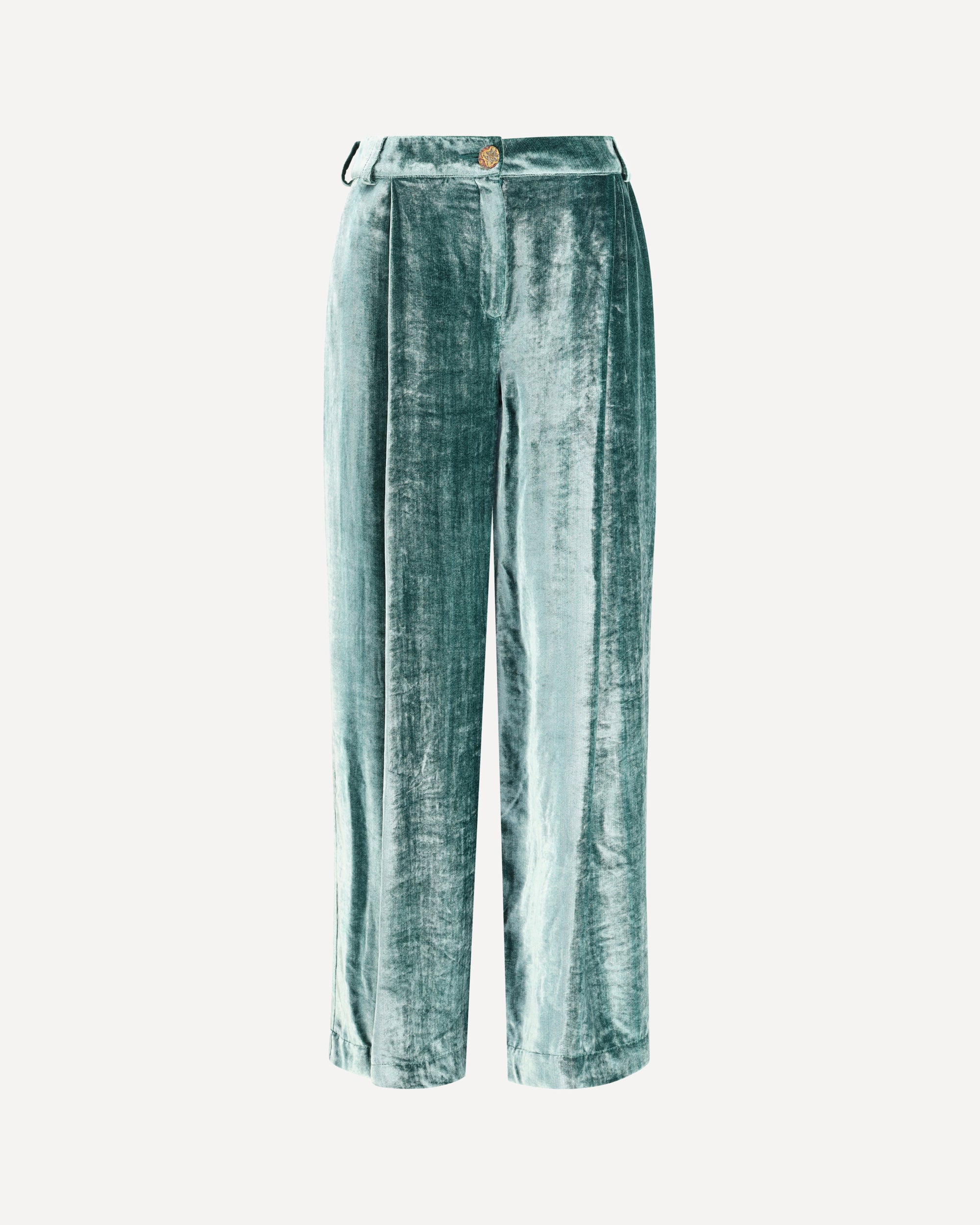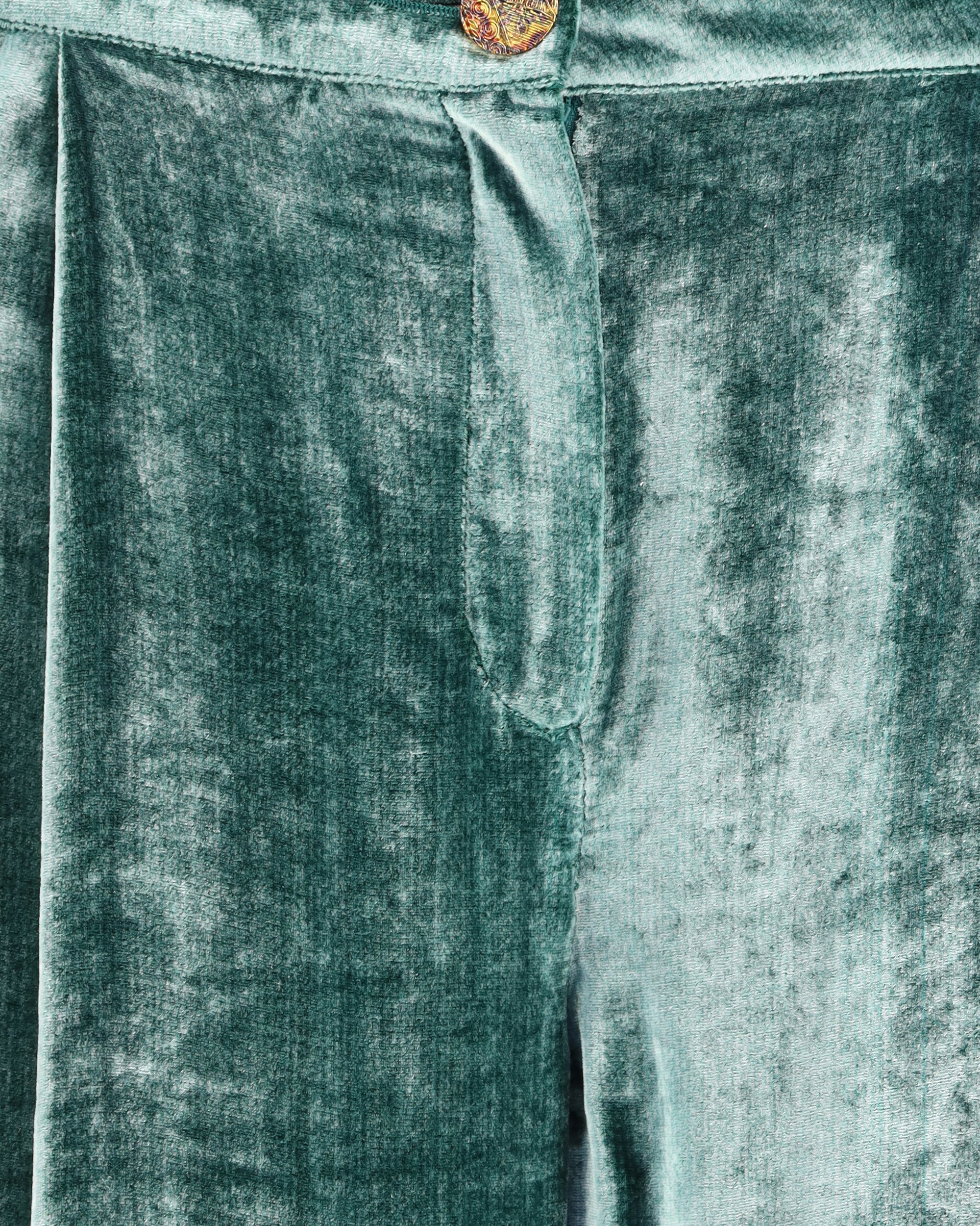 Kristina Ti's Velvet Pants combine softness and retro style.Featuring a front button and zipper closure,they have belt loops at the waist and two side welt pockets.A feminine and versatile garment,with timeless elegance.